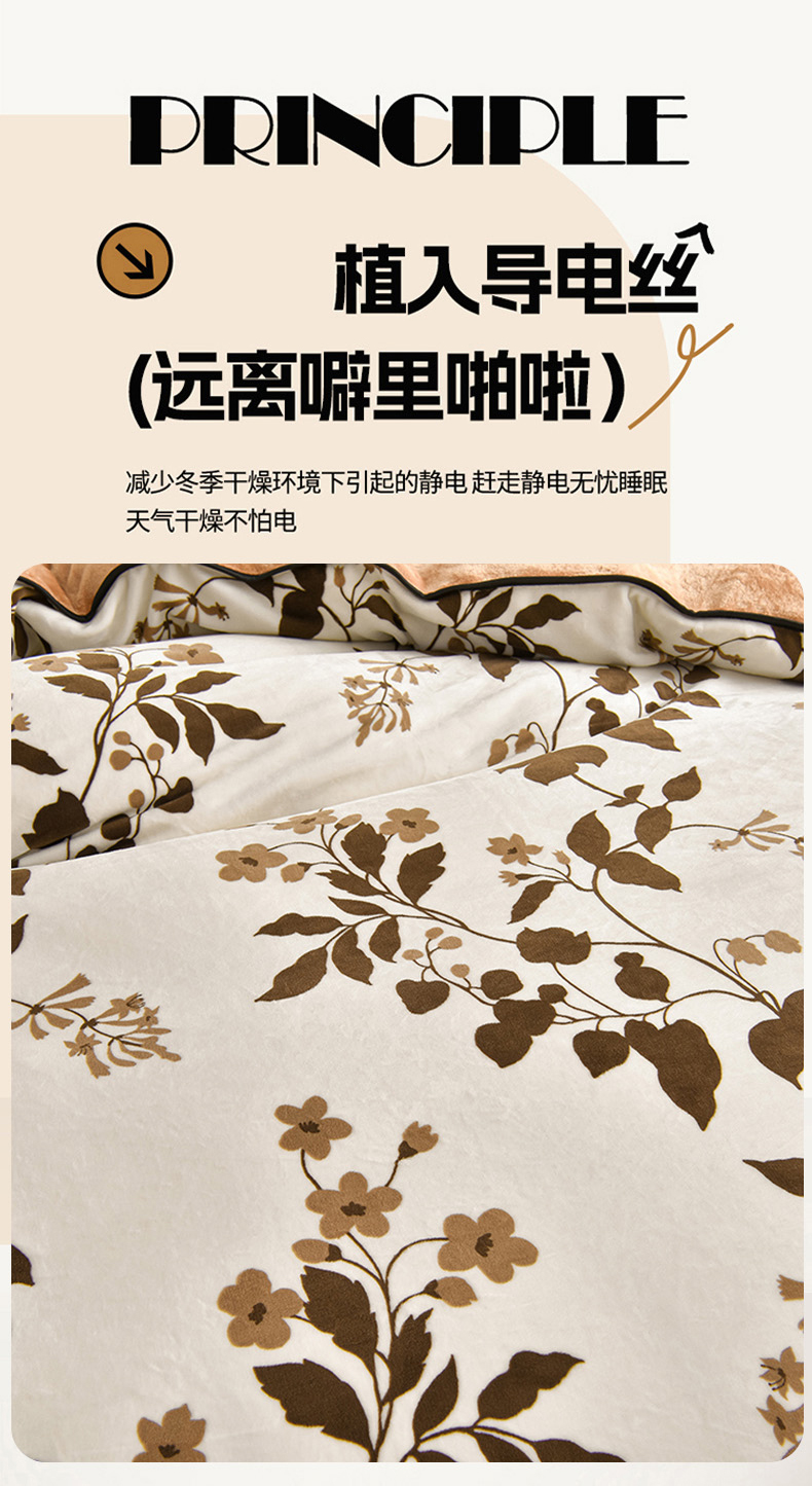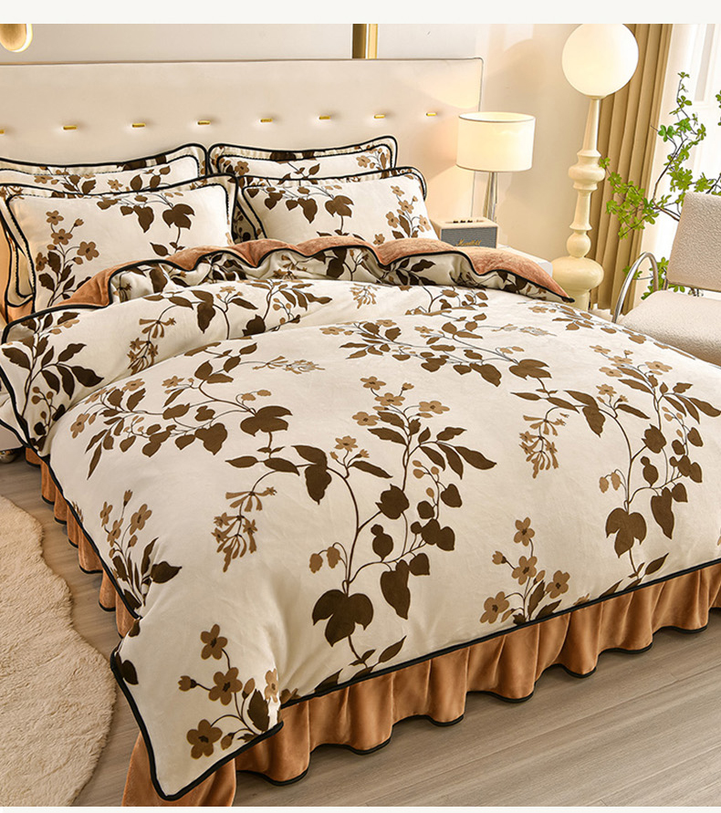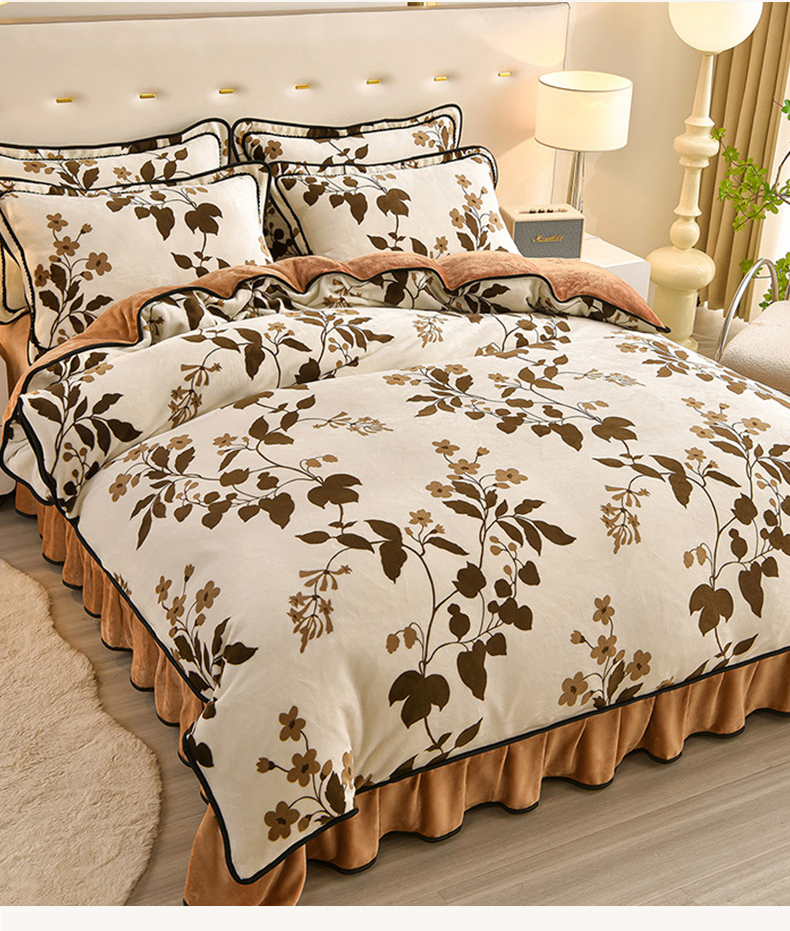 商品名称:佳一 2025新款高克重8-9斤 印花牛奶绒四件套 蔓颜
