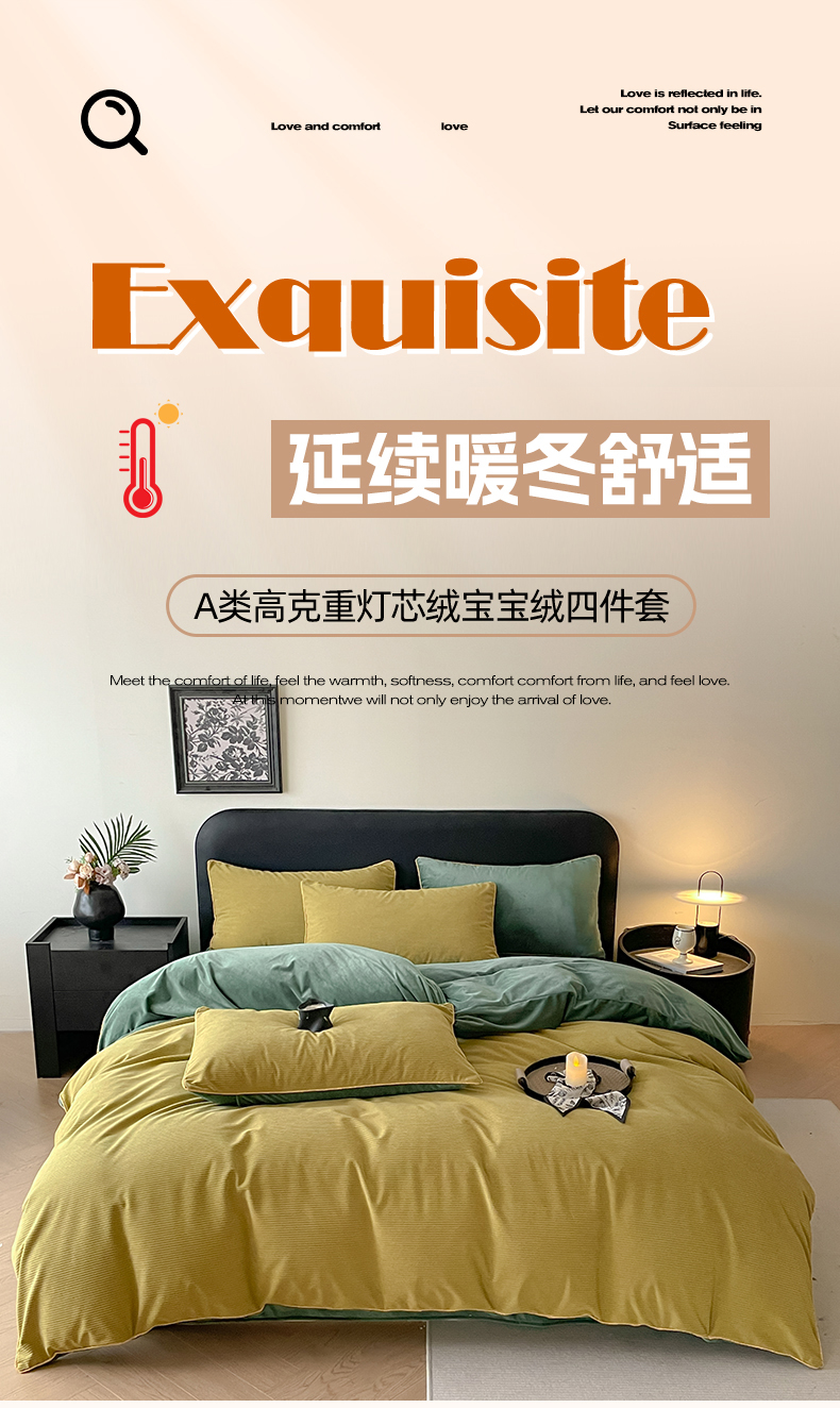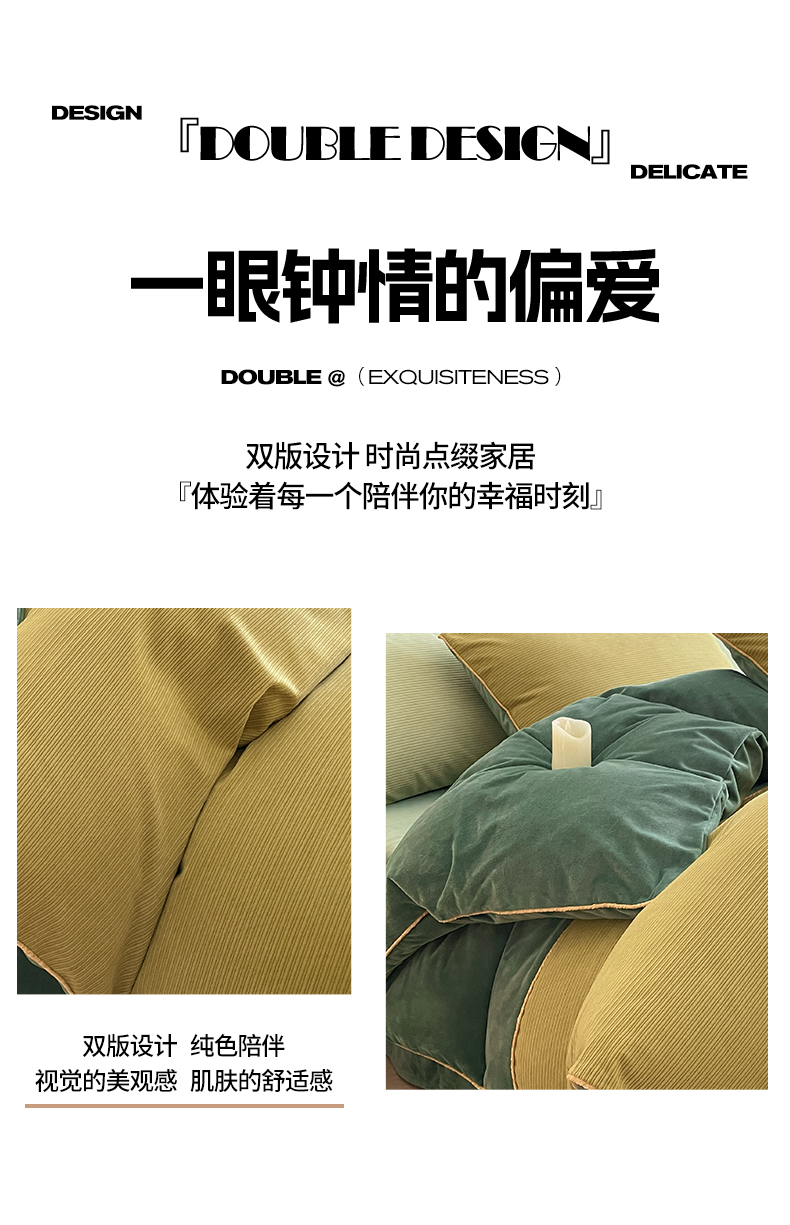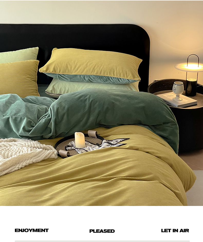 羚羊语家纺 2025新款280克灯芯绒婴儿绒四件套高级嵌绳拼接款水晶绒宝宝绒牛奶绒床单床笠款三件套-奶芙绒系列 半糖绿洲