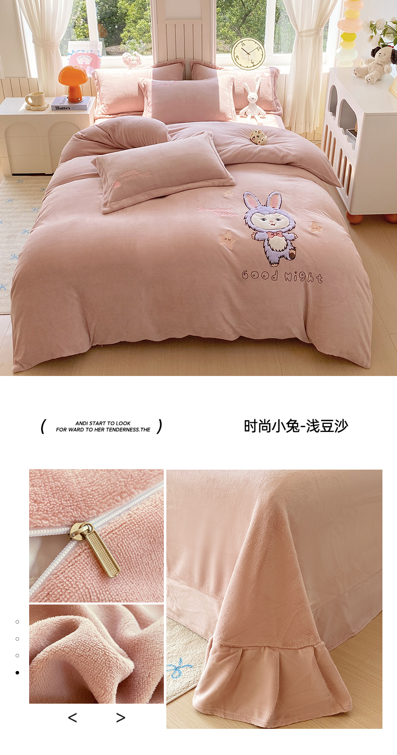 当前位置: 91家纺网 > 商品网购 > 床品套件 > 四件套 > 牛奶绒四件套 > 悦织湾家纺 牛奶绒四件套纯色贴布绣床单款床盖款床上用品四件套时尚小兔2025新款加厚 床盖款-时尚小兔-粉
