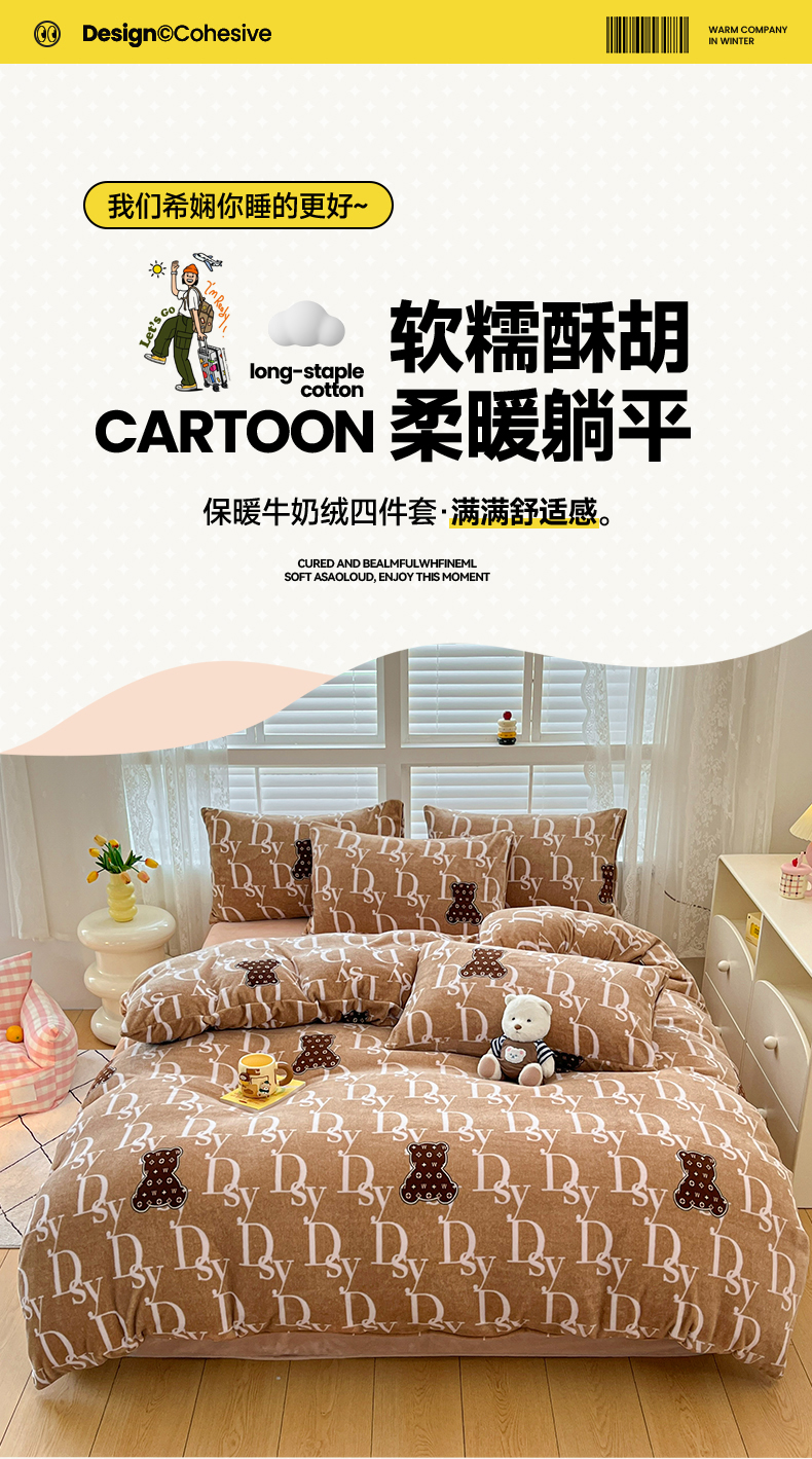 当前位置: 91家纺网 > 商品网购 > 床品套件 > 四件套 > 牛奶绒四件套 > 蓝梦 2025新款加厚保暖牛奶绒印花四件套 潮流熊熊-蓝