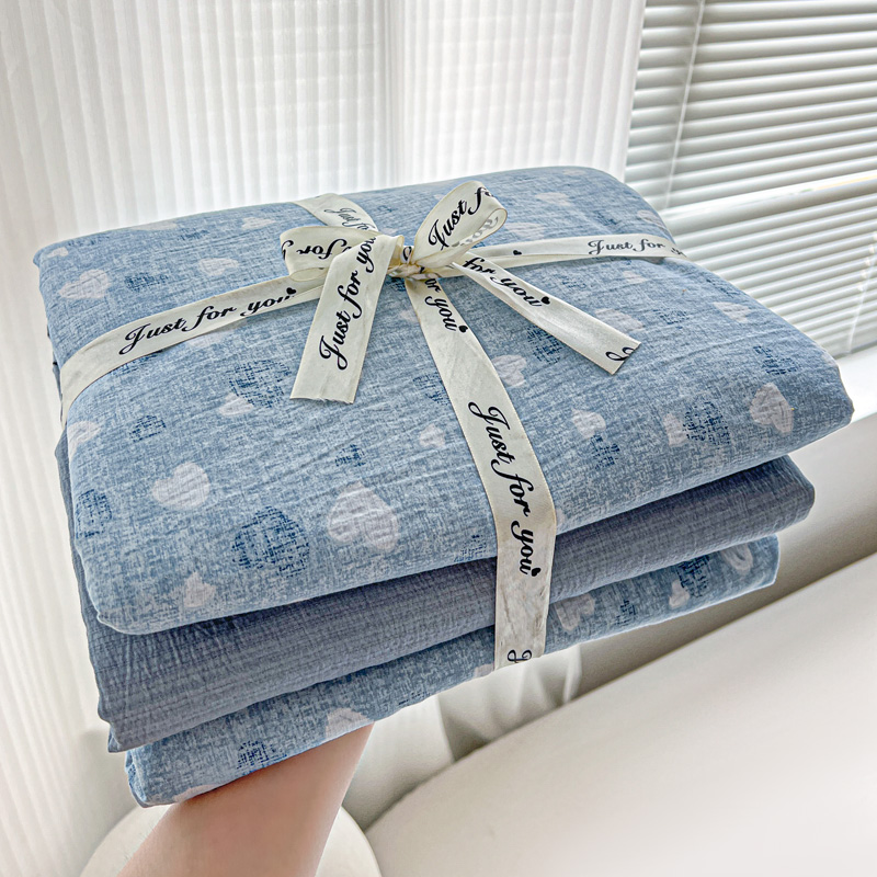 一比一 2025新款古法水洗棉小布袋高克重云柔棉四件套 蓝爱心