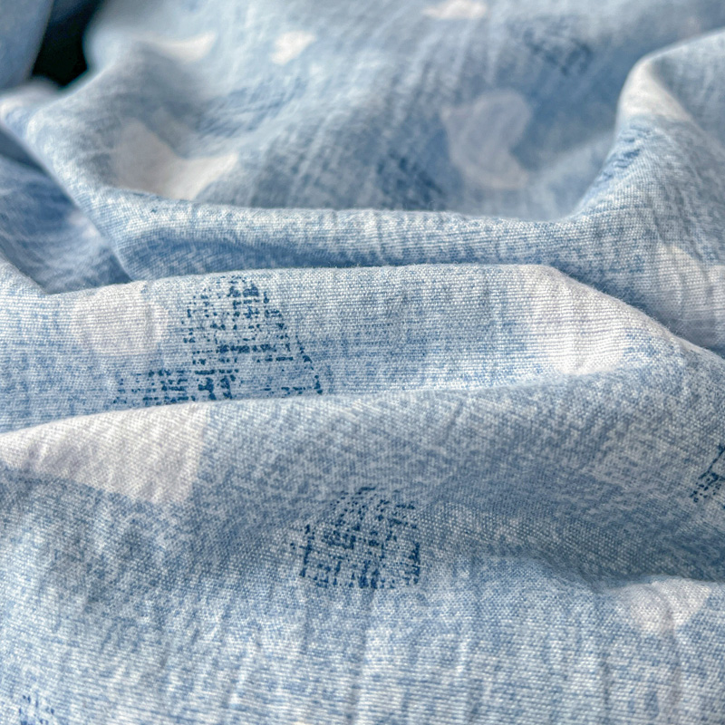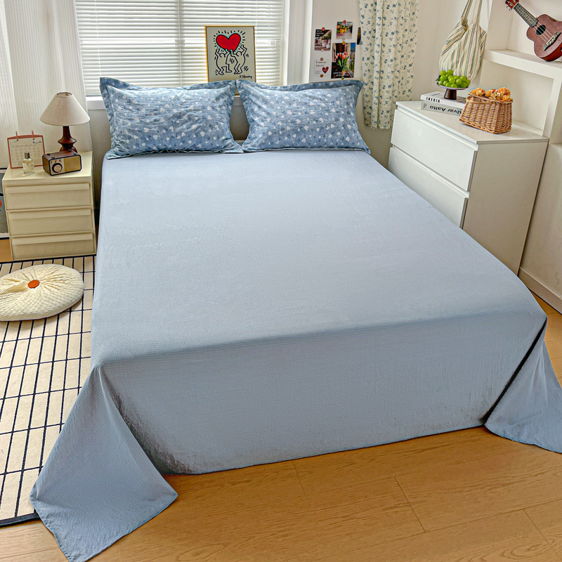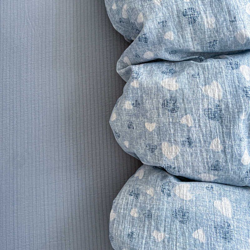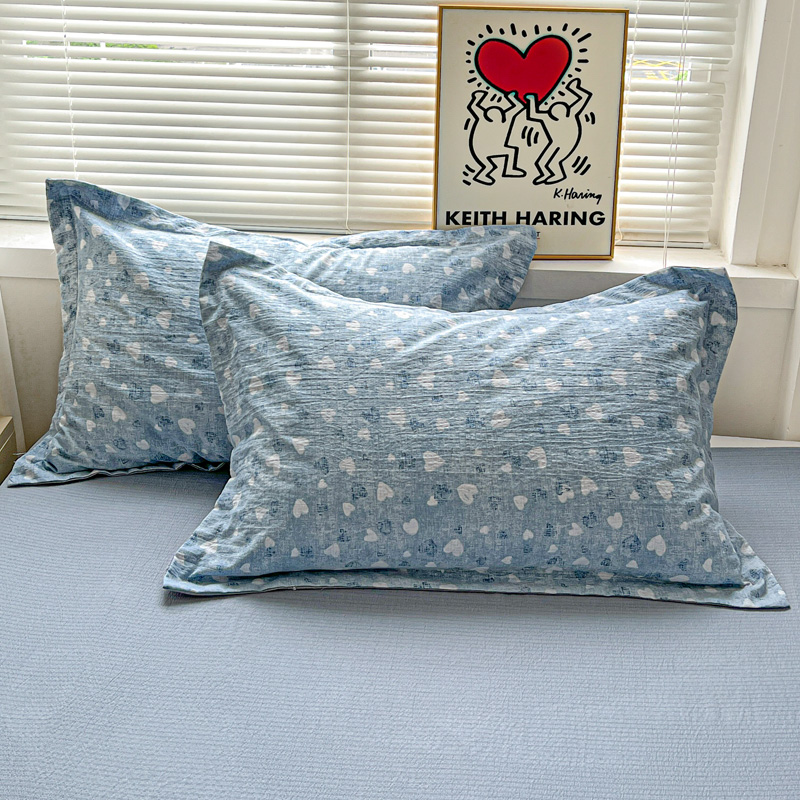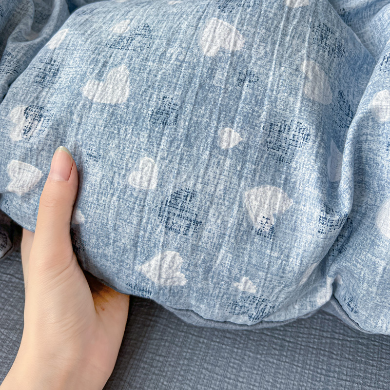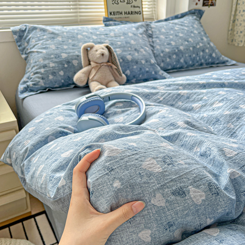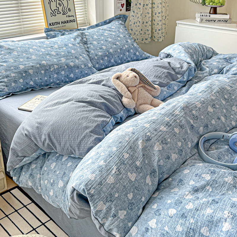 商品名称:一比一 2025新款古法水洗棉小布袋高克重云柔棉四件套 蓝爱心