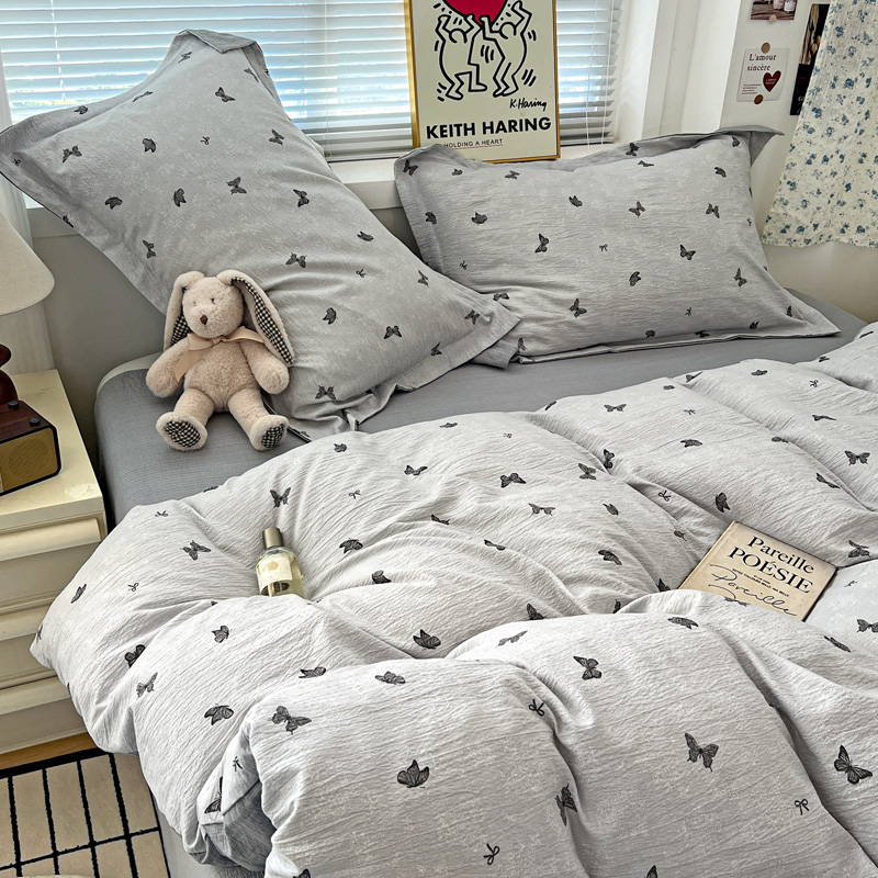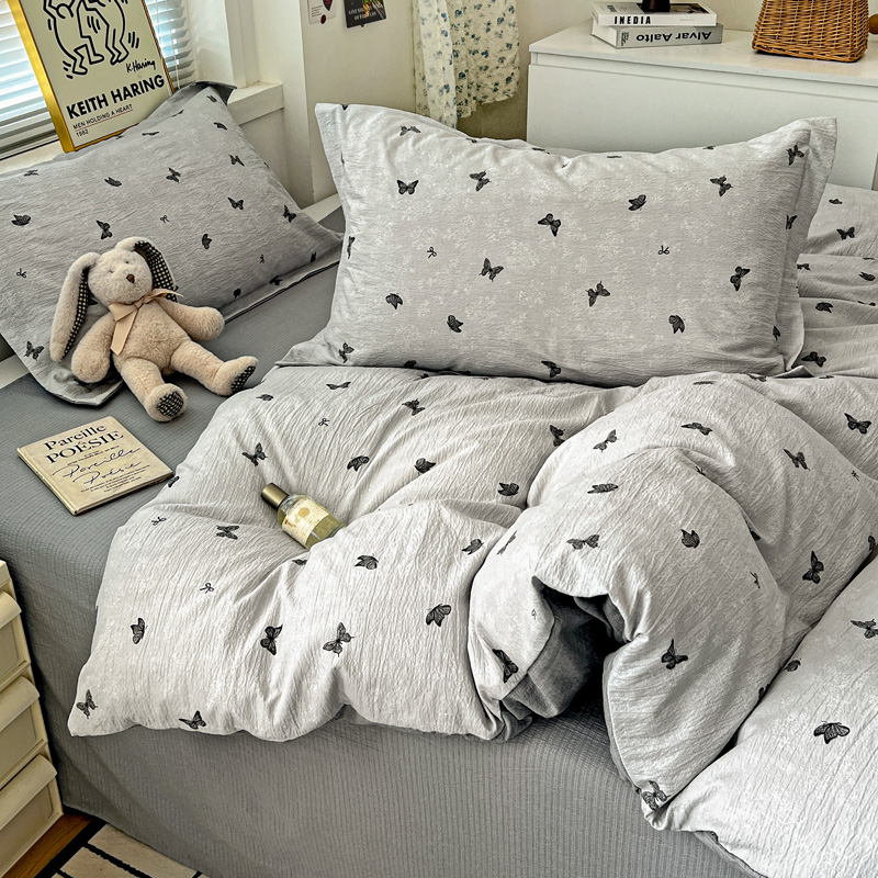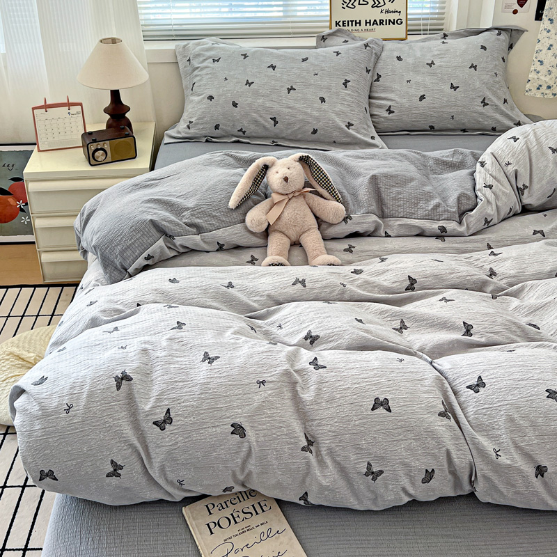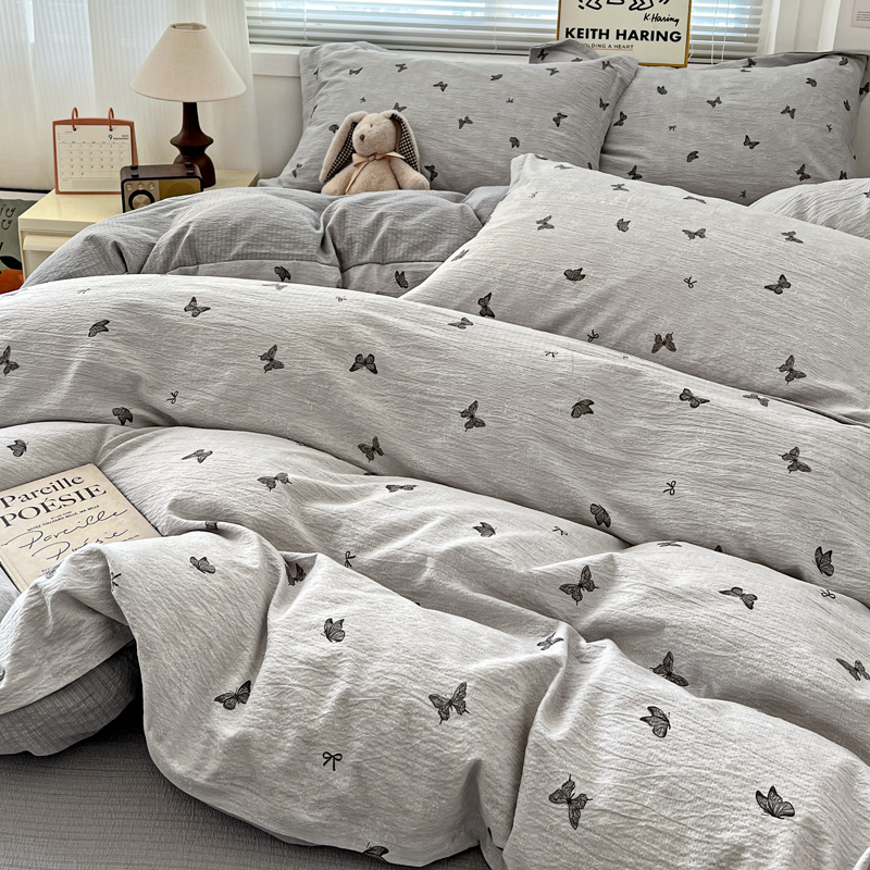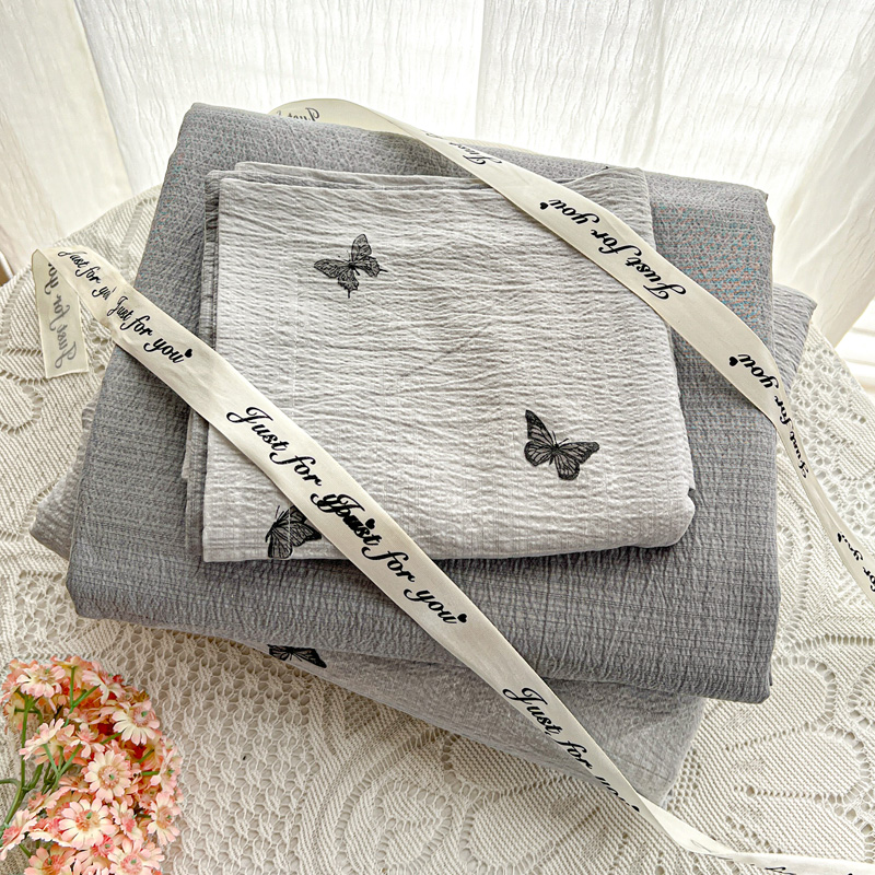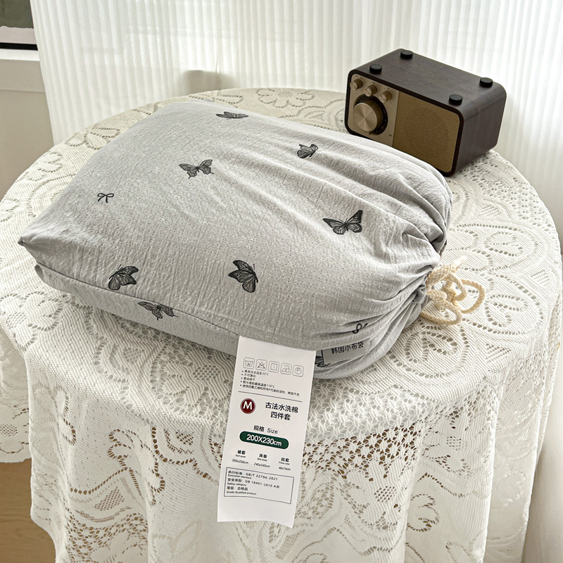 一比一 2025新款古法水洗棉小布袋高克重云柔棉四件套 浮生若梦-灰