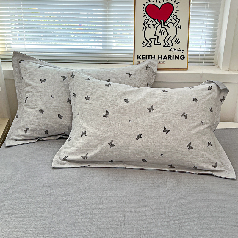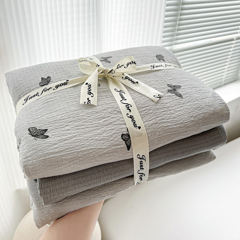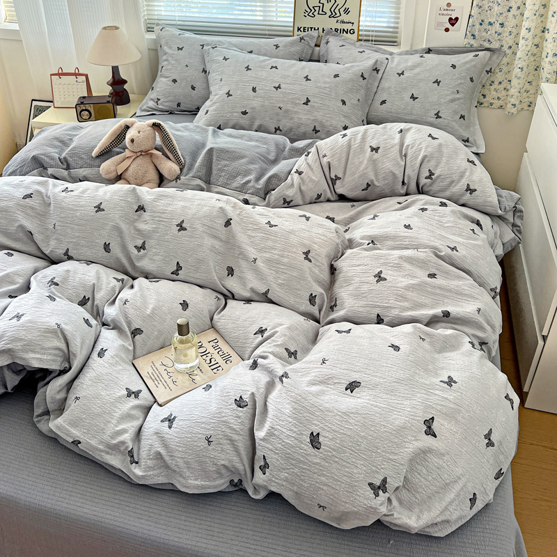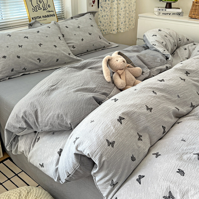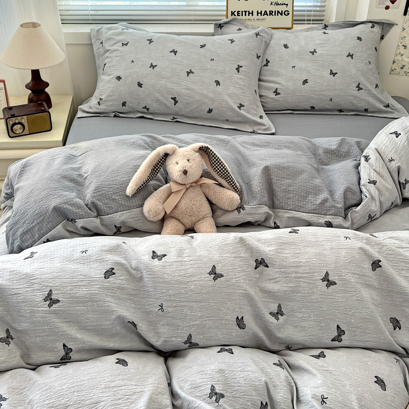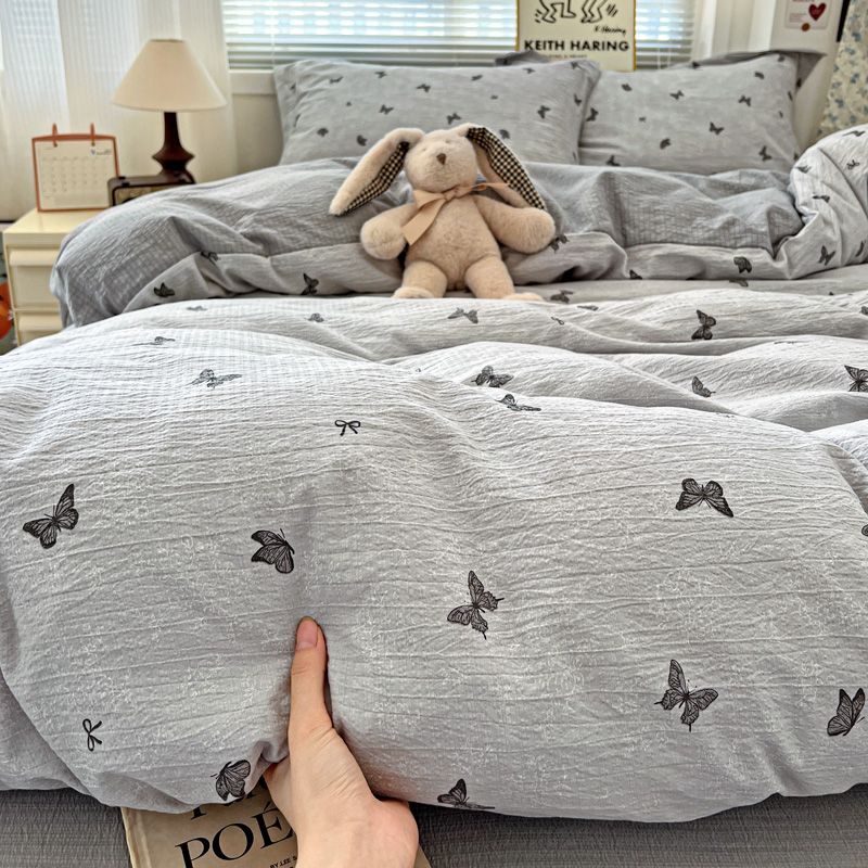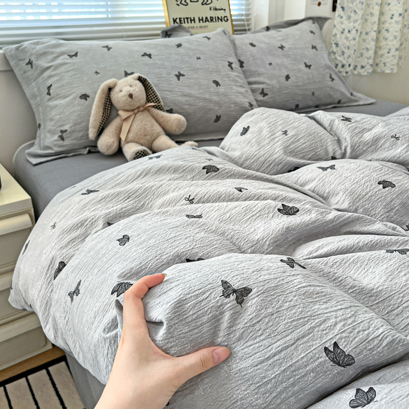 一比一 2025新款古法水洗棉小布袋高克重云柔棉四件套 浮生若梦-灰