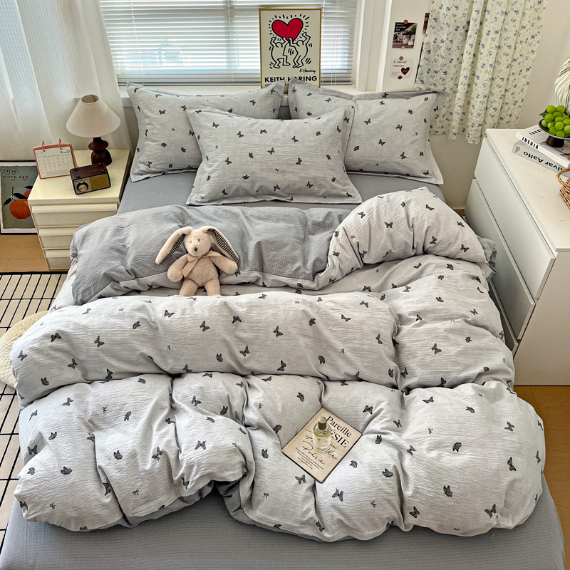 (总)一比一家纺 2026新款古法水洗仿棉云感纱A类四件套,知秋,白兰地,彩波波,草莓点点,格纹狗,嗨皮狗,赫莲娜,花千朵,花絮,酱果,蓝小格,莉莉安,梦幻灰,南瓜果果,葡萄,浅梦,森屿,疏影,甜心草莓,甜心喵,条纹狗,童趣,小黄花,小木马,小时光,小幸运,修修狗,薰衣草,灰樱桃,樱桃熊,鱼多多,组合图仅做展示不可下单