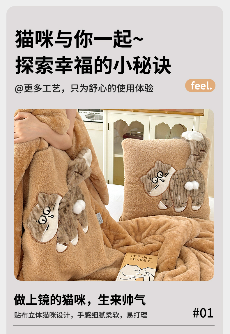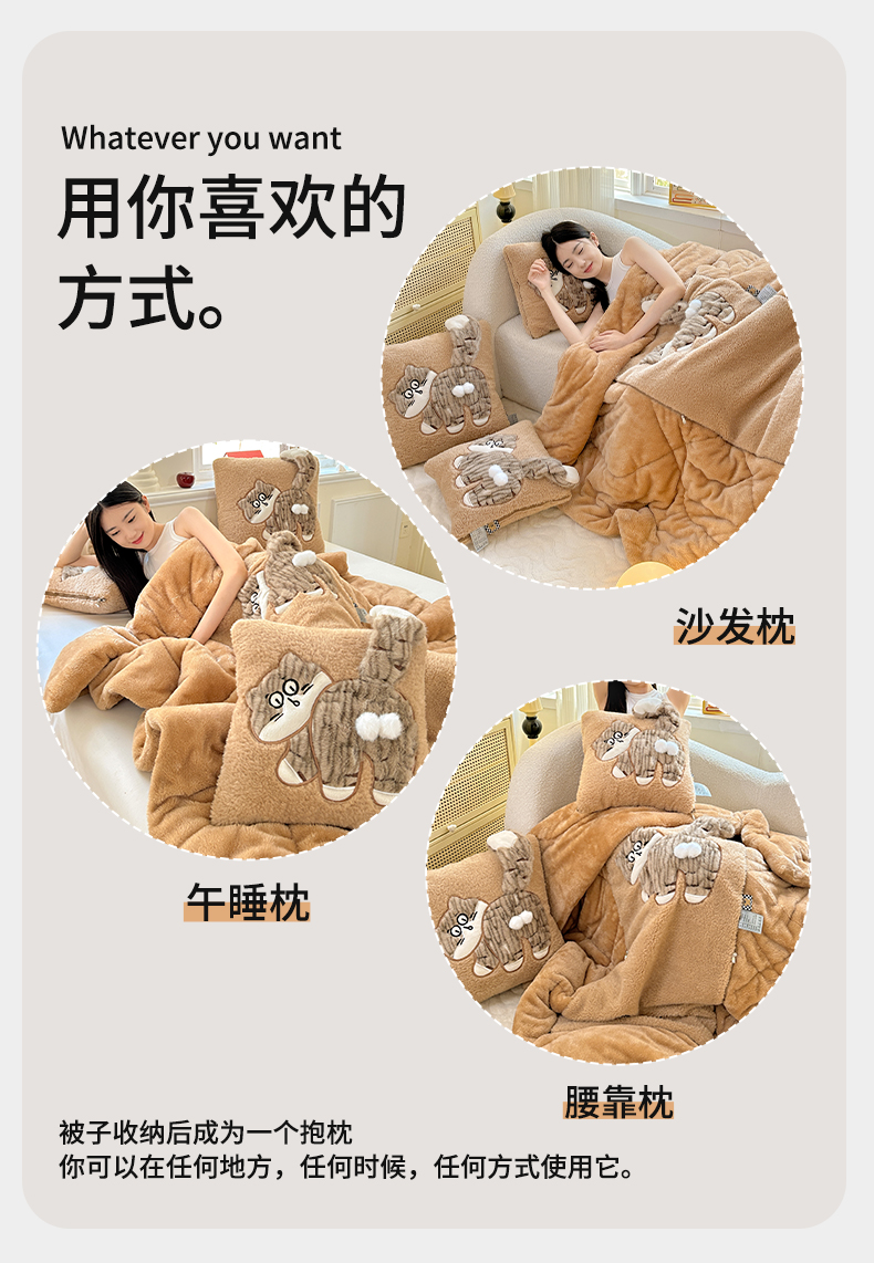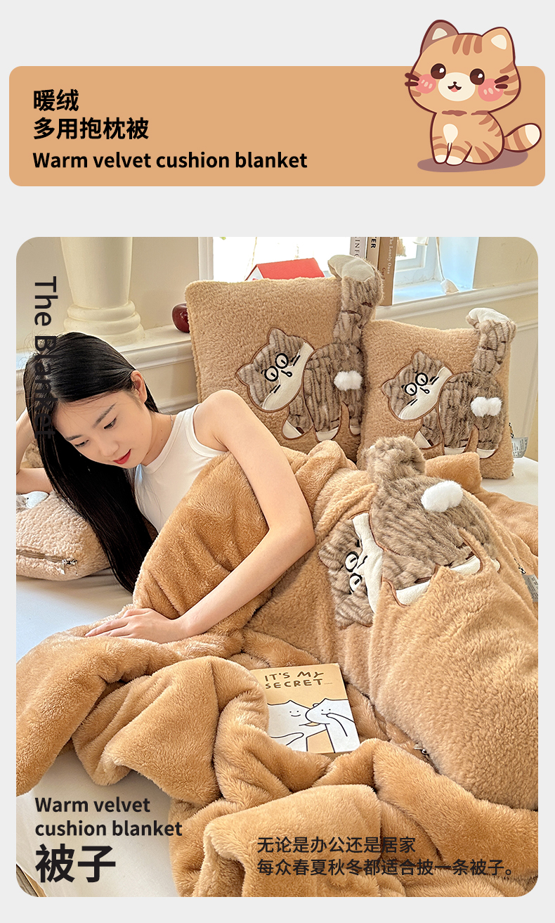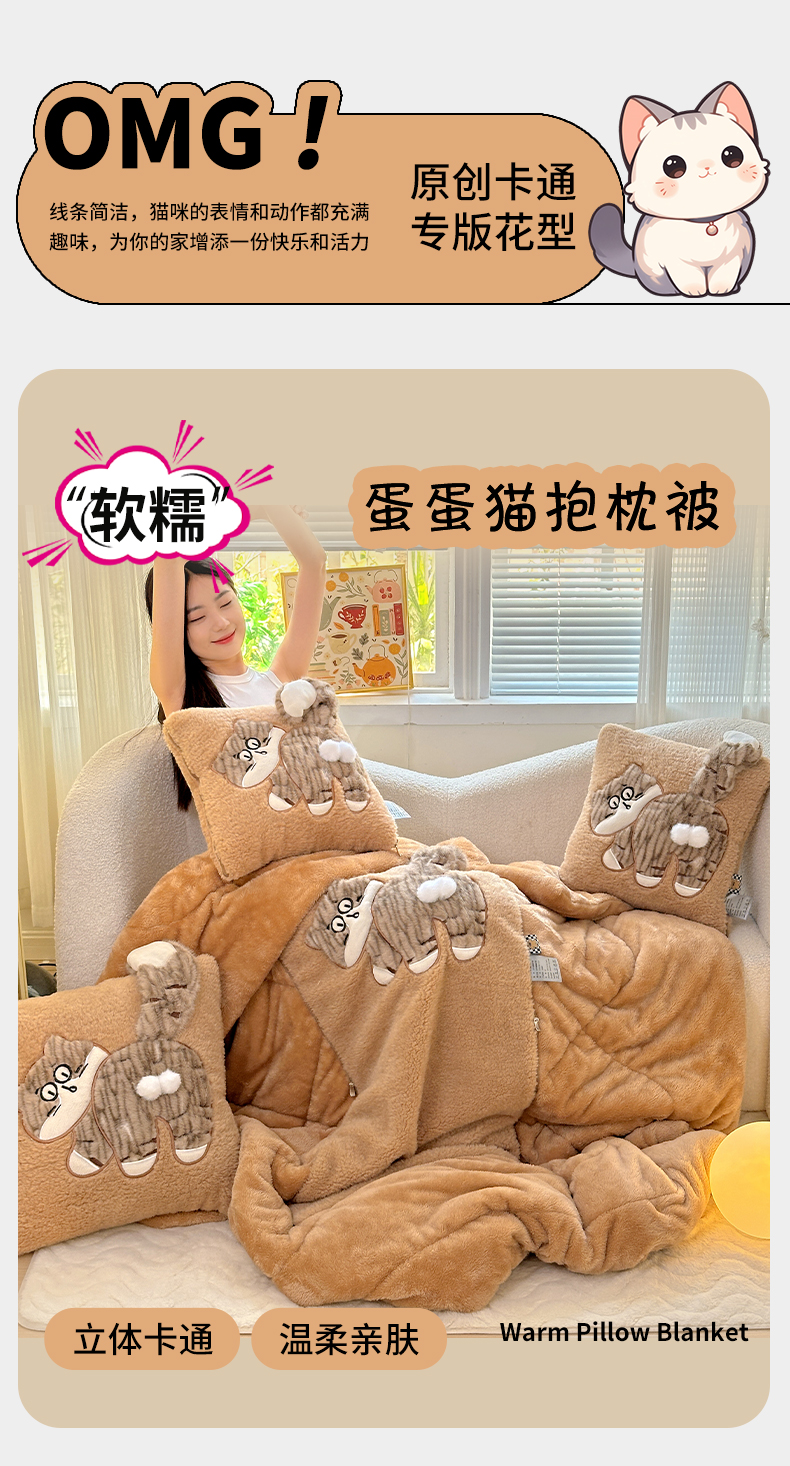 商品名称:古本家居 2025新款蛋蛋猫抱枕被 蛋蛋猫奶茶
