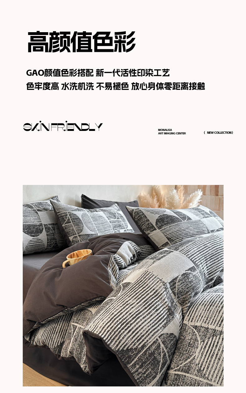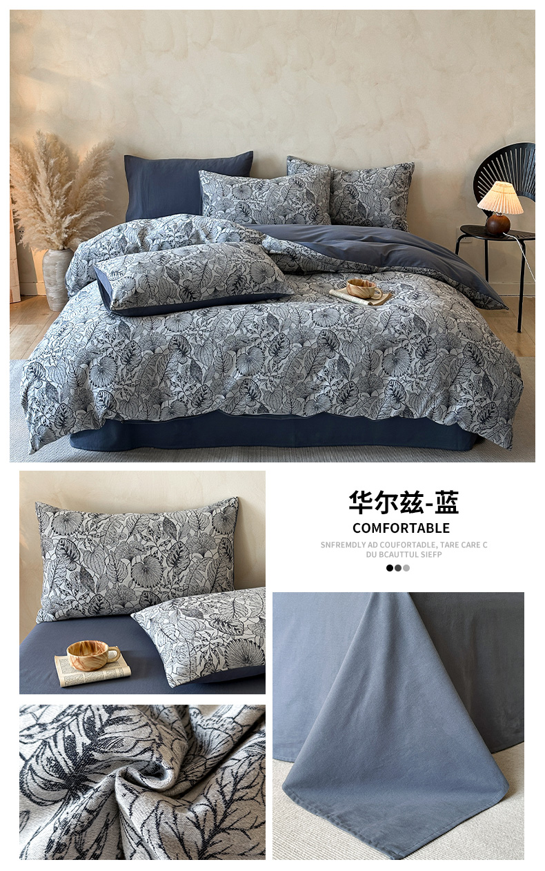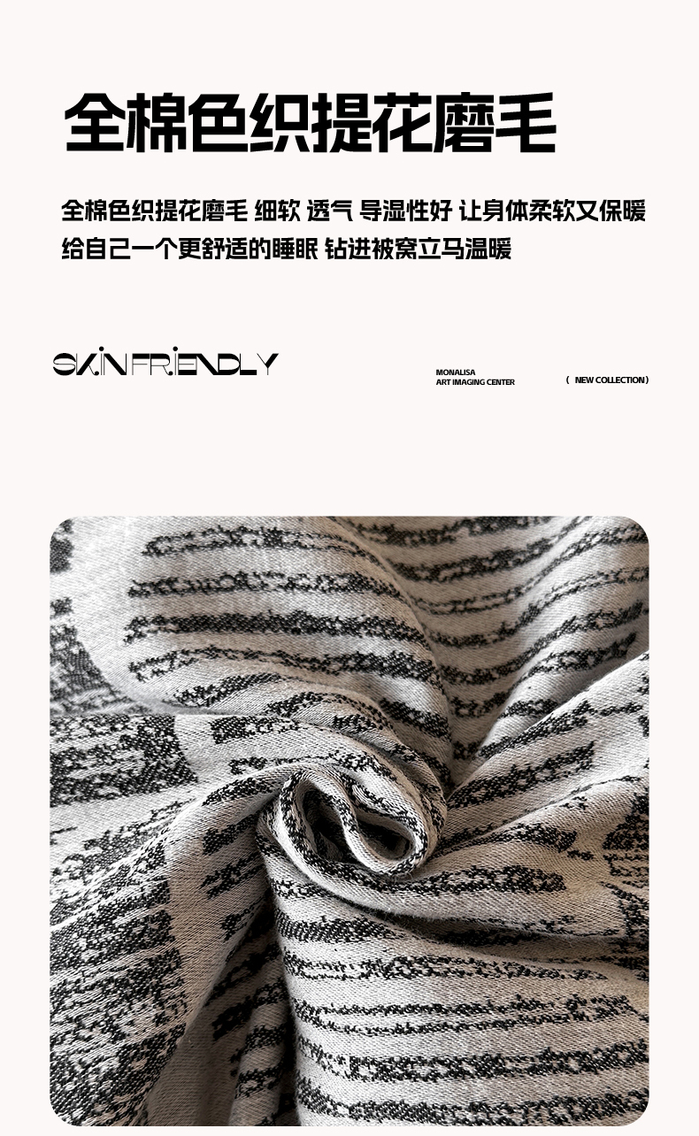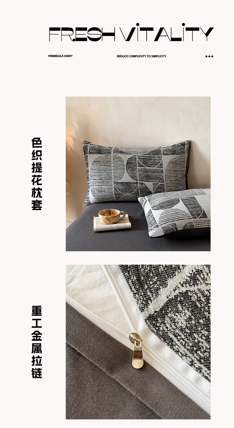 当前位置: 91家纺网 > 商品网购 > 床品套件 > 四件套 > 磨毛活性四件套 > 蓝邻家纺 2025年新款全棉色织提花磨毛四件套 梵沐-灰黑