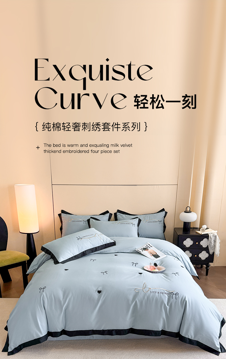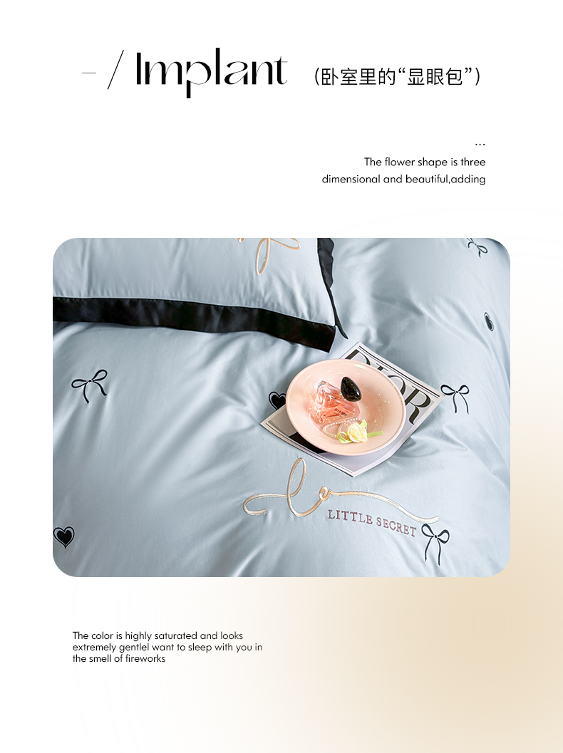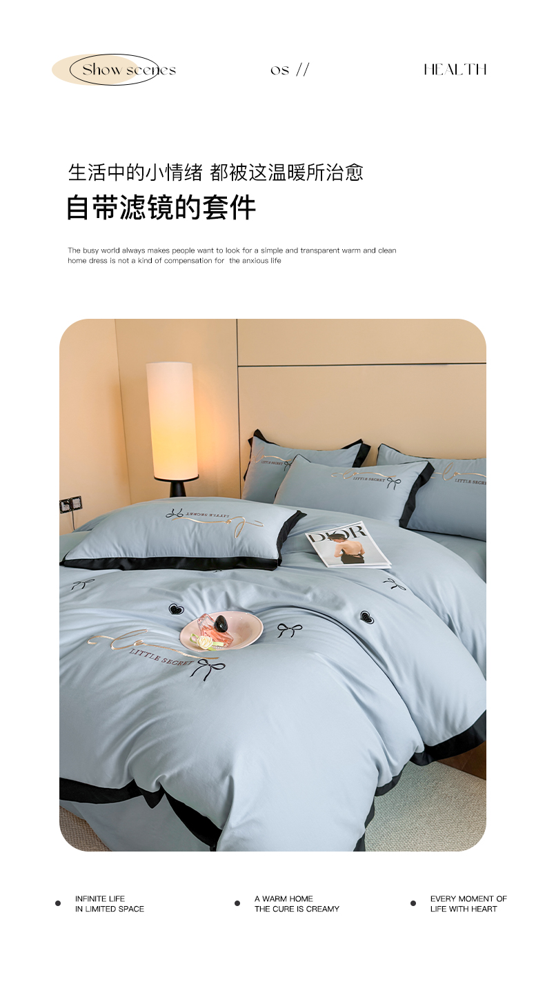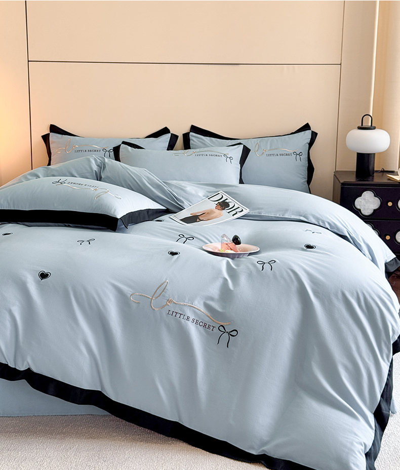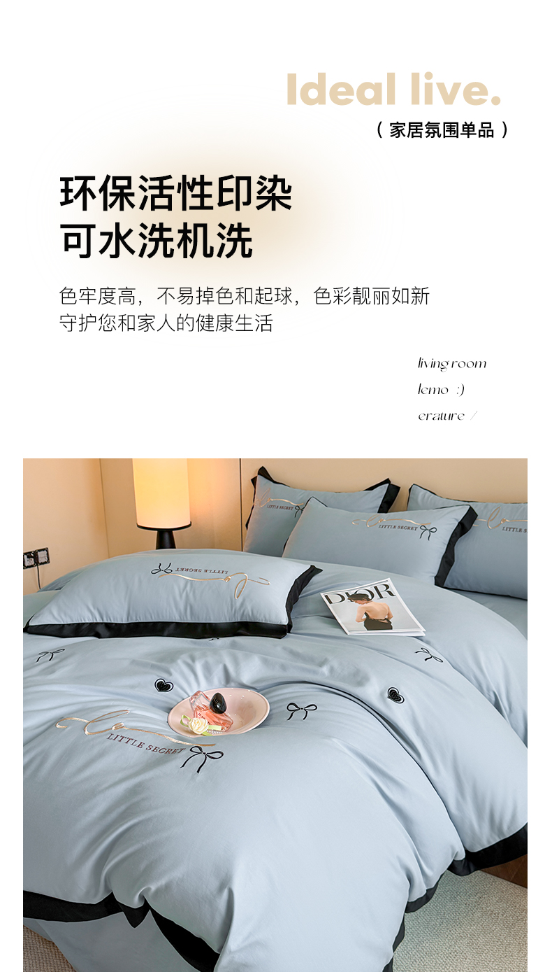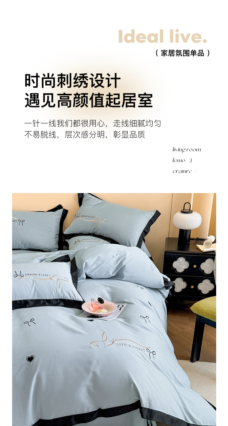 商品名称:理想家家纺 2025新款纯棉轻奢刺绣四件套-小秘密系列场景二 小秘密 蓝