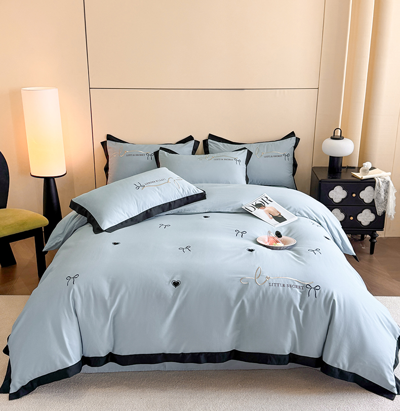 理想家家纺 2025新款纯棉轻奢刺绣四件套-小秘密系列场景二 小秘密 蓝