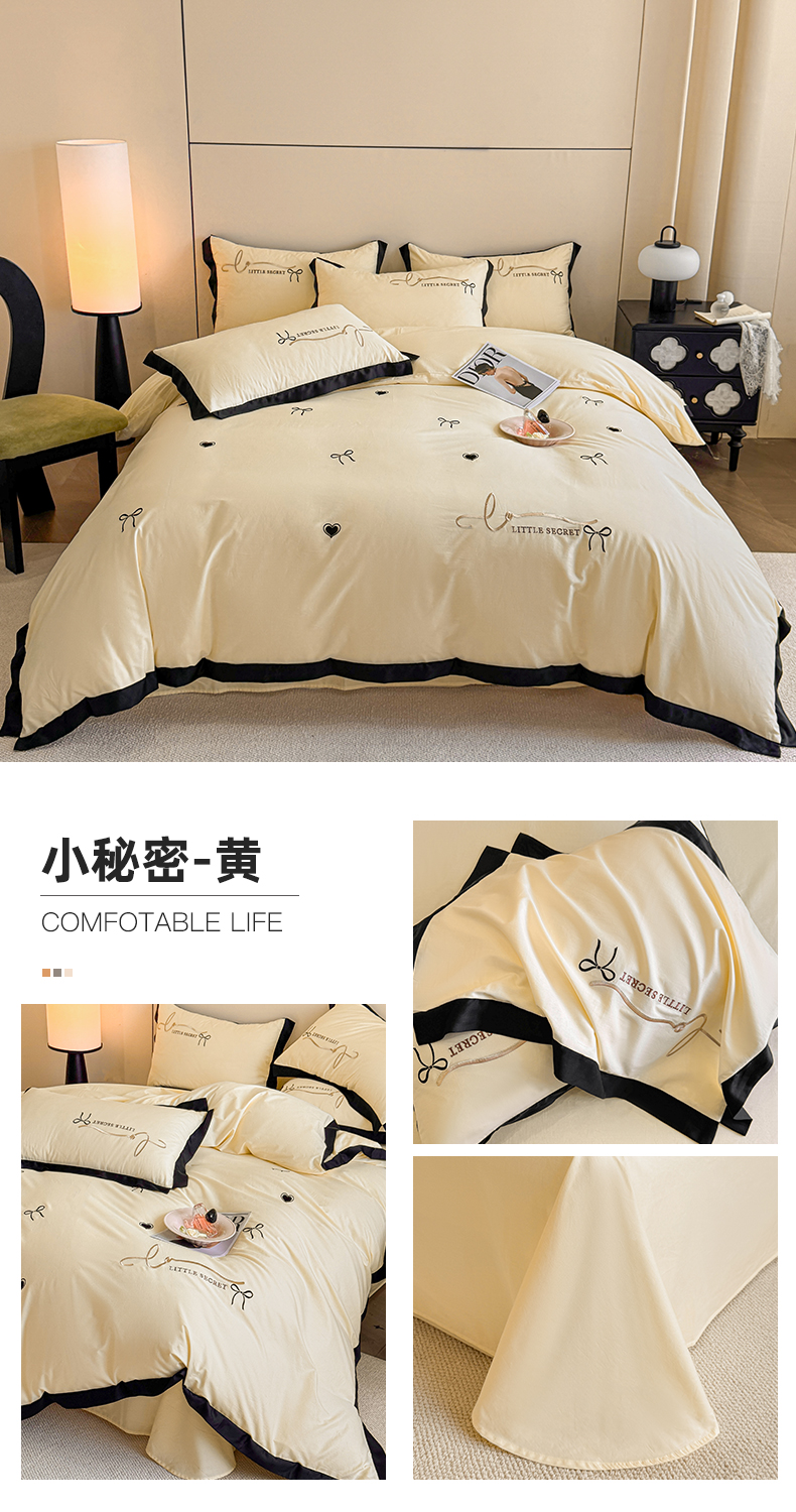 (总)理想家家纺 2025新款纯棉轻奢刺绣四件套-小秘密系列场景二,小秘密 粉,小秘密 黄,小秘密 蓝