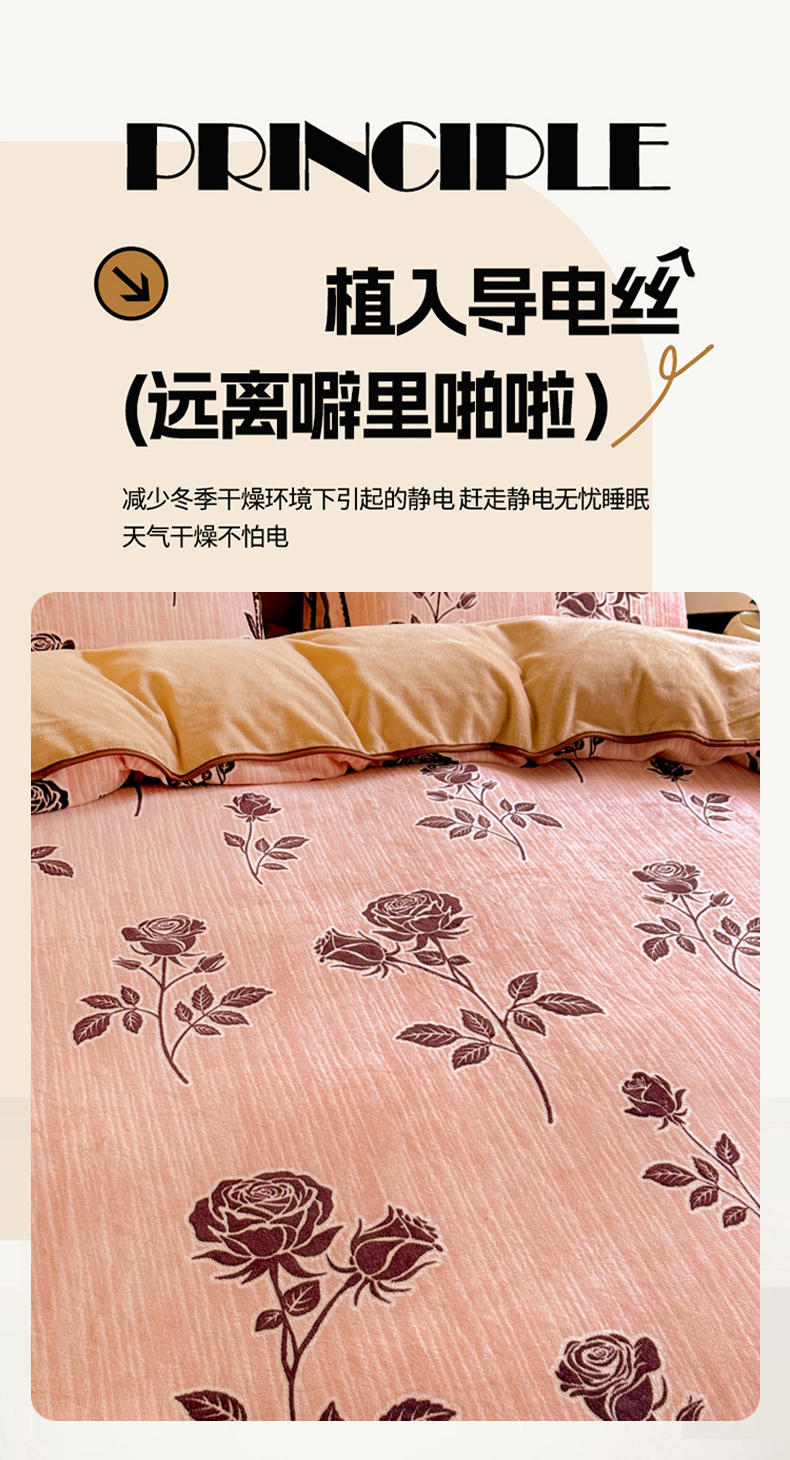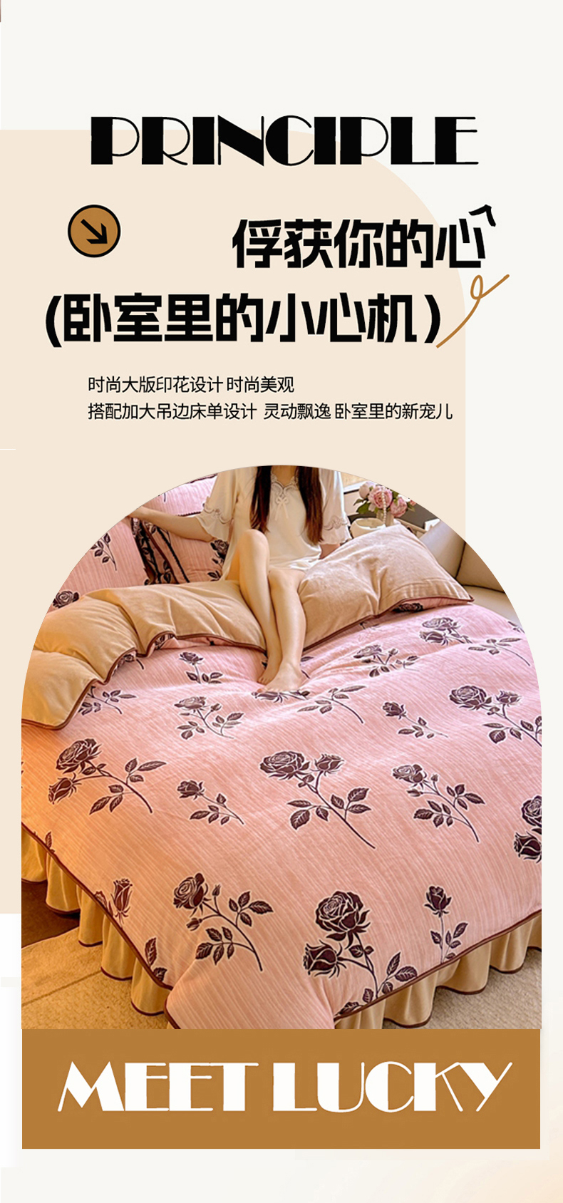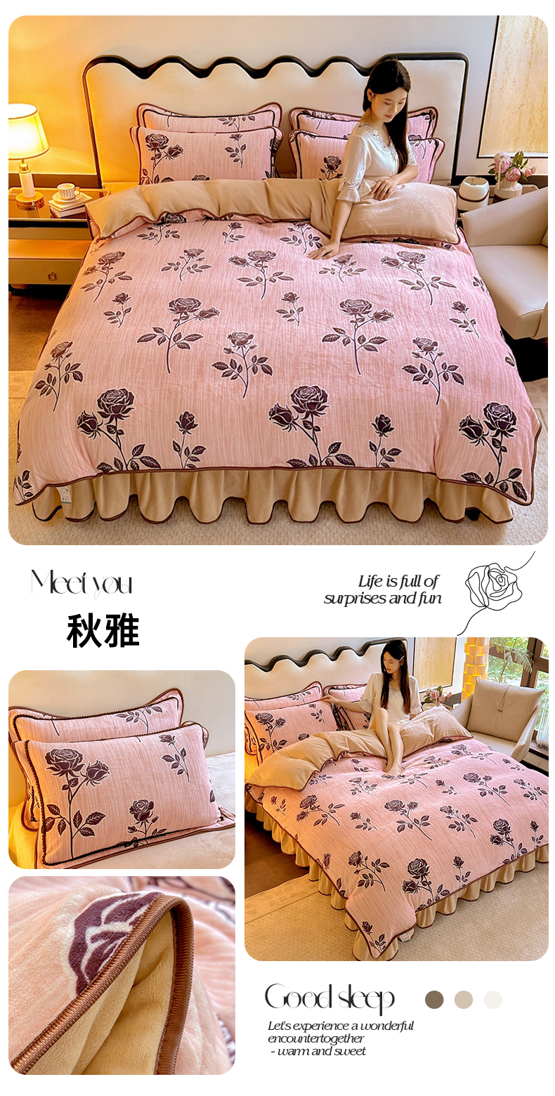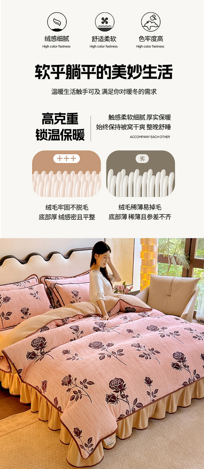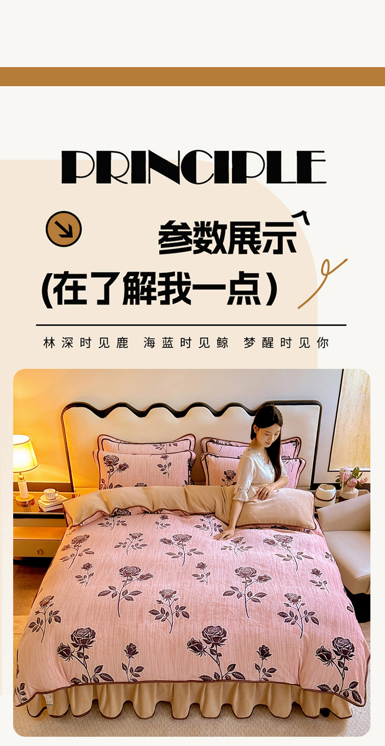 佳一 2025新款高克重8-9斤 印花牛奶绒四件套 玫瑰之吻,玫瑰之吻