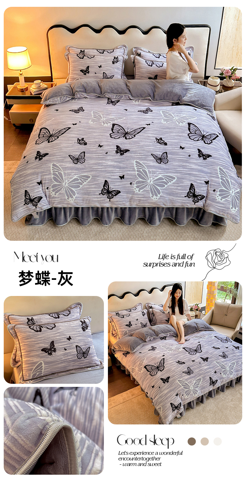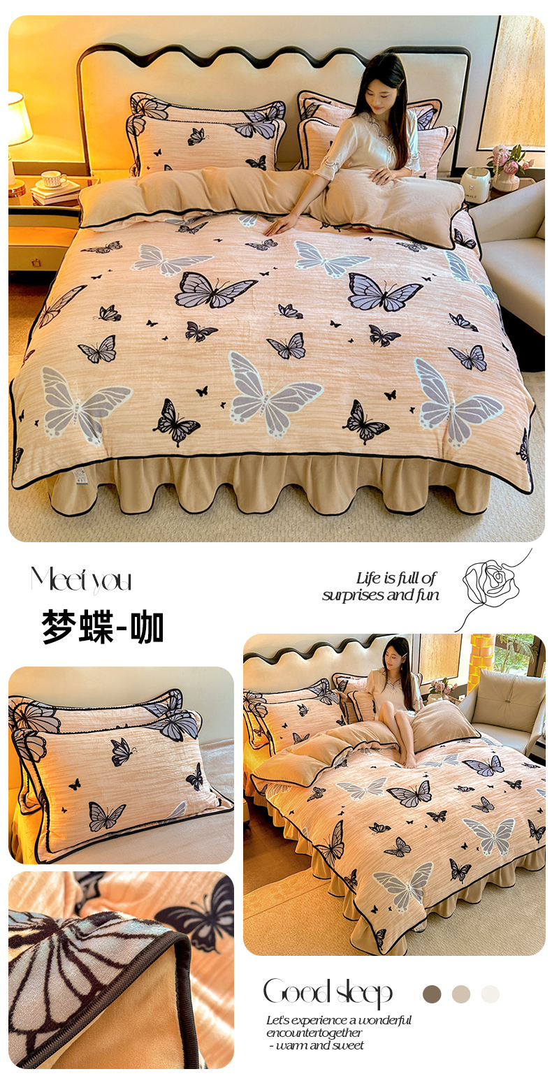 佳一 2025新款高克重8-9斤印花牛奶绒四件套 蝴蝶结,蝴蝶结