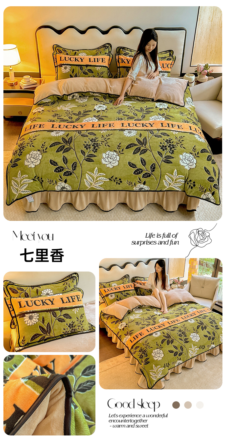 (总)佳一 2025新款高克重8-9斤 印花牛奶绒四件套