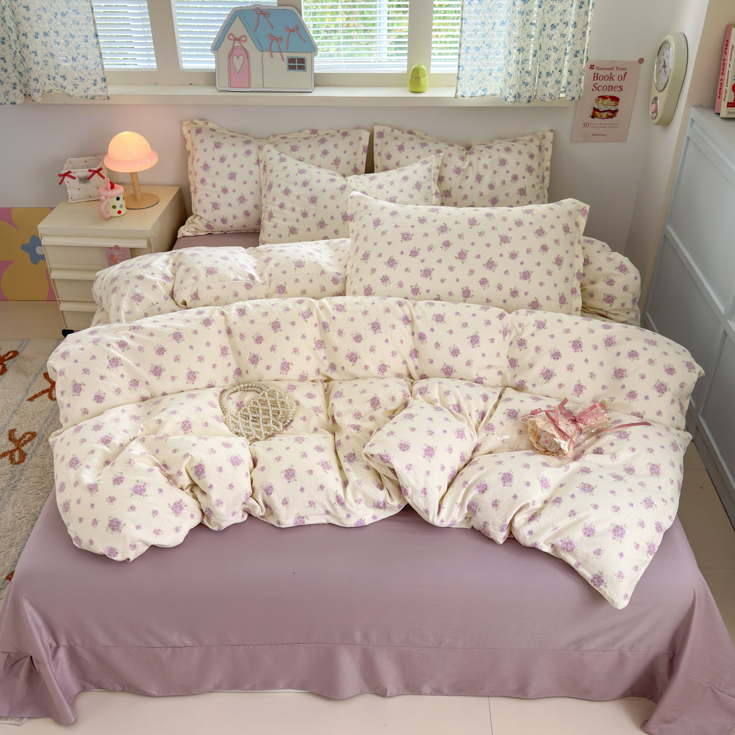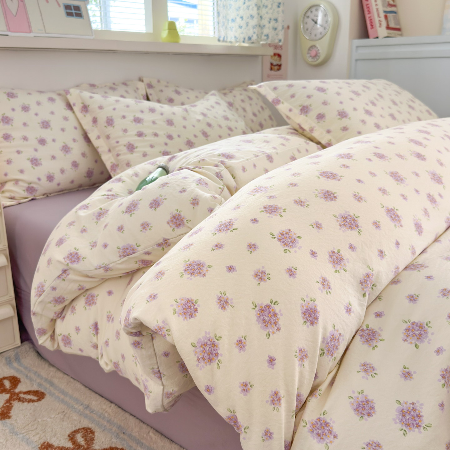 商品名称:德比尔斯 2025新款爆款韩国小布袋古法水洗棉云感棉四件套 紫罗兰