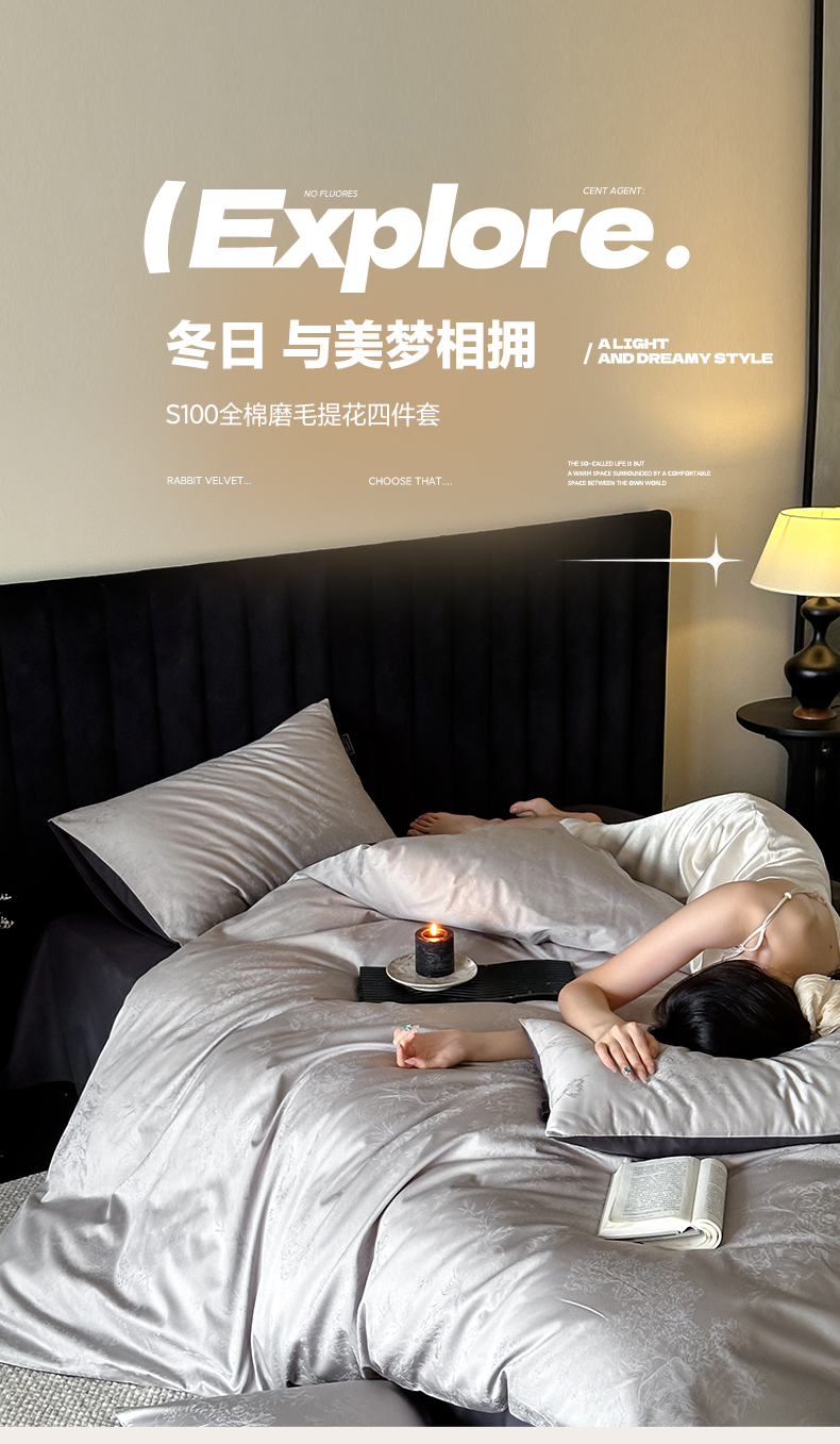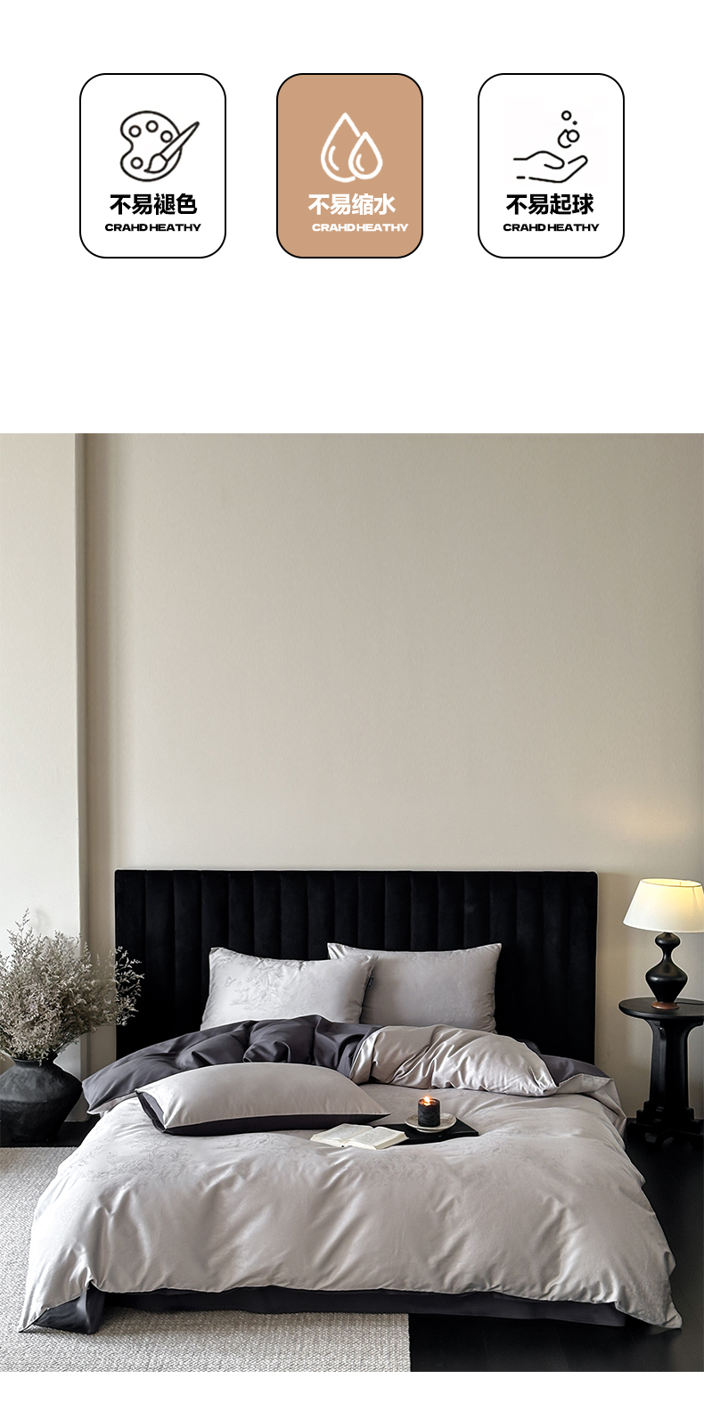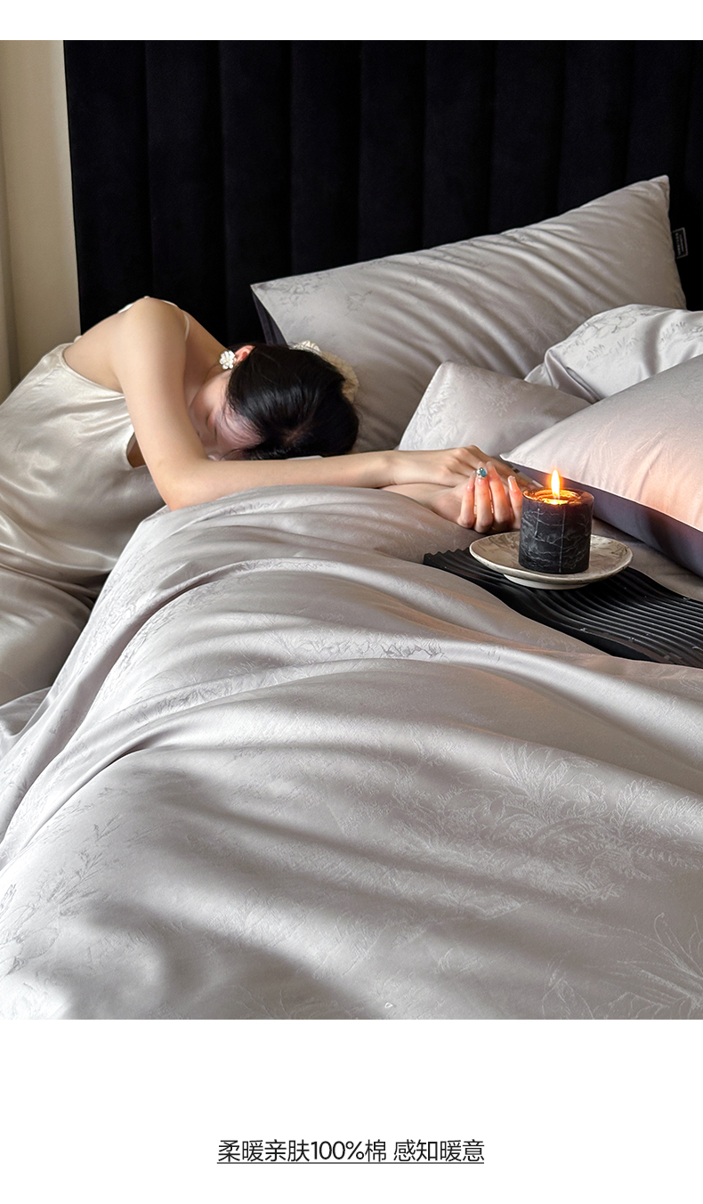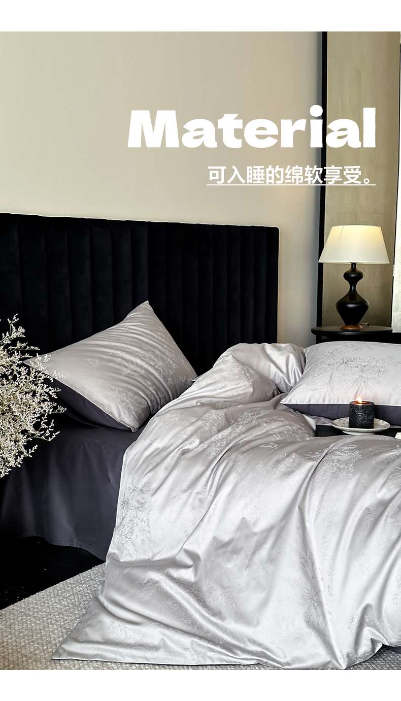 商品名称:三味舒屋 2025新款素织静奢系列50支全棉提花磨毛四件套 玛莎灰