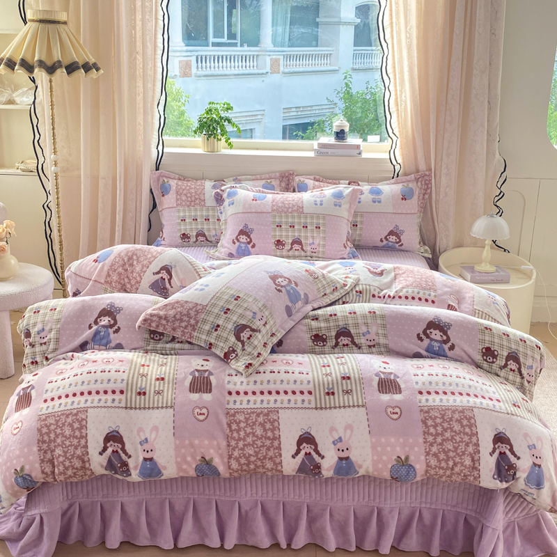 商品名称:富之航家纺 2025秋冬新款牛奶绒印花床盖四件套 公主城堡