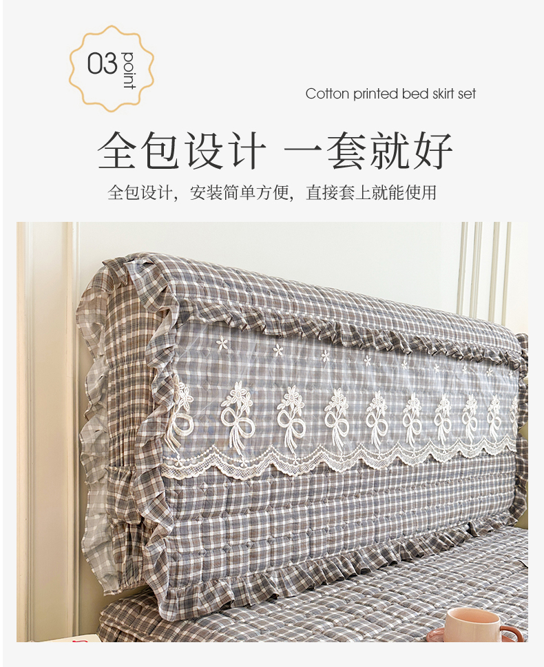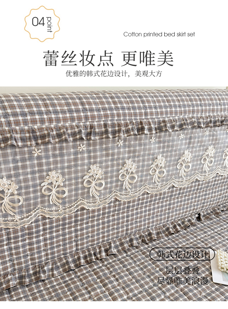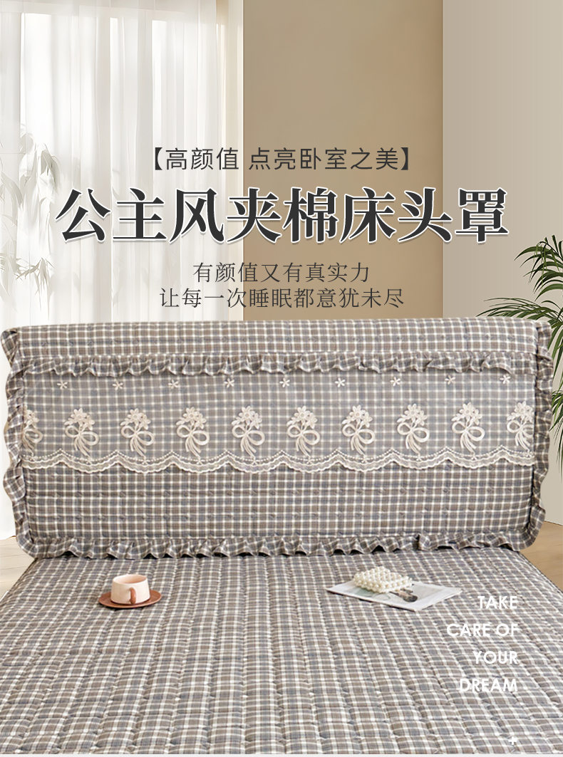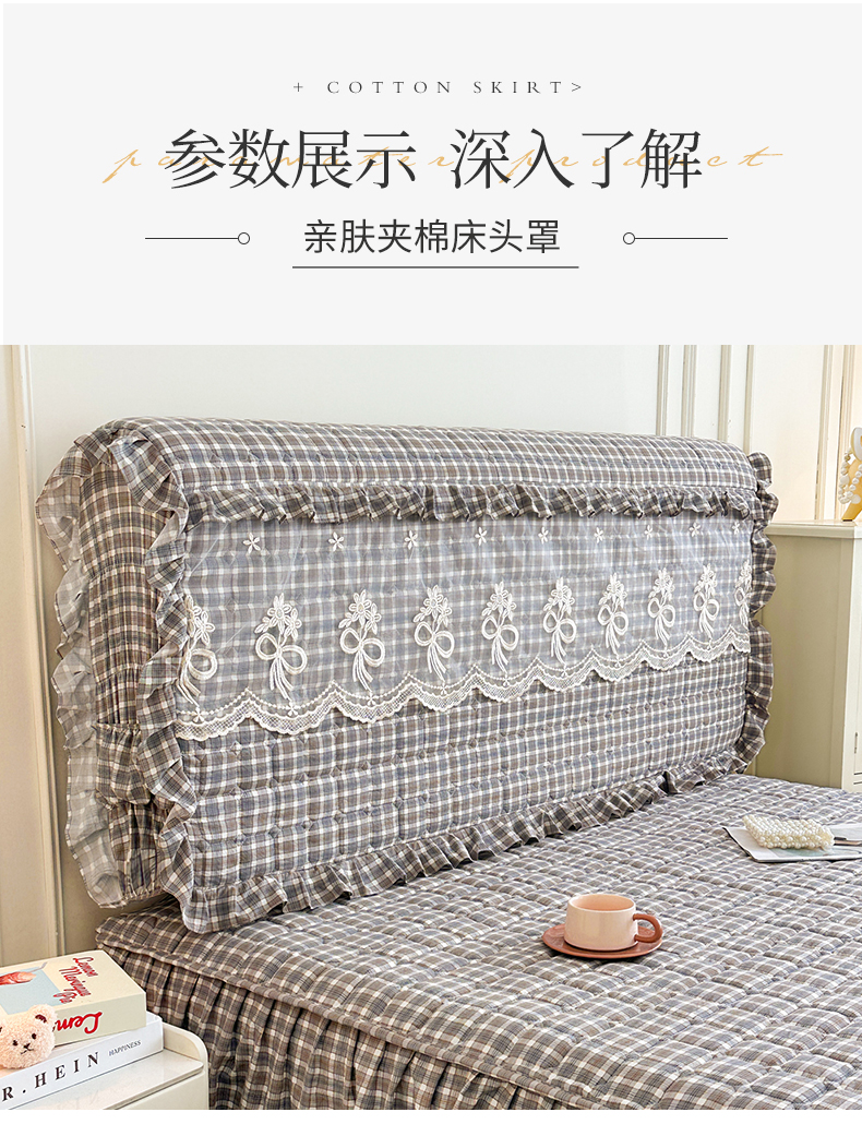 商品名称:十个点家纺 2025新款公主风夹棉床头罩-格小格系列 格小格-咖