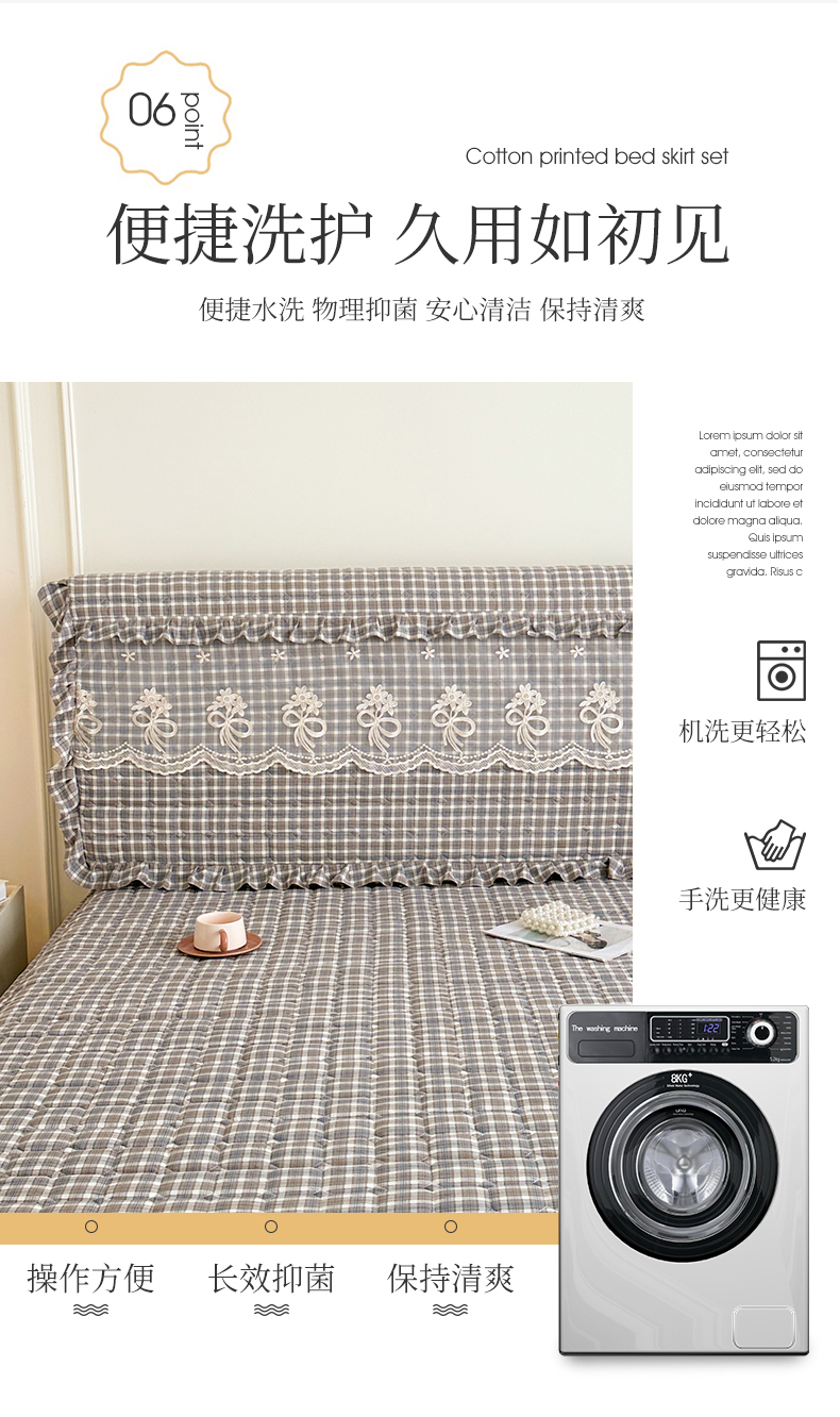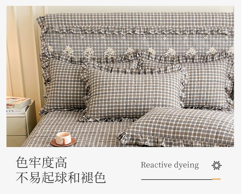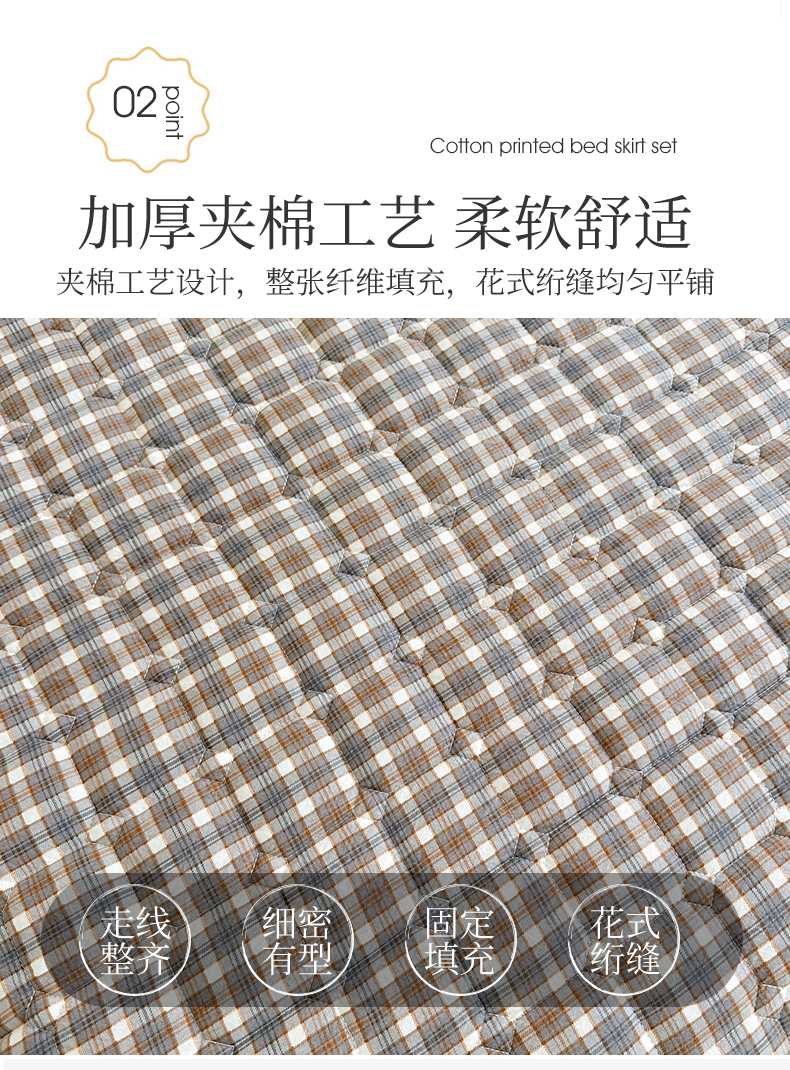 (总)十个点家纺 2025新款千鸟格磨毛绗缝夹棉纯色花边床裙三件套,经典白色,经典兰色,经典浅灰,经典浅驼,经典深灰,经典玉粉
