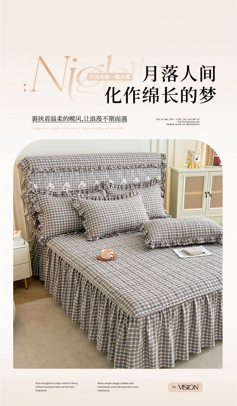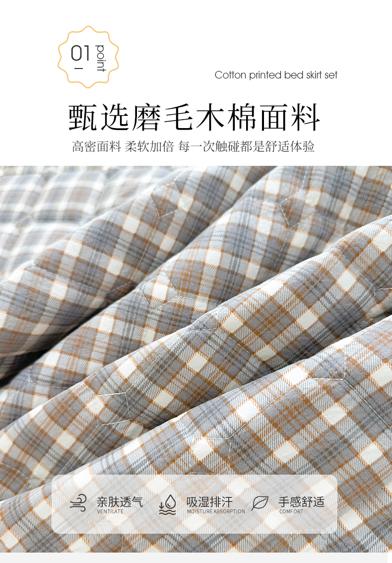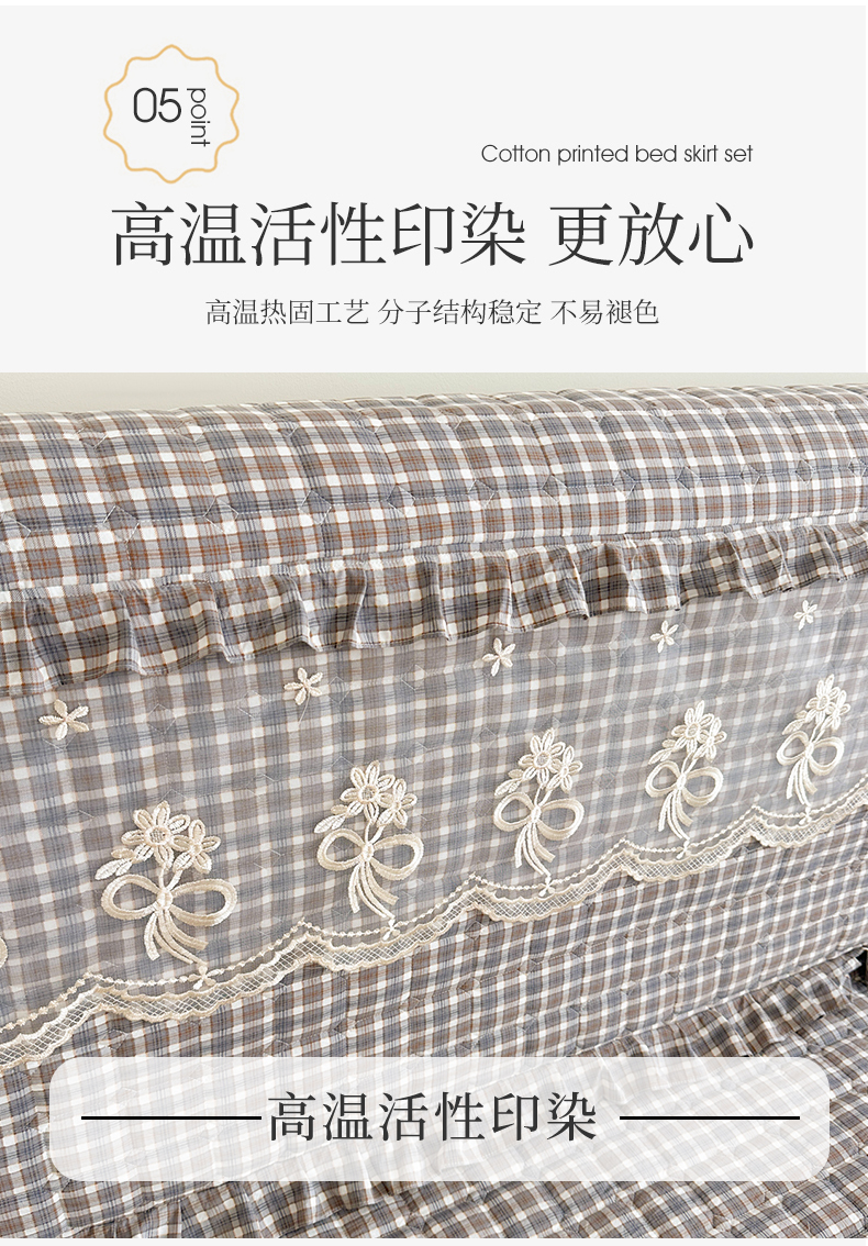 (总)十个点家纺 2025新款加厚磨毛木棉床裙三件套-格小格系列,格小格-粉,格小格-金驼,格小格-咖,格小格-兰,格小格-绿,格小格-玉