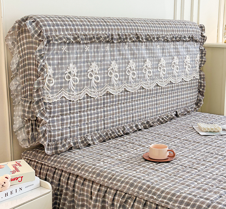 十个点家纺 2025新款公主风夹棉床头罩-格小格系列 格小格-咖