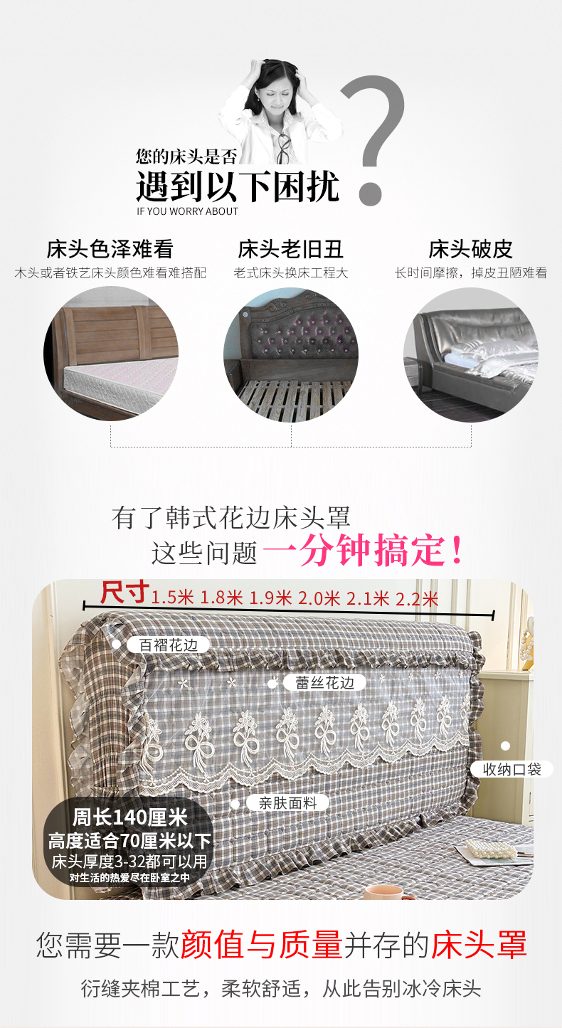 (总)十个点家纺 2025新款千鸟格磨毛绗缝夹棉纯色花边床头罩,经典白色,经典兰色,经典浅灰,经典浅驼,经典深灰,经典玉粉