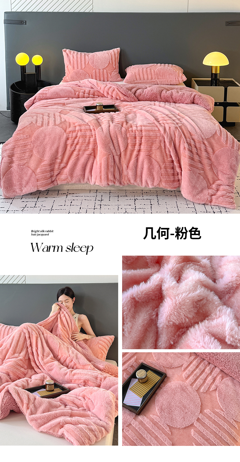 (总)枋梢家纺 2025新款亮丝兔毛绒兔毛提花北欧几何羊羔绒 双层加厚保暖盖毯 居家午睡保暖毯,几何-粉色,几何-咖色,几何-绿色,几何-米黄,几何-浅灰,几何-深灰,几何-驼色,几何-紫色,包装