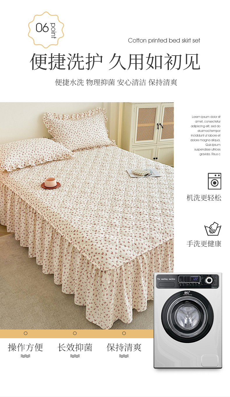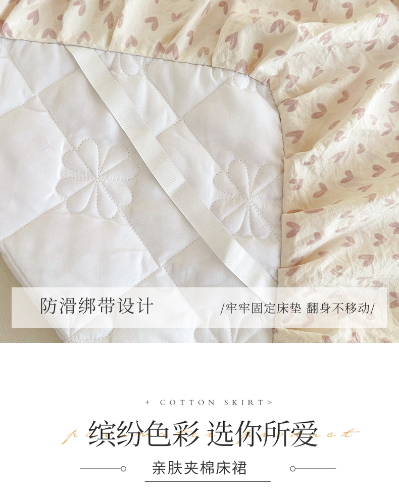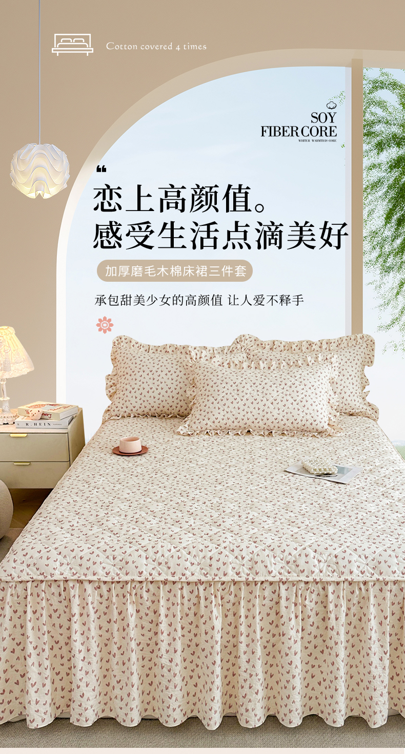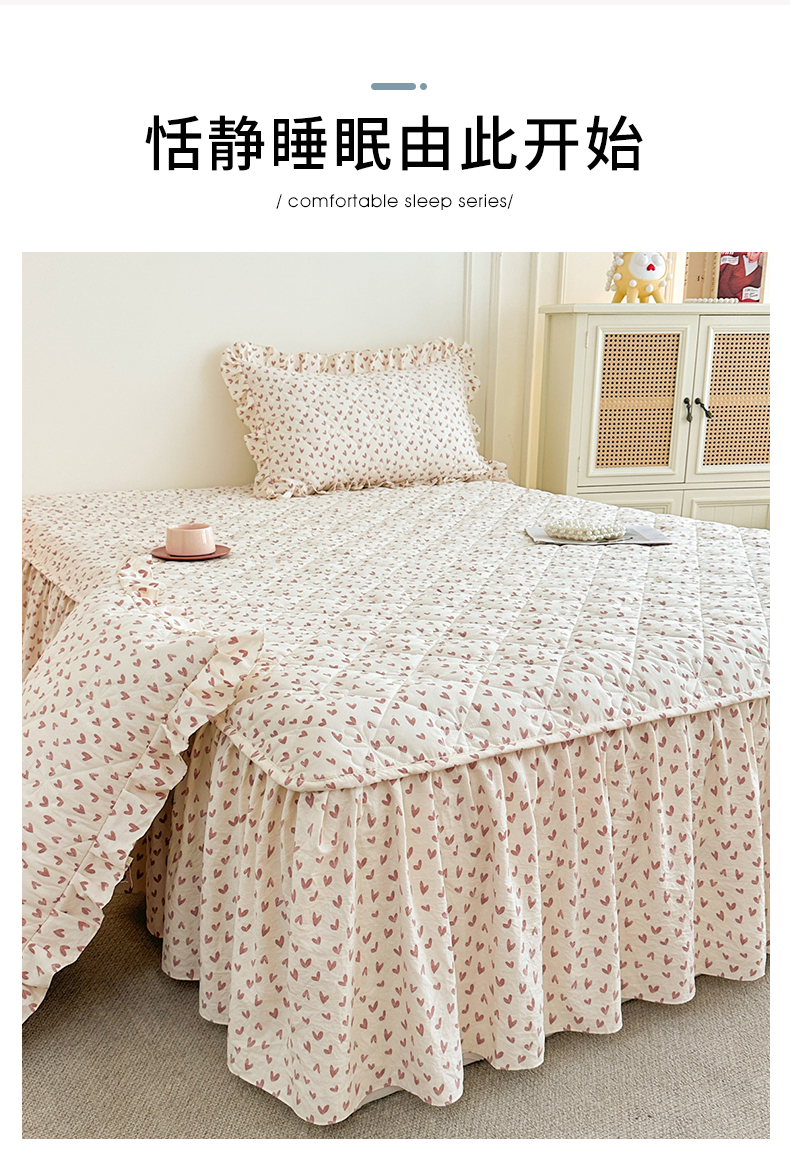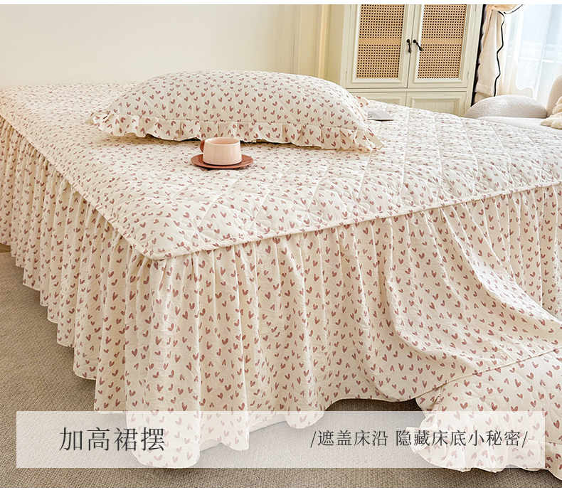 商品名称:十个点家纺 2025新款加厚磨毛木棉床裙三件套-绫罗系列 心相印