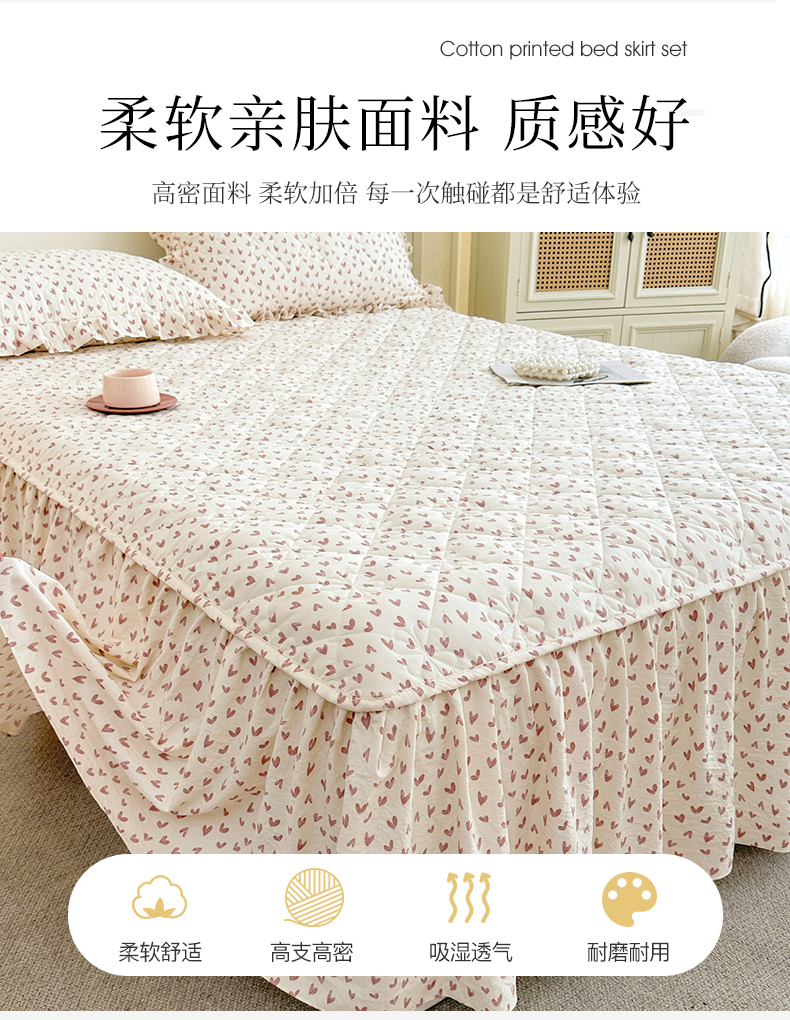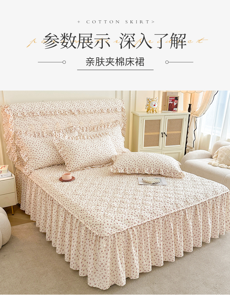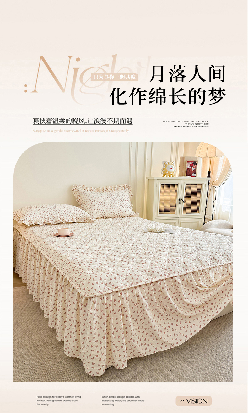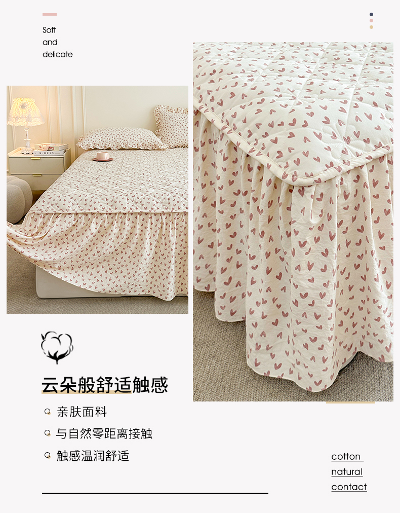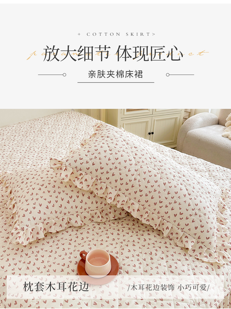 十个点家纺 2025新款加厚磨毛木棉床裙三件套-绫罗系列 心相印