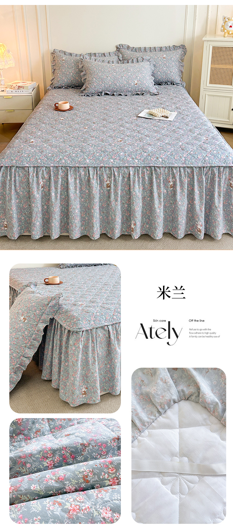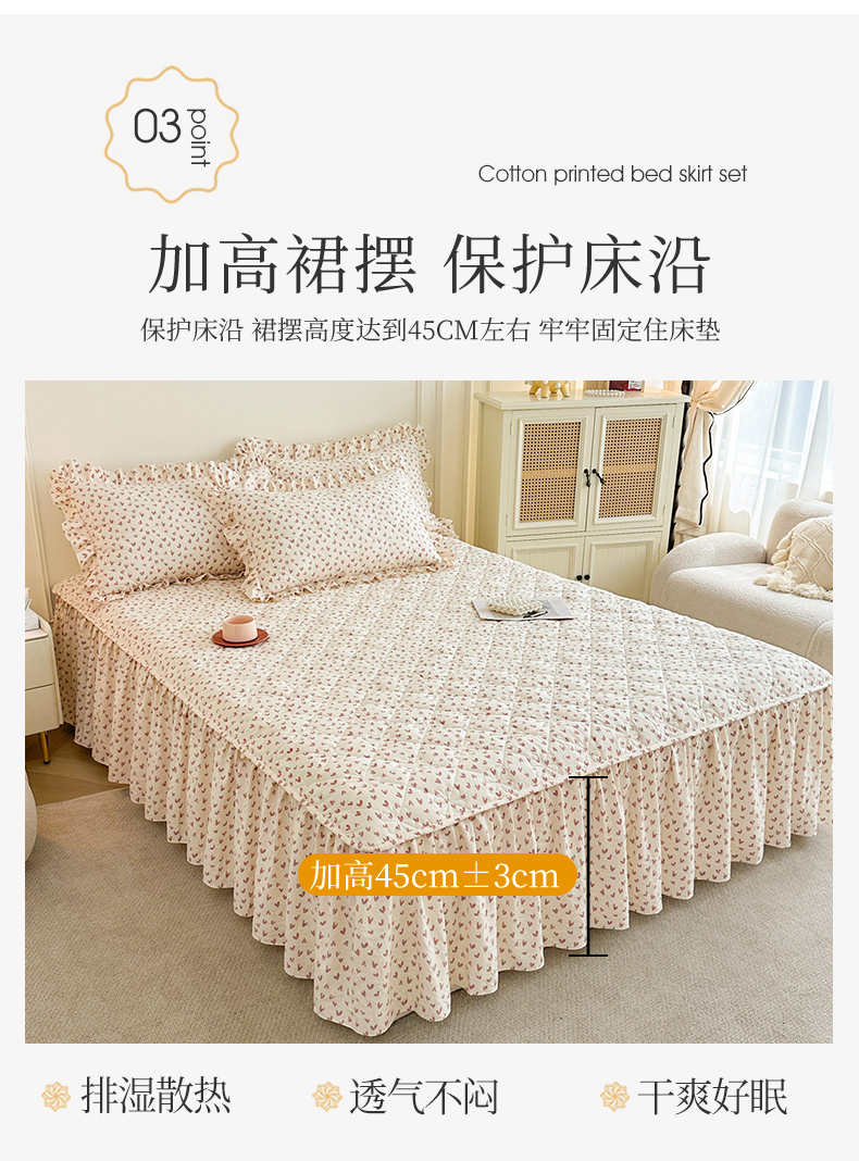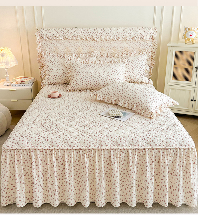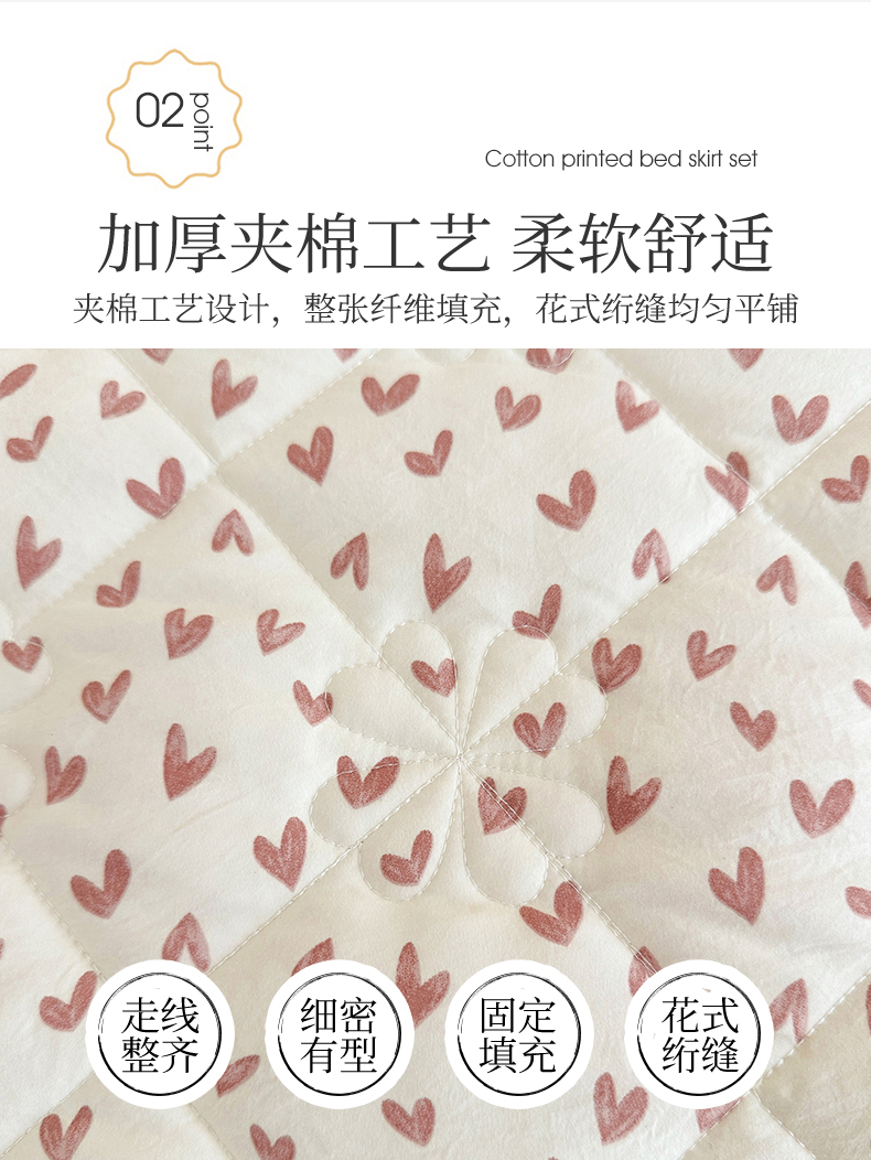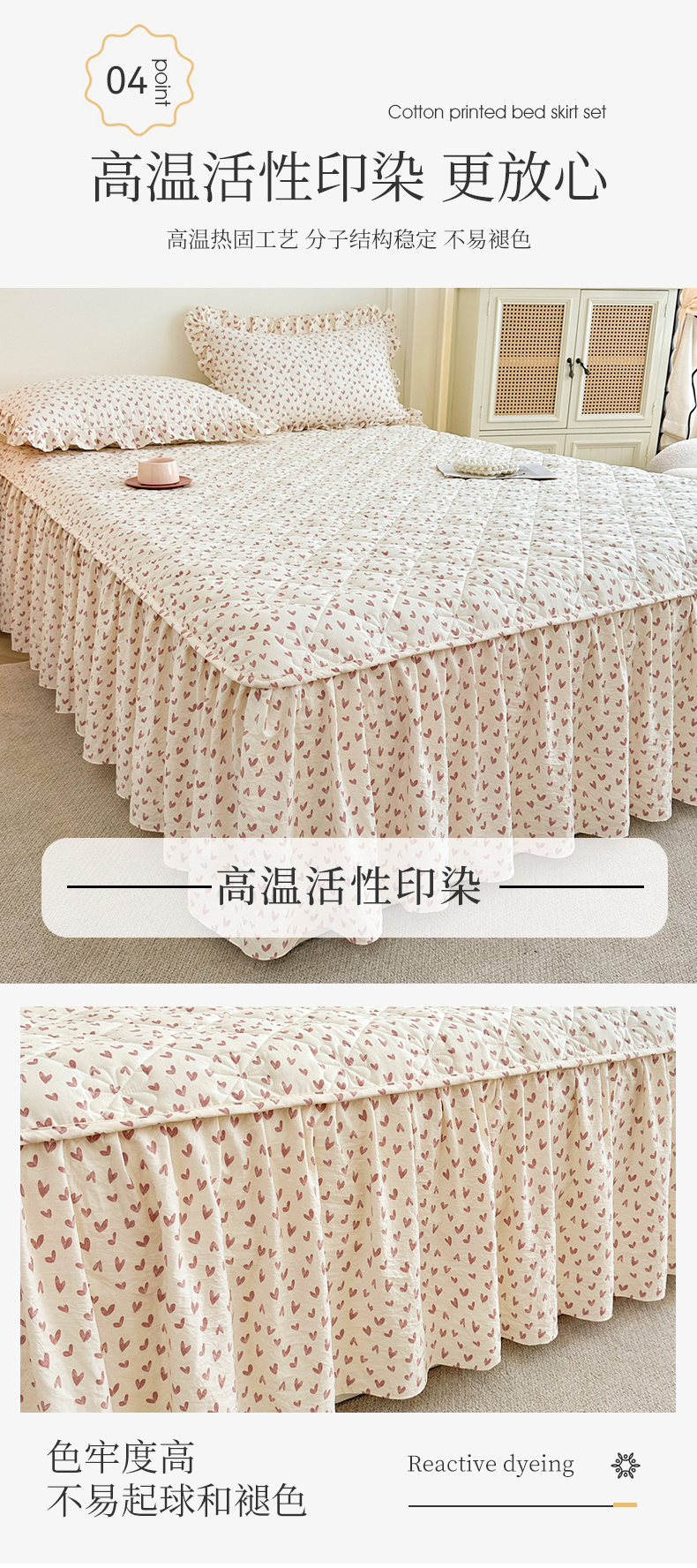 十个点家纺 2025新款加厚磨毛木棉床裙三件套-绫罗系列 心相印