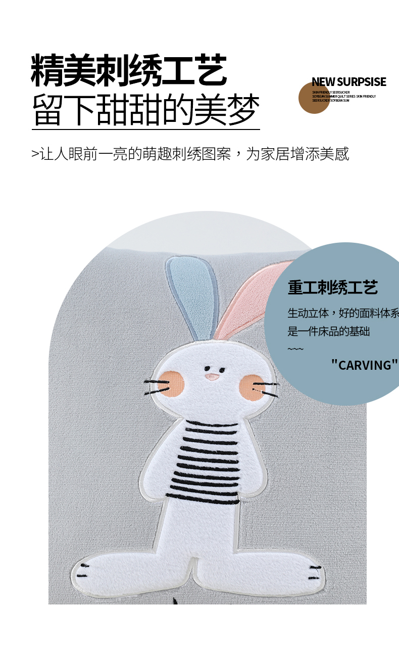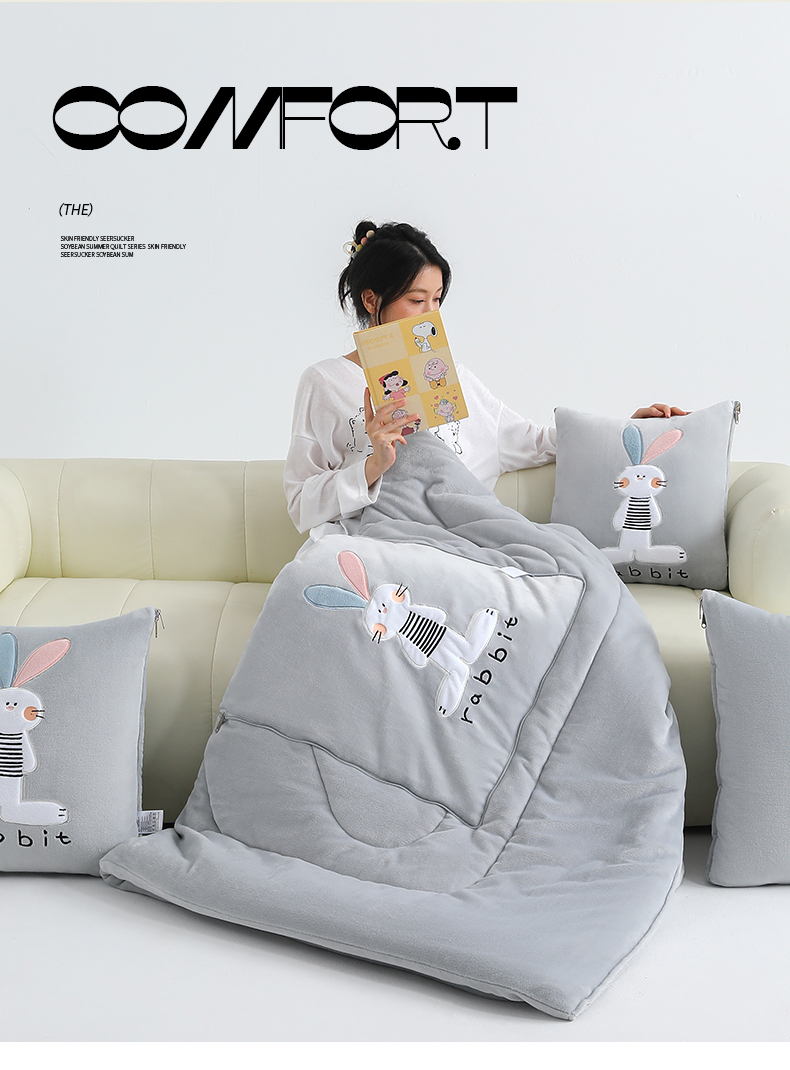 商品名称:翰轩家居 2025新款卡通牛奶绒贴布绣抱枕被-梦幻兔系列 梦幻兔-高级灰