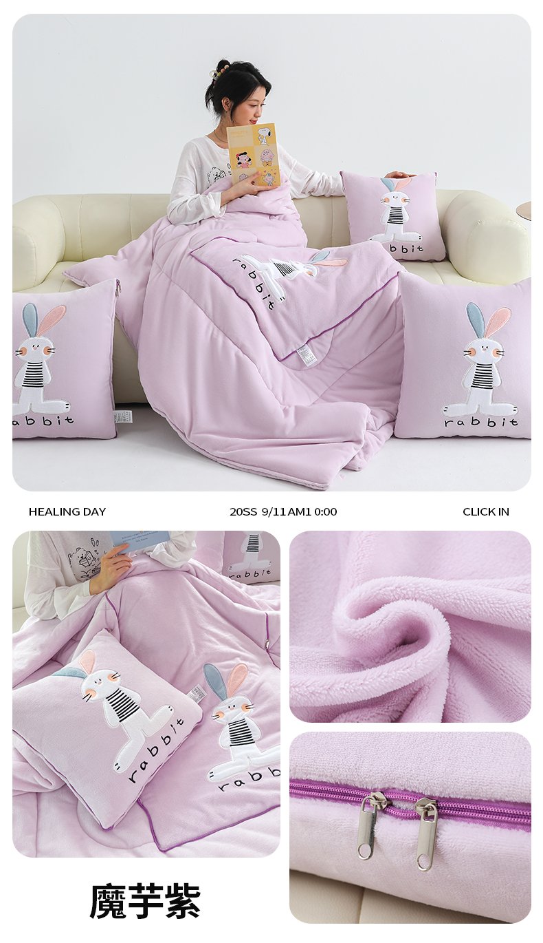 (总)翰轩家居 2025新款卡通牛奶绒贴布绣抱枕被-梦幻兔系列,梦幻兔-高级灰,梦幻兔-咖啡棕,梦幻兔-魔芋紫,梦幻兔-天空蓝,梦幻兔-樱花粉