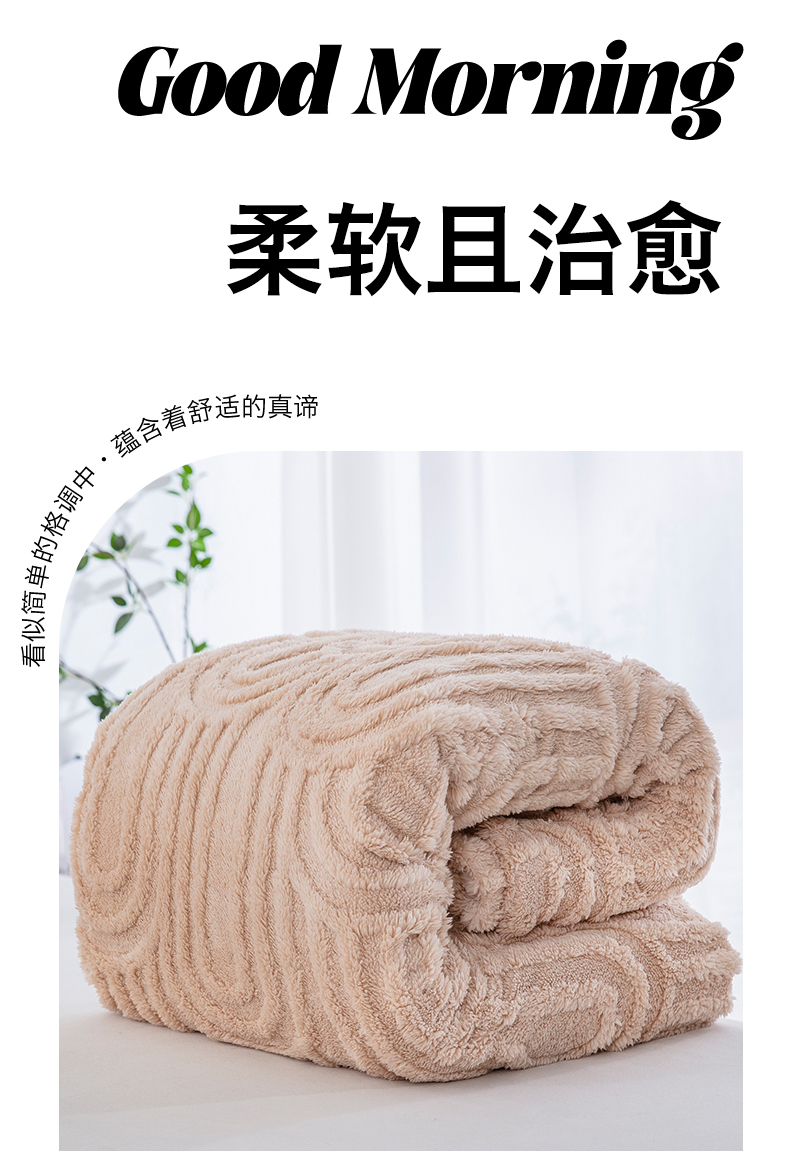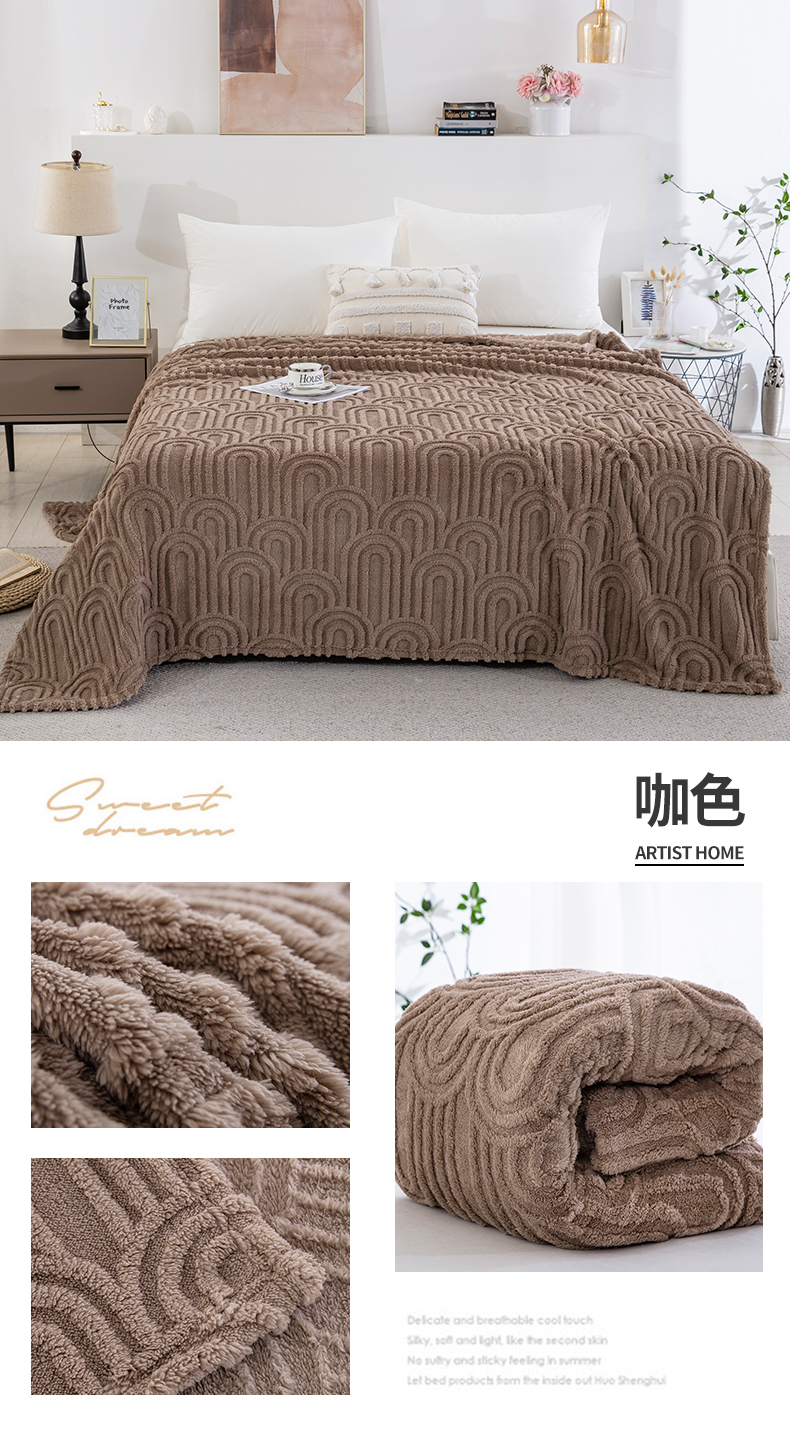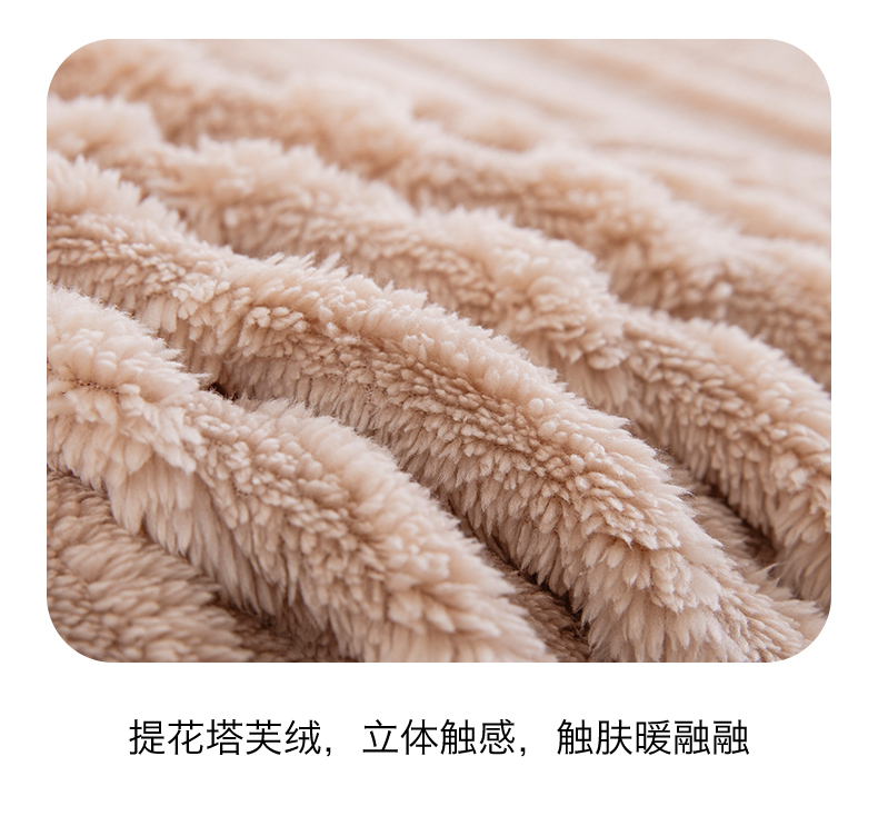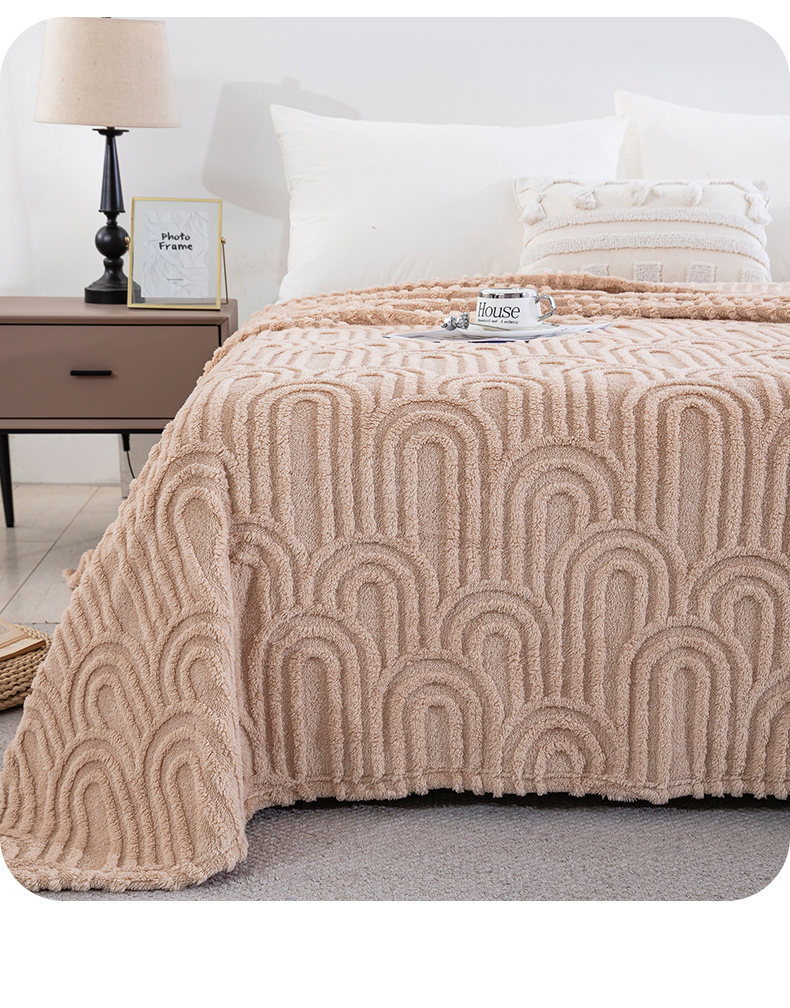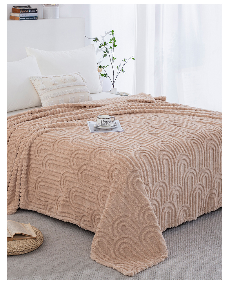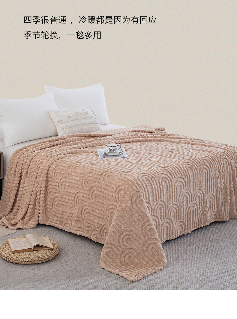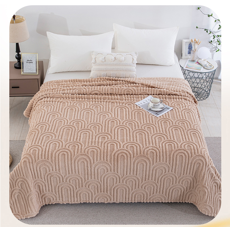一左一右 2025秋冬新款280克高克重单层双面提花塔芙绒毛毯舒棉绒毯多功能毯子外贸跨境电商-小拱门 浅驼