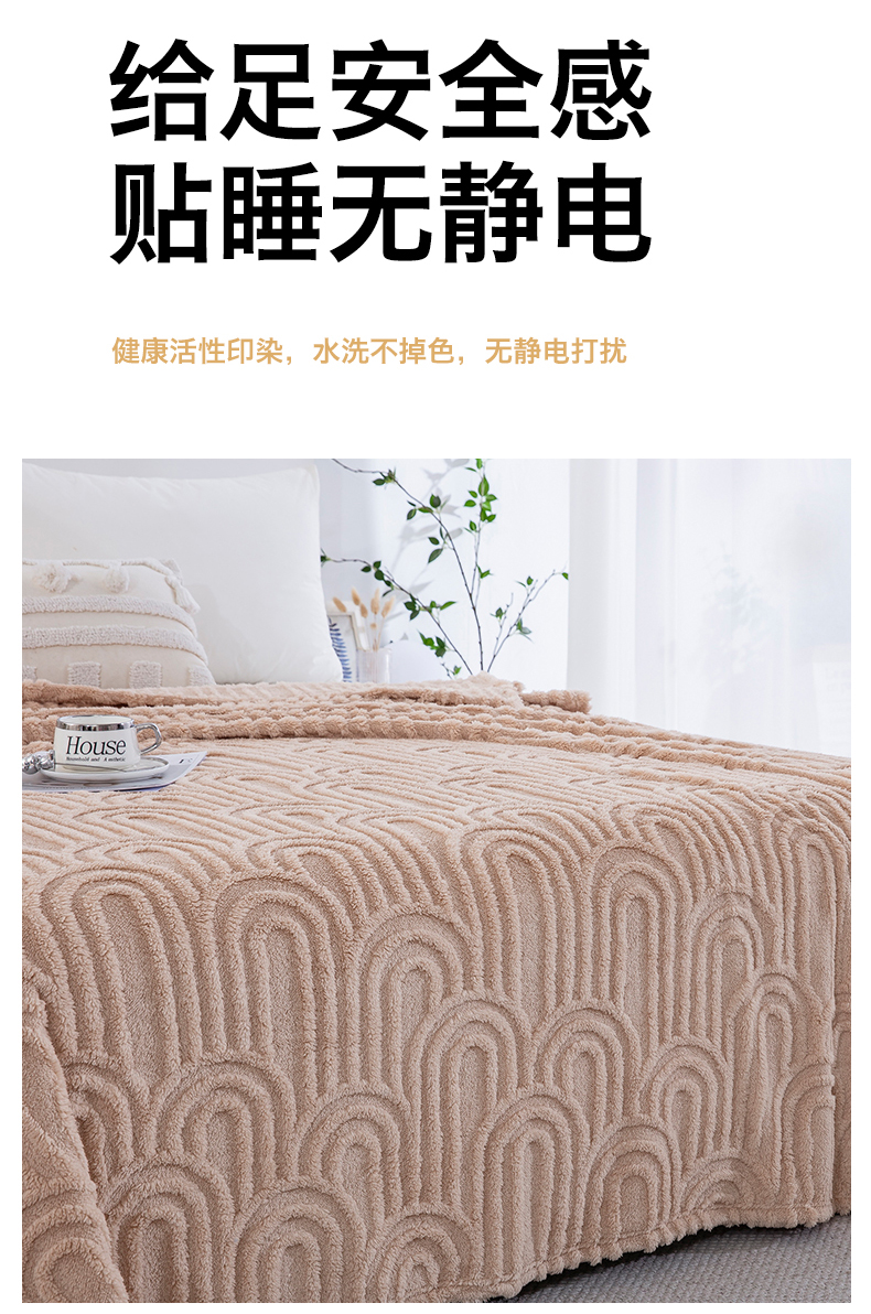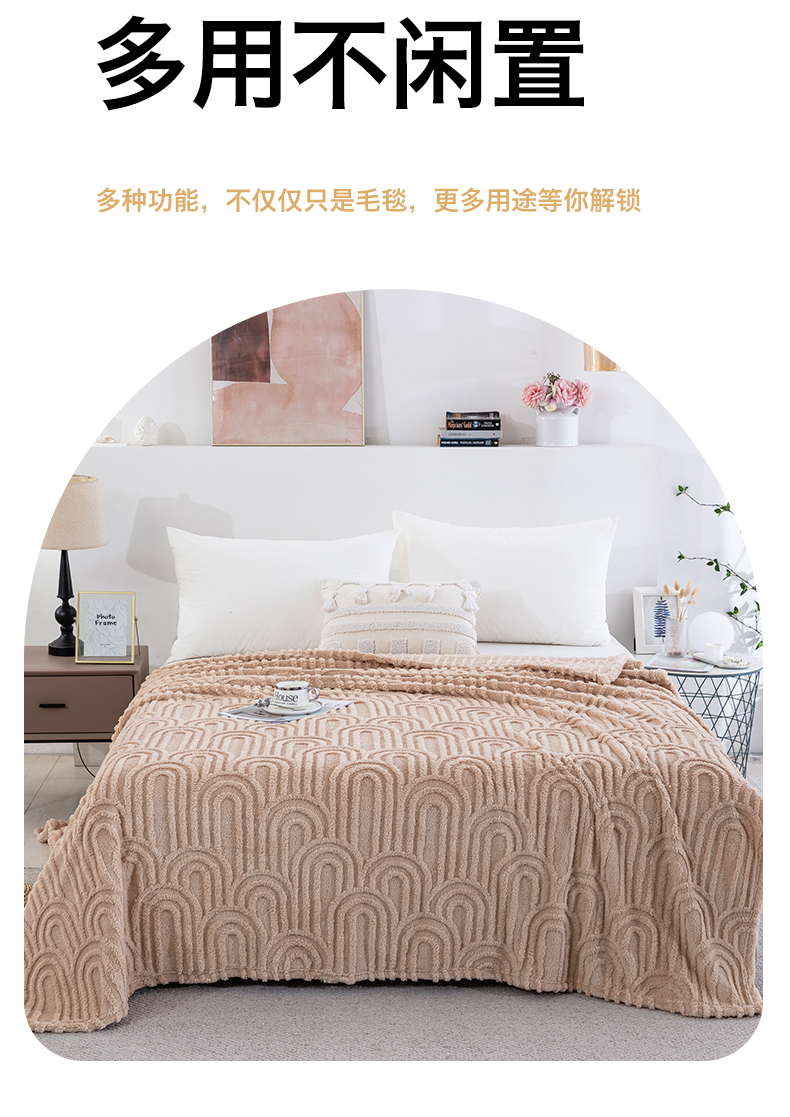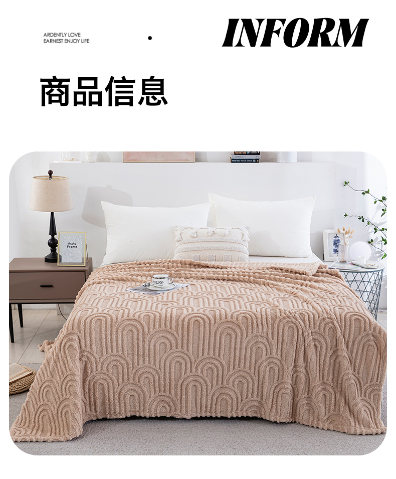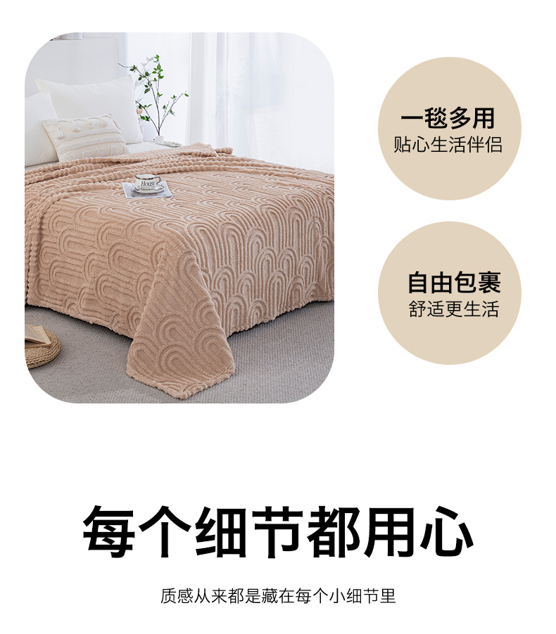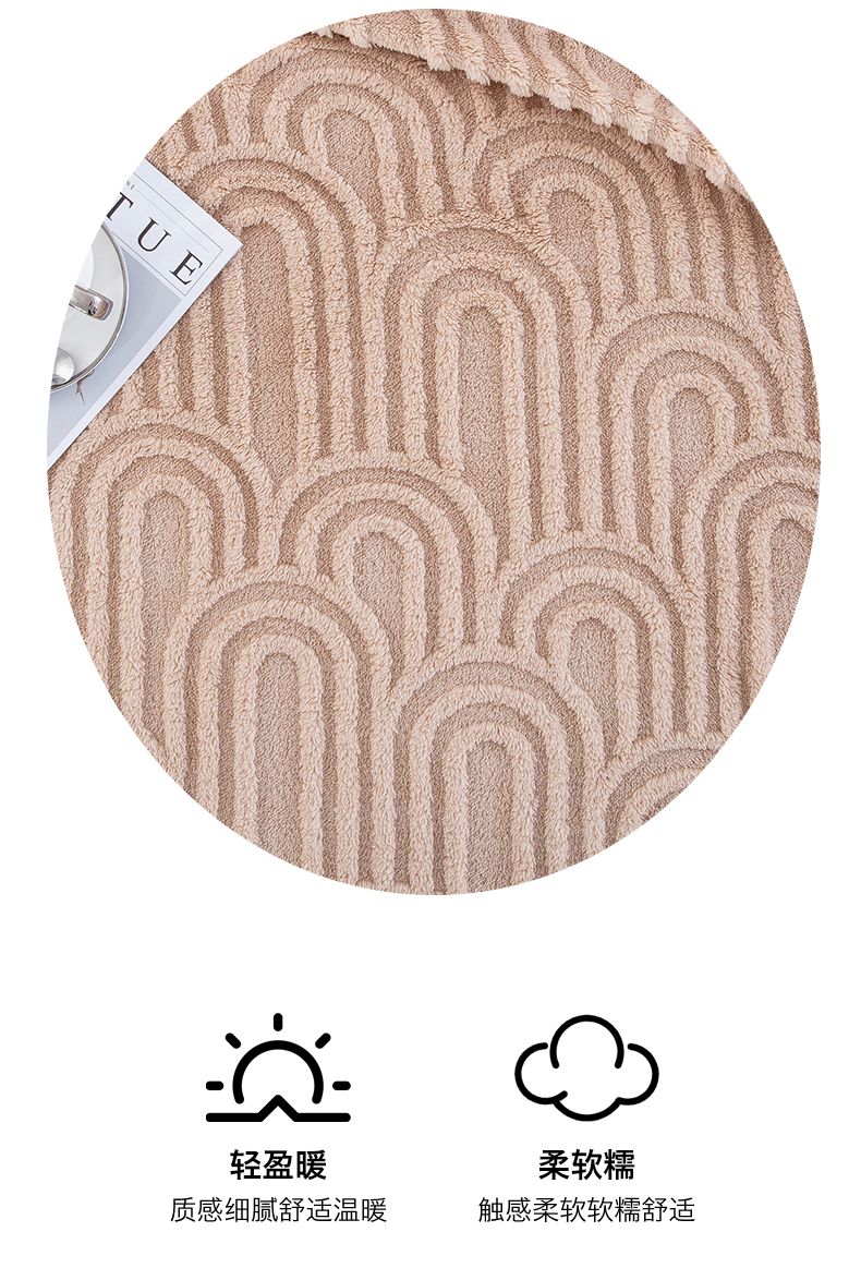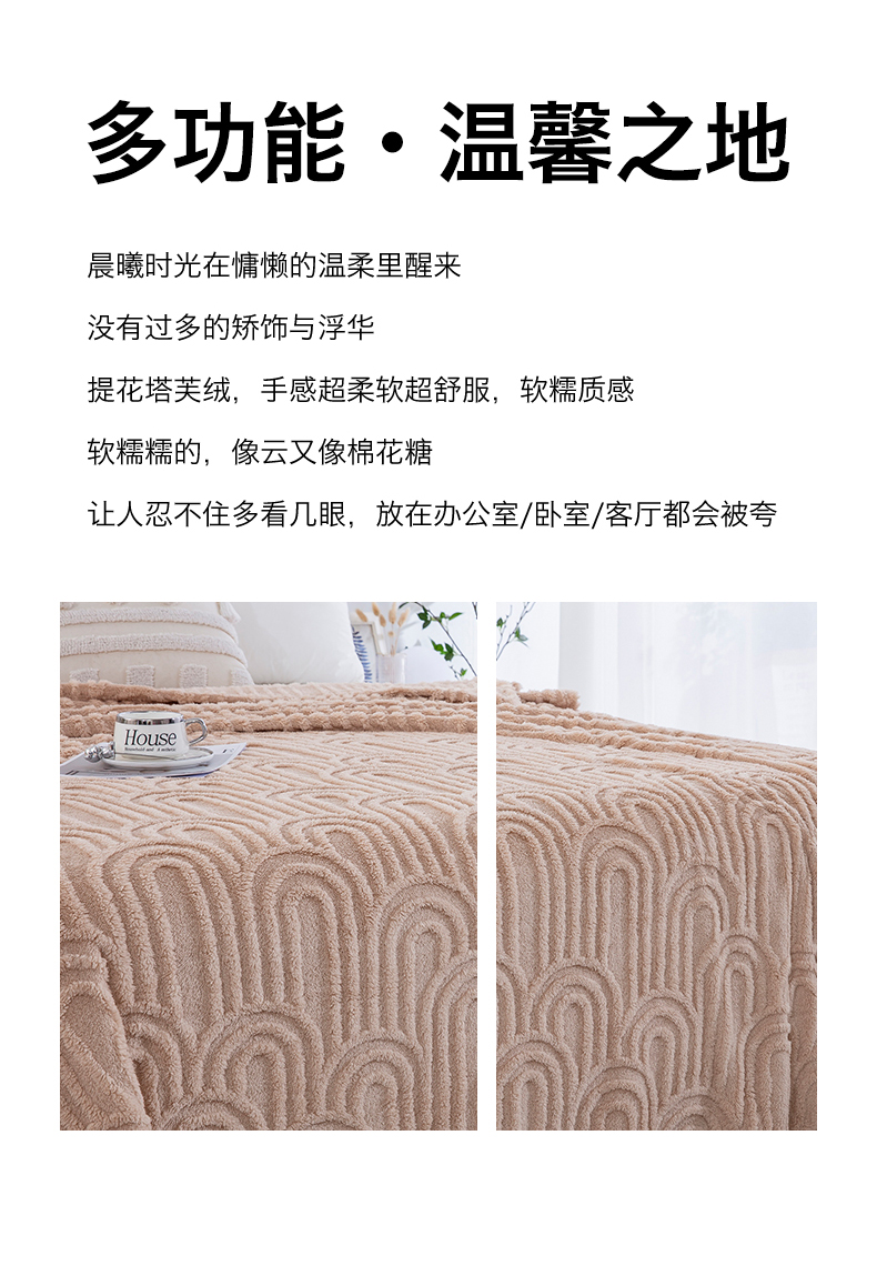商品名称:一左一右 2025秋冬新款280克高克重单层双面提花塔芙绒毛毯舒棉绒毯多功能毯子外贸跨境电商-小拱门 浅驼