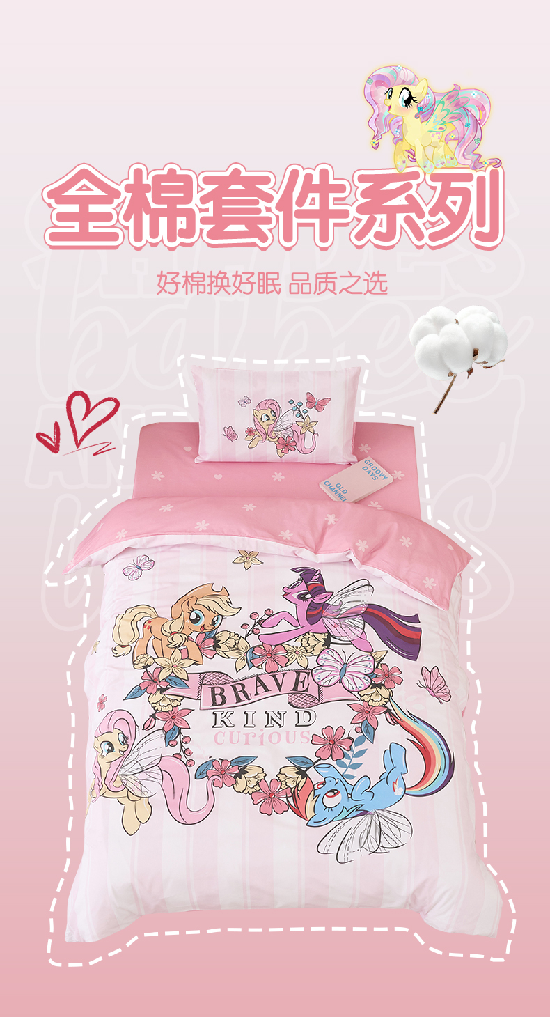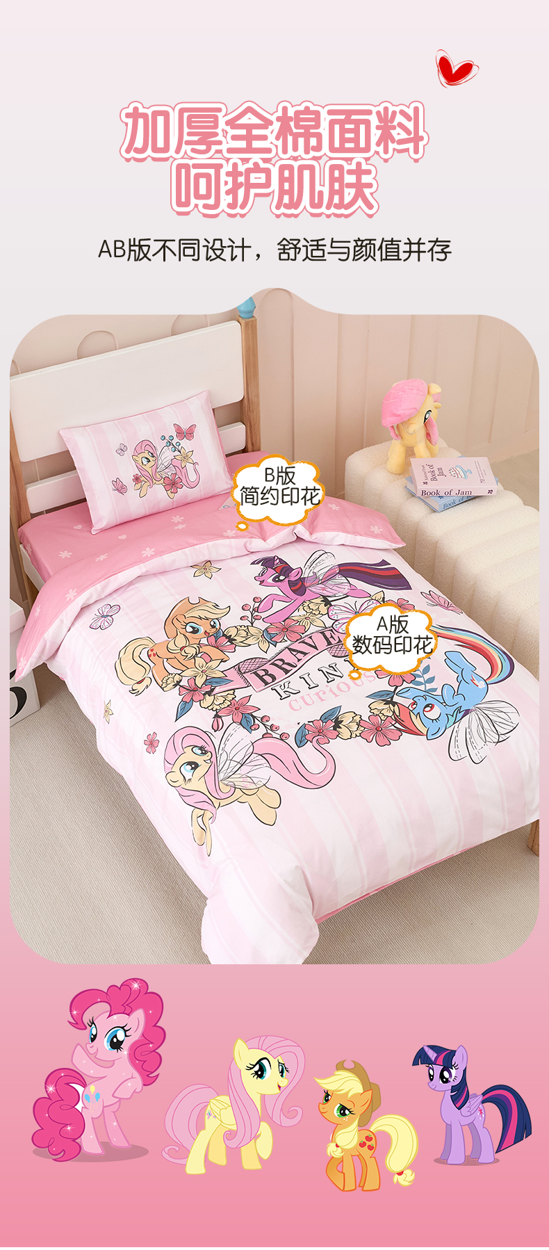 百利卡通(原迪士尼家纺) 2025新款正版授权小马宝莉全棉数码印花幼儿园童被套装 勇敢家族T