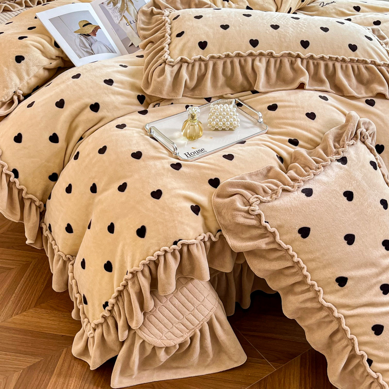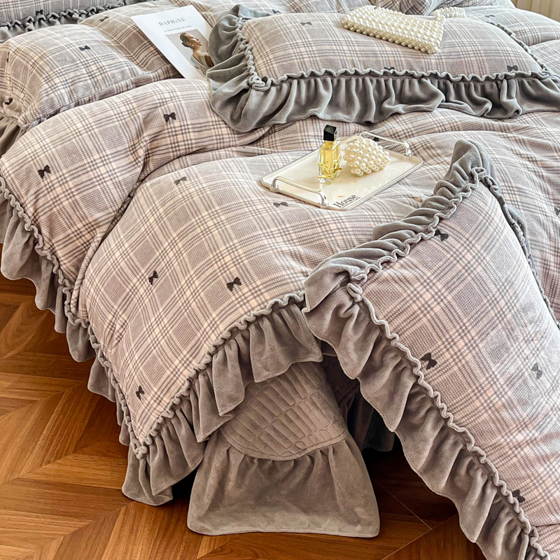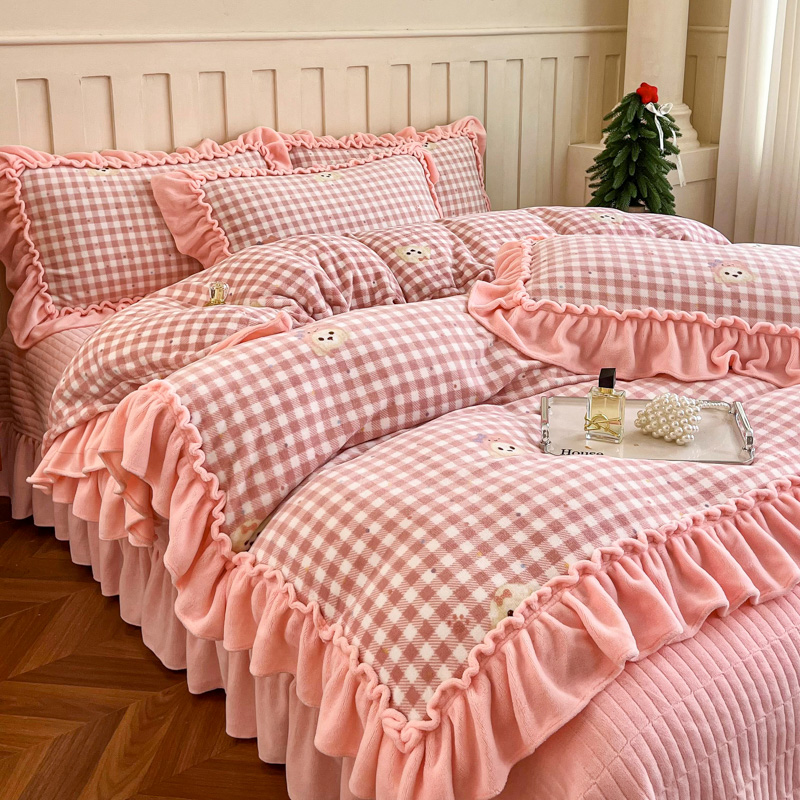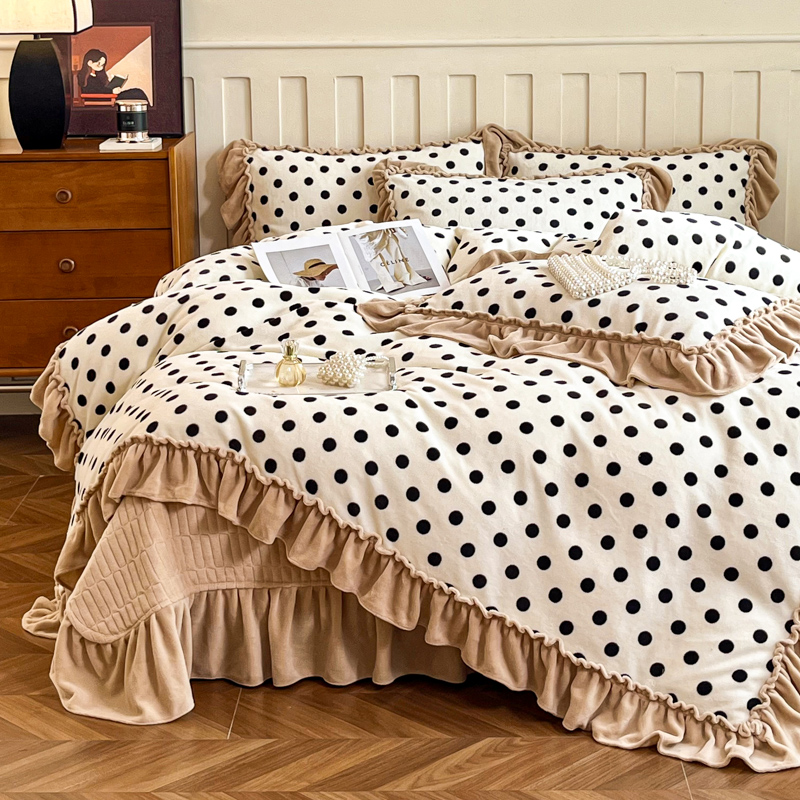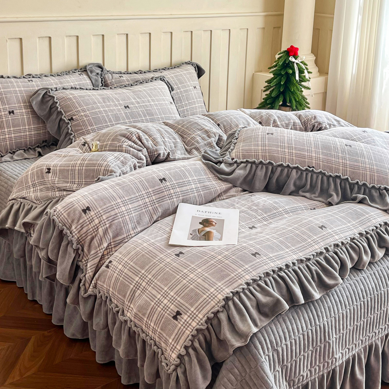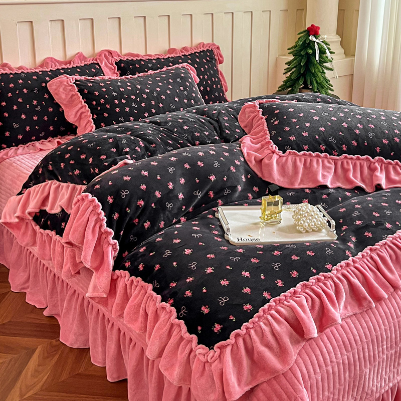 (总)梦可莱家居 2025冬季新款复古风印花牛奶绒大花边床盖四件套
