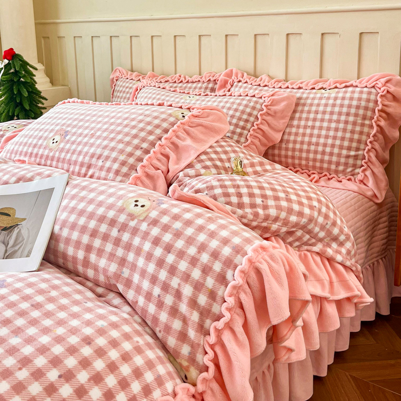 (总)梦可莱家居 2025冬新款牛奶绒加厚保暖花边床盖四件套系列简单款,梨花落AA,爱心字母,大卡豹纹,蝶舞AA,粉色猫,粉色兔,红心AA,花妖妖,满情AA,猫咪豹纹粉,猫咪豹纹兰,梦情,米色圆点,双拼蝴蝶粉,双拼蝴蝶兰,小清新,心心相印,樱桃AA,紫薇AA
