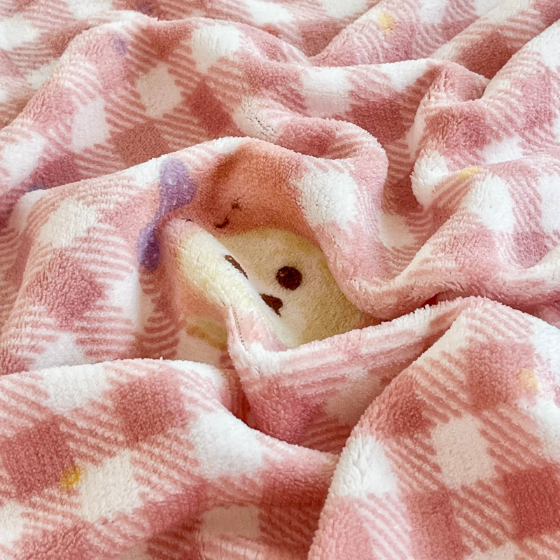 (总)梦可莱家居 2025新款牛奶绒毛巾绣加厚床盖四件套,爆莓兔,背带熊猫,蛋糕帽,黑皮猫,恐龙,小粉象,小女孩