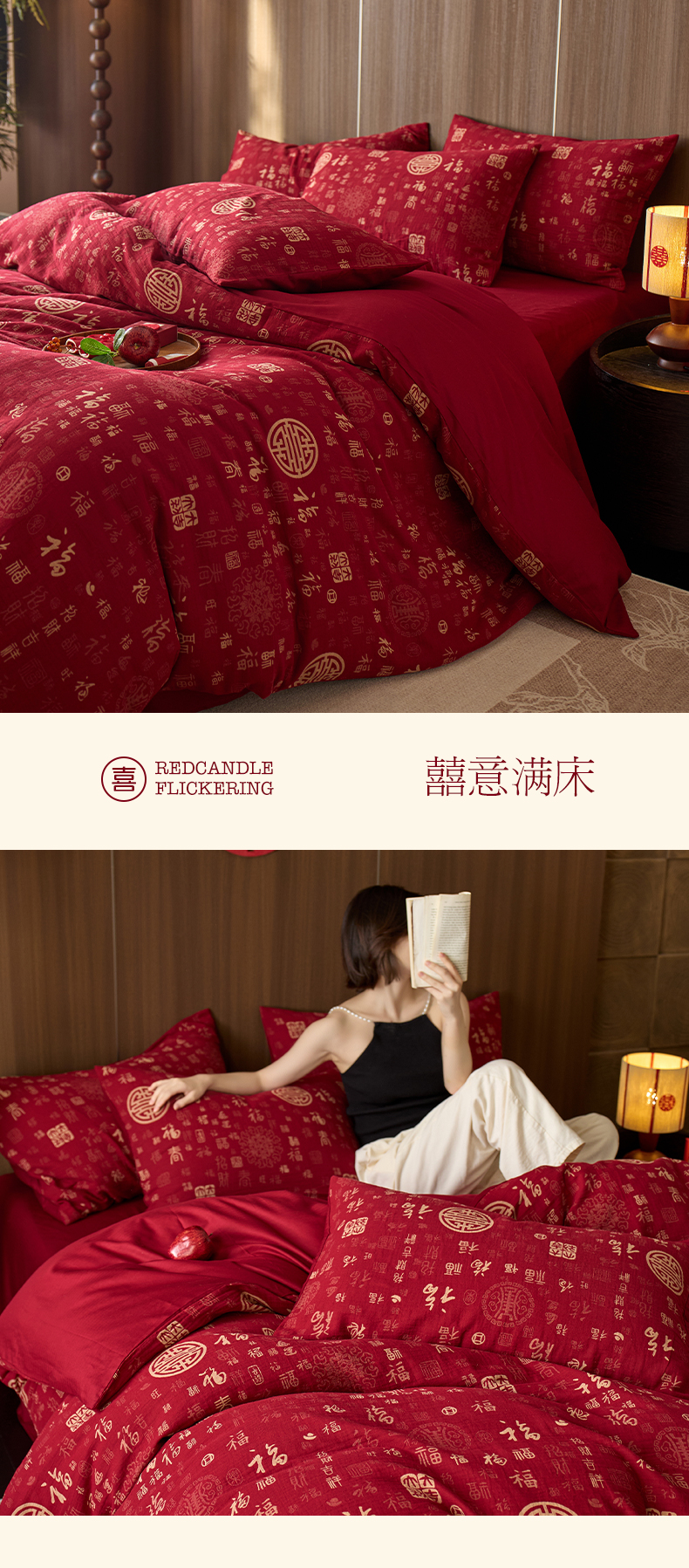 (总)安莱生活 2025新品全棉色织提花(大红婚庆 )四件套