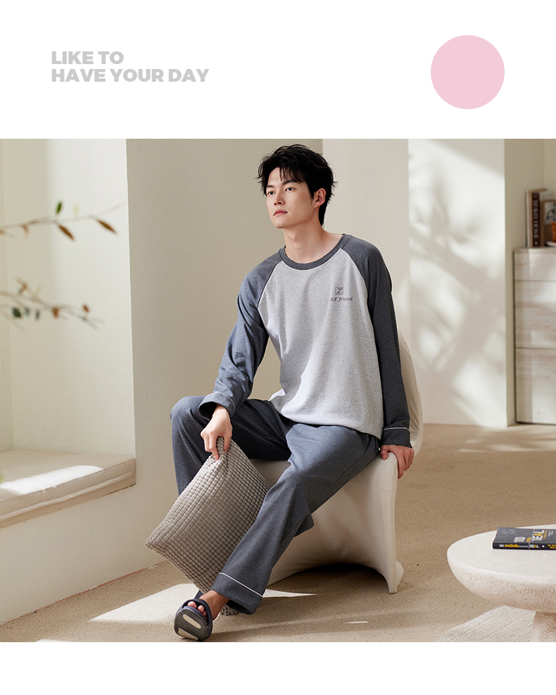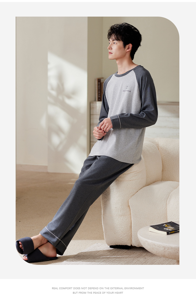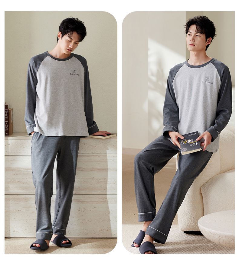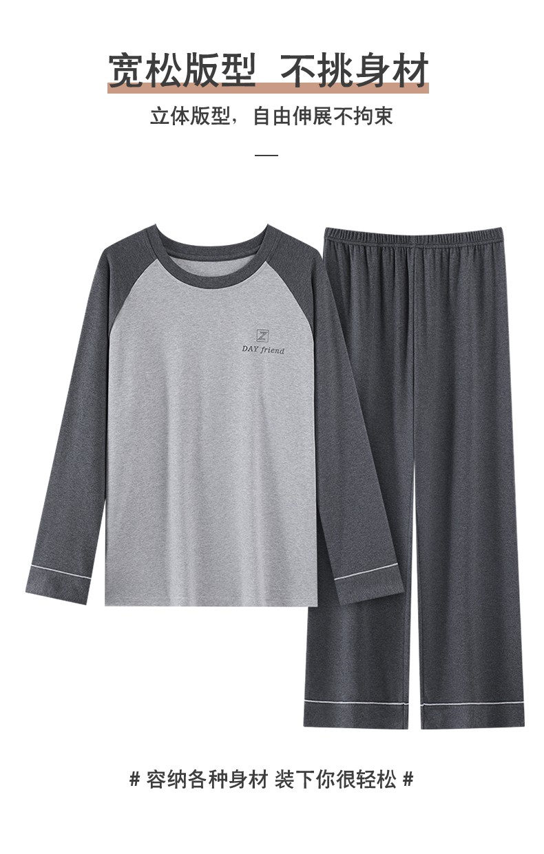 洛兰沙家居馆 2025新款德绒睡衣男士秋冬季套头圆领休闲保暖家居服青少年两件套 54101