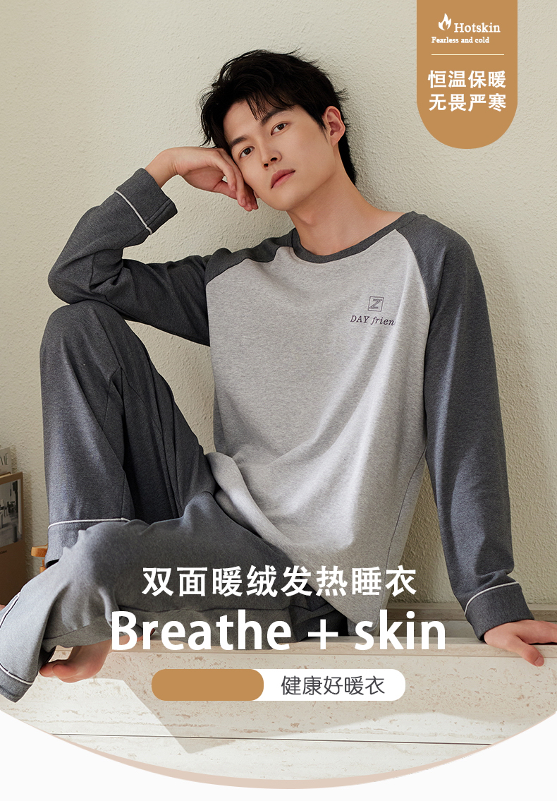 商品名称:洛兰沙家居馆 2025新款德绒睡衣男士秋冬季套头圆领休闲保暖家居服青少年两件套 54101