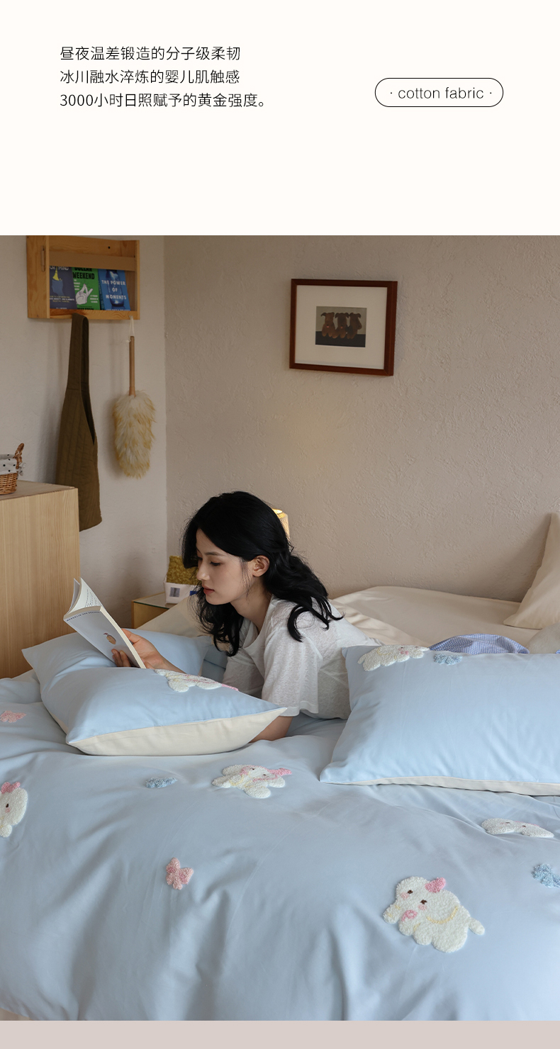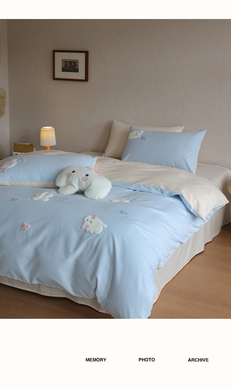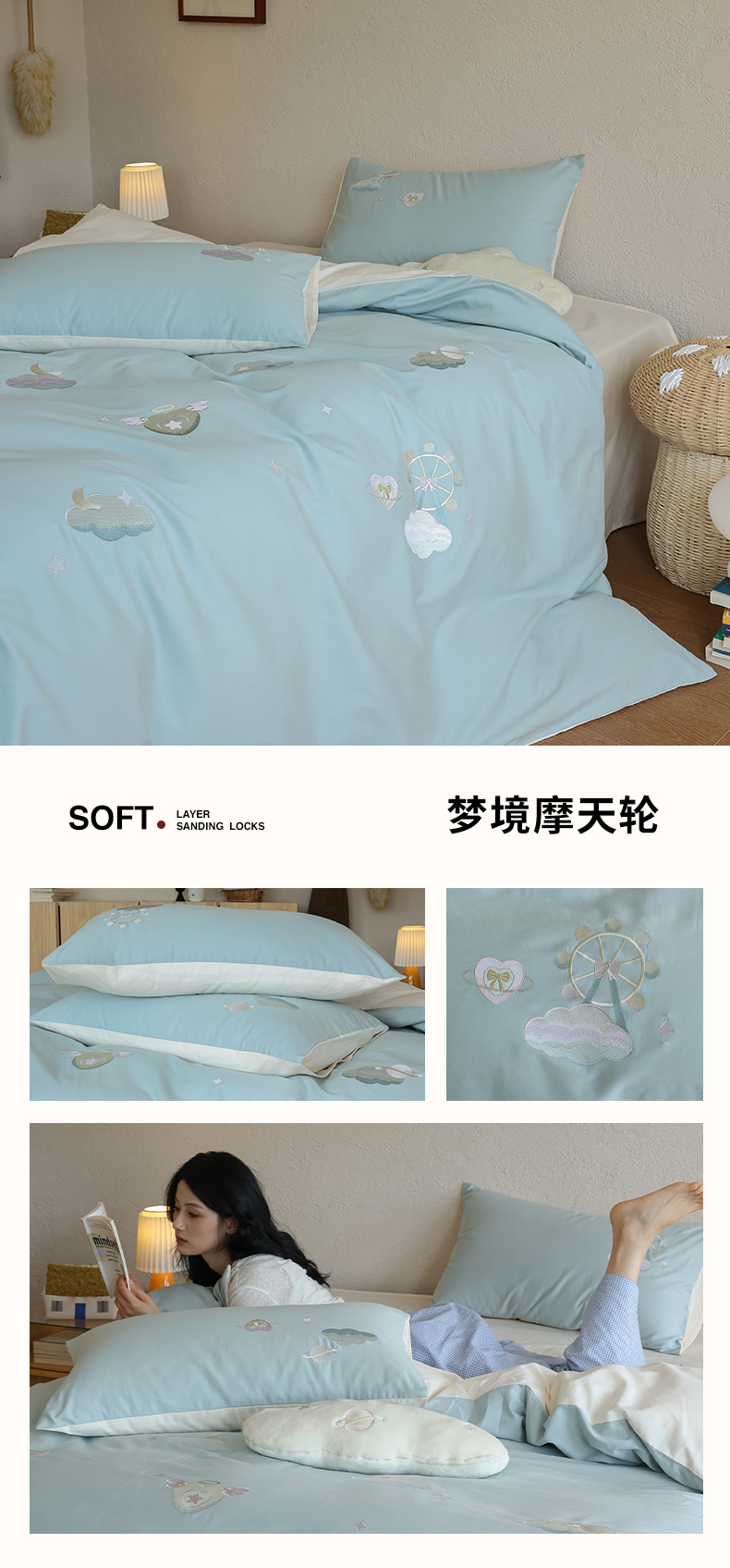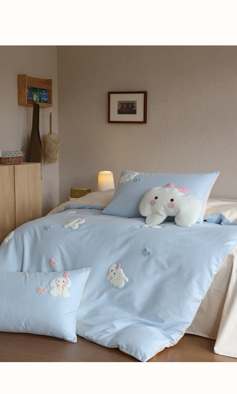 当前位置: 91家纺网 > 商品网购 > 床品套件 > 四件套 > 普通磨毛四件套 > 安莱生活 2025新款贡缎磨毛60s绣花四件套-风格二 蓝粉小象