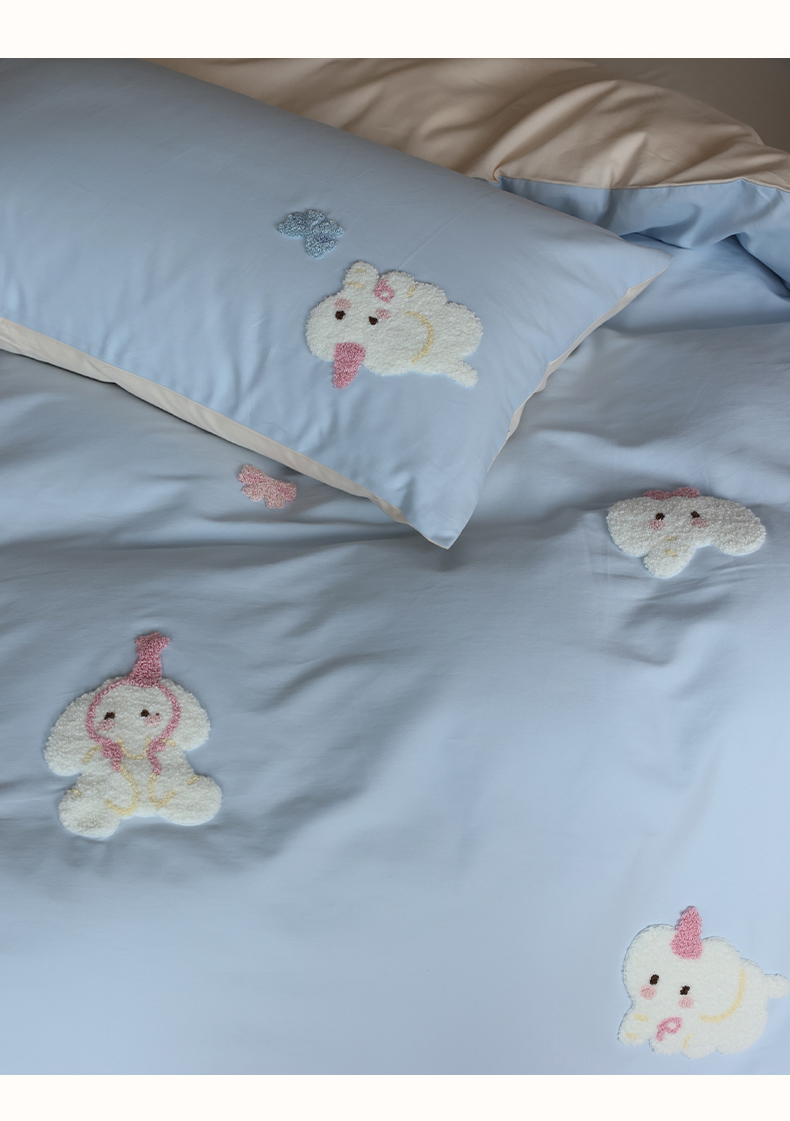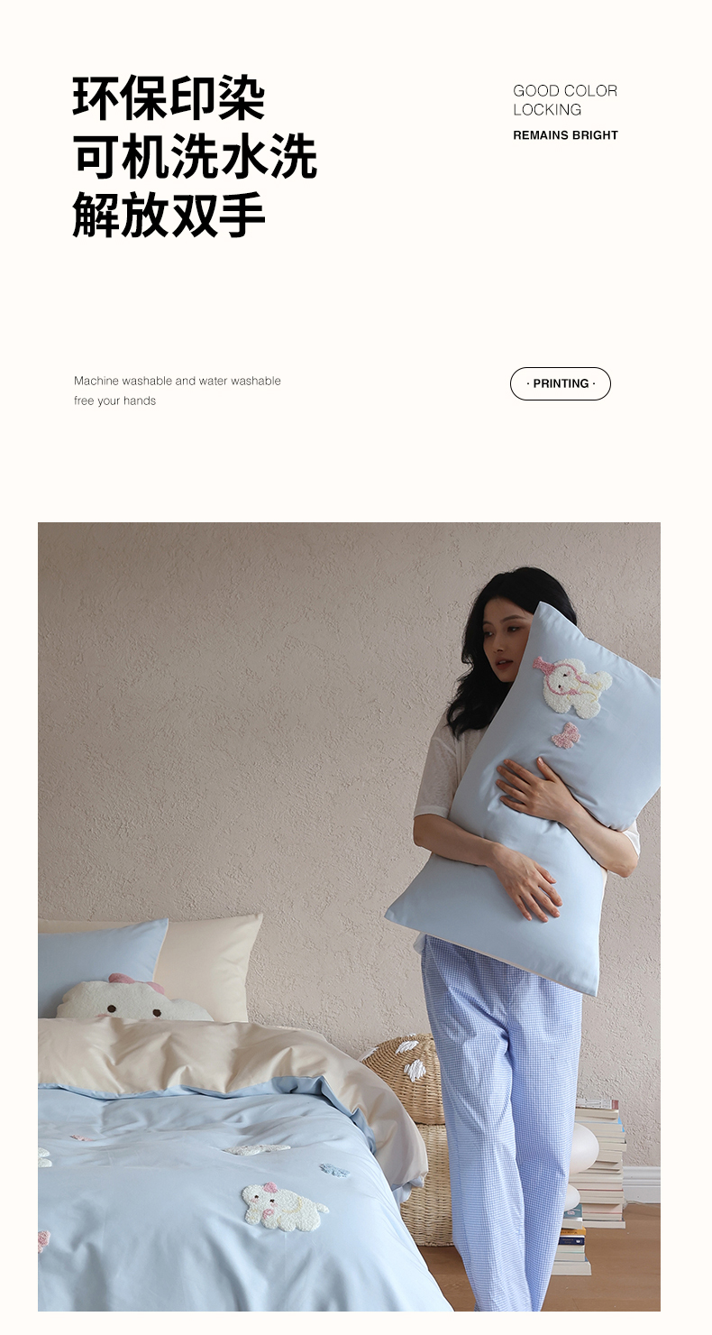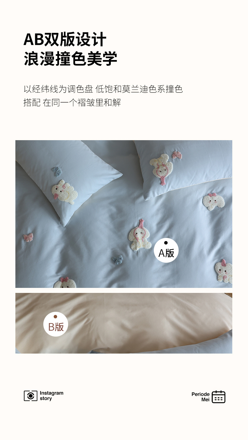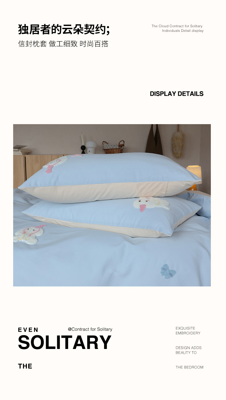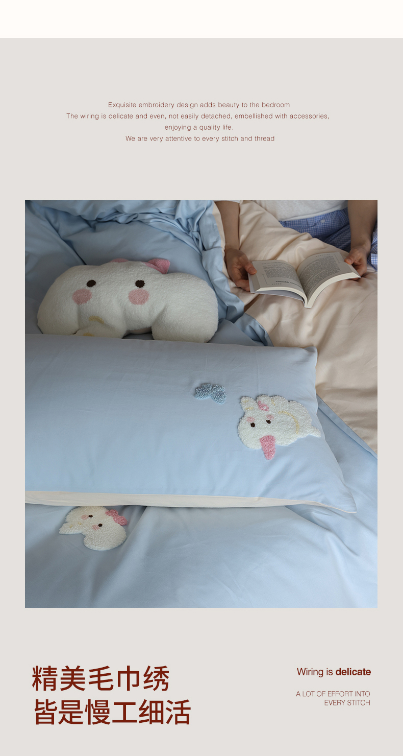 当前位置: 91家纺网 > 商品网购 > 床品套件 > 四件套 > 普通磨毛四件套 > 安莱生活 2025新款贡缎磨毛60s绣花四件套-风格二 蓝粉小象