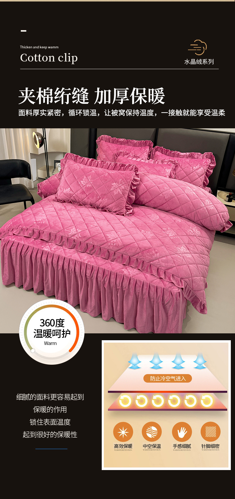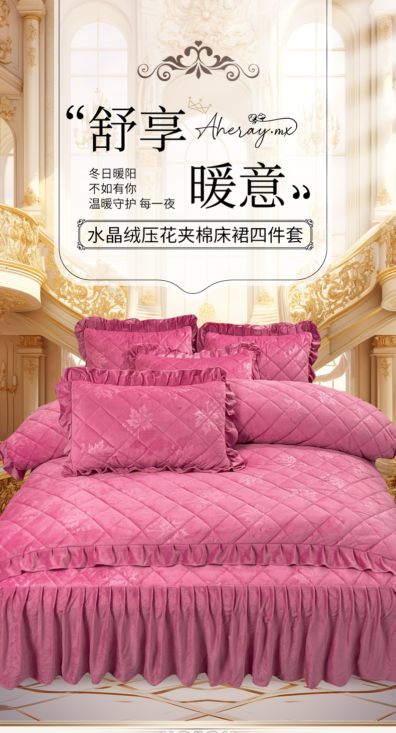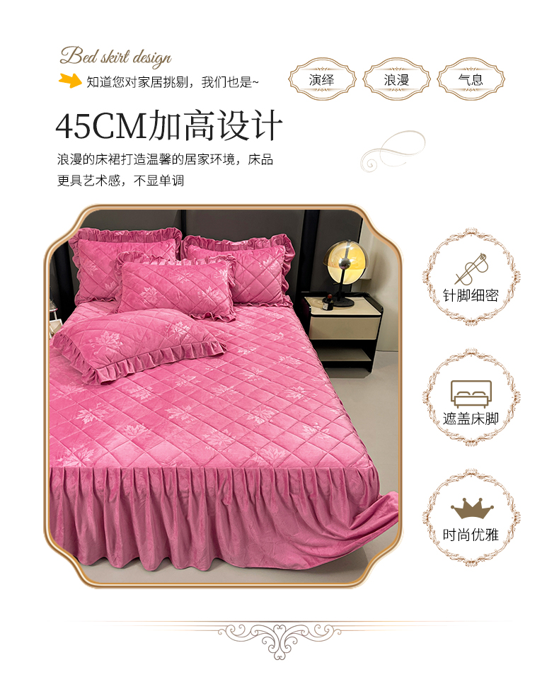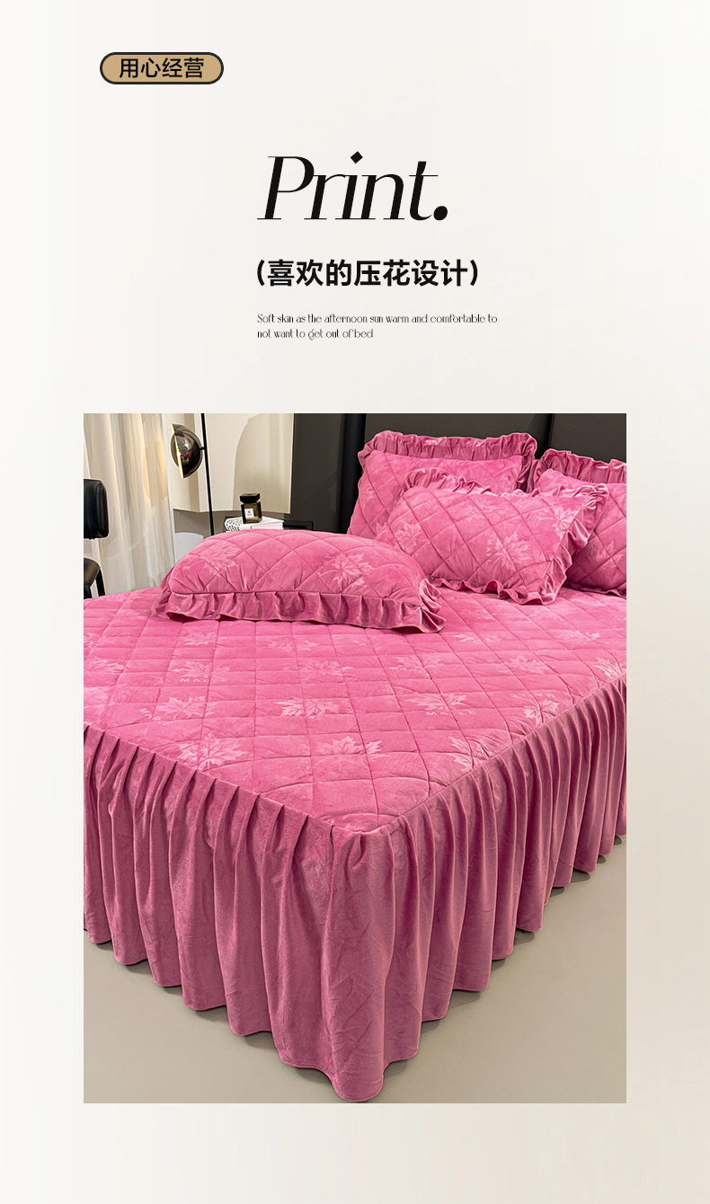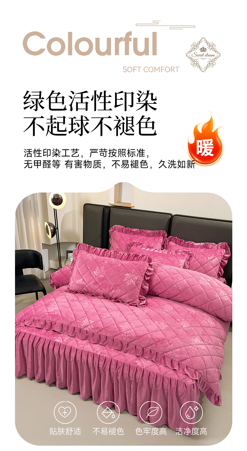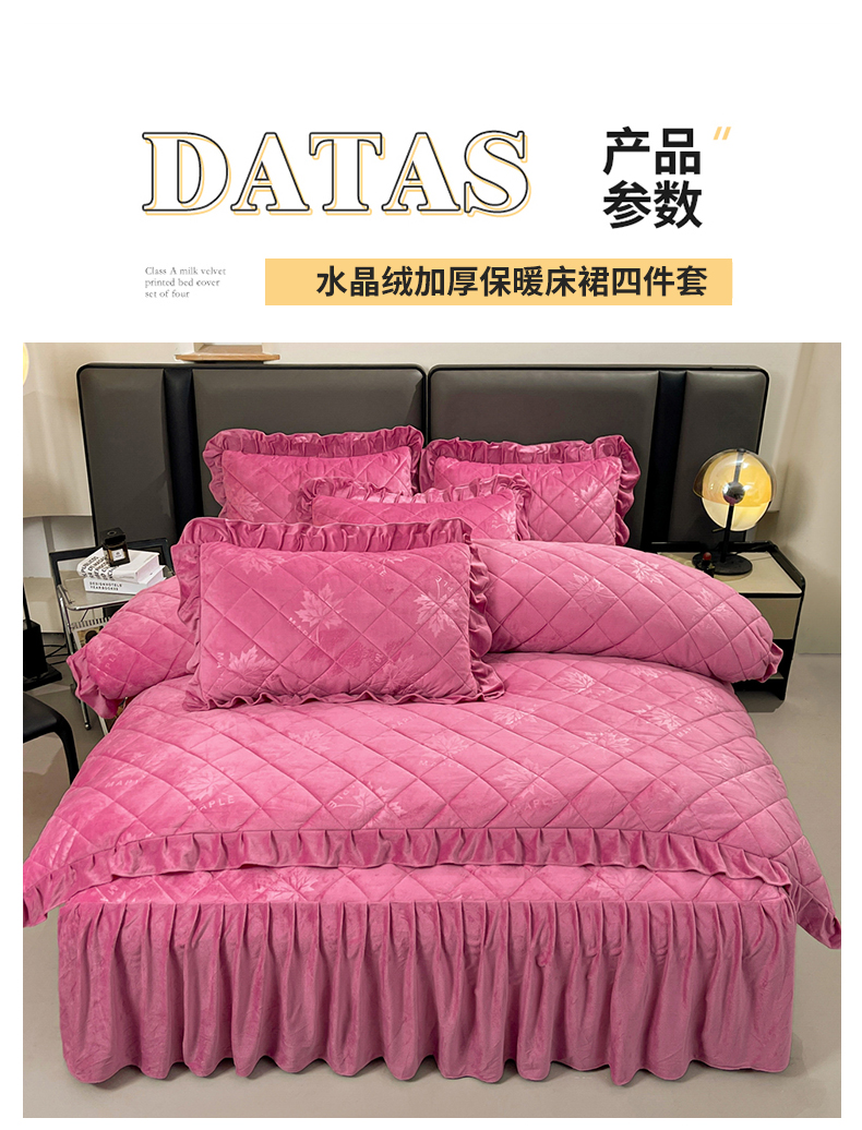 当前位置: 91家纺网 > 商品网购 > 床品套件 > 四件套 > 水晶绒四件套 > 屹成家纺 2025新款压花水晶绒床裙四件套 (四件套不低于210元起) 豆沙