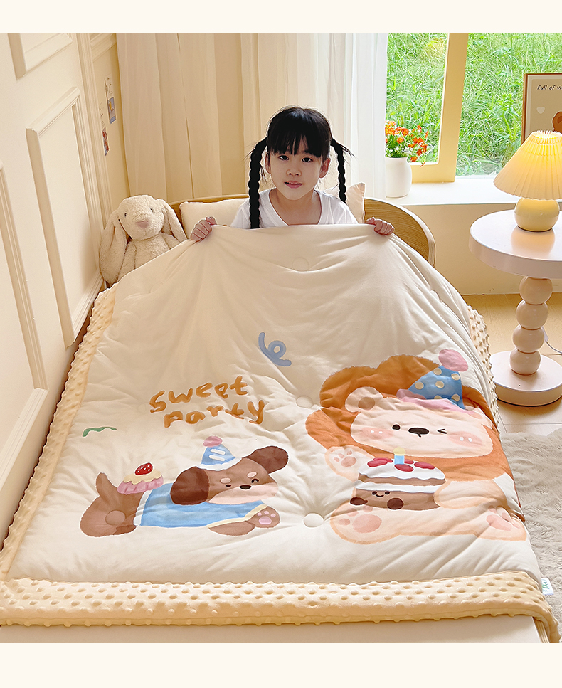 (总)鱼宝 2022新款儿童双面牛奶绒冬被,班尼熊,滴滴车队,海盐草莓,桔子,恐龙先生,兔子草莓,小兔姑娘