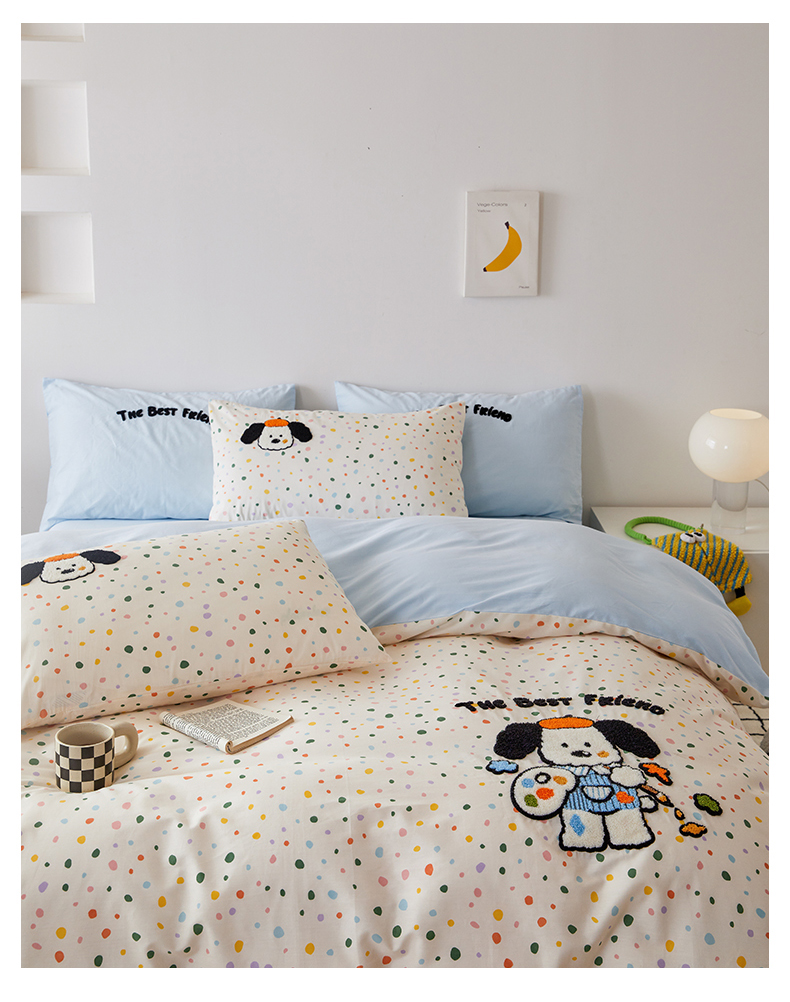 (总)锦觅 2025新款时尚条纹小清新卡通学生季系列印花绣花全棉纯棉四件套,小画家,puppy艺术家,丛林梦想,你好小熊,所象披靡,摇钱树,有钱花