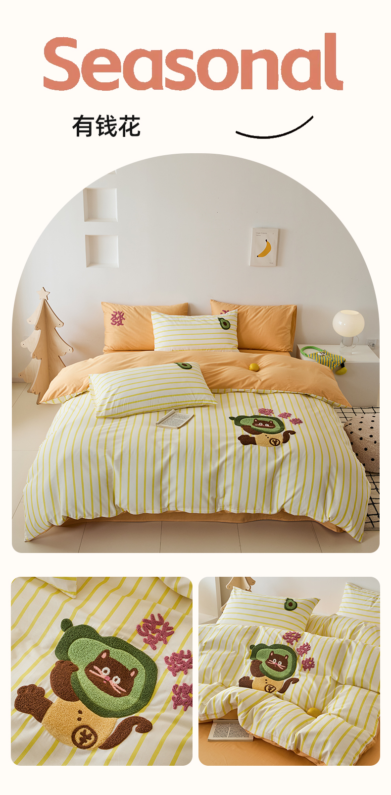 商品名称:锦觅 2025新款时尚条纹小清新卡通学生季系列印花绣花全棉纯棉四件套 有钱花