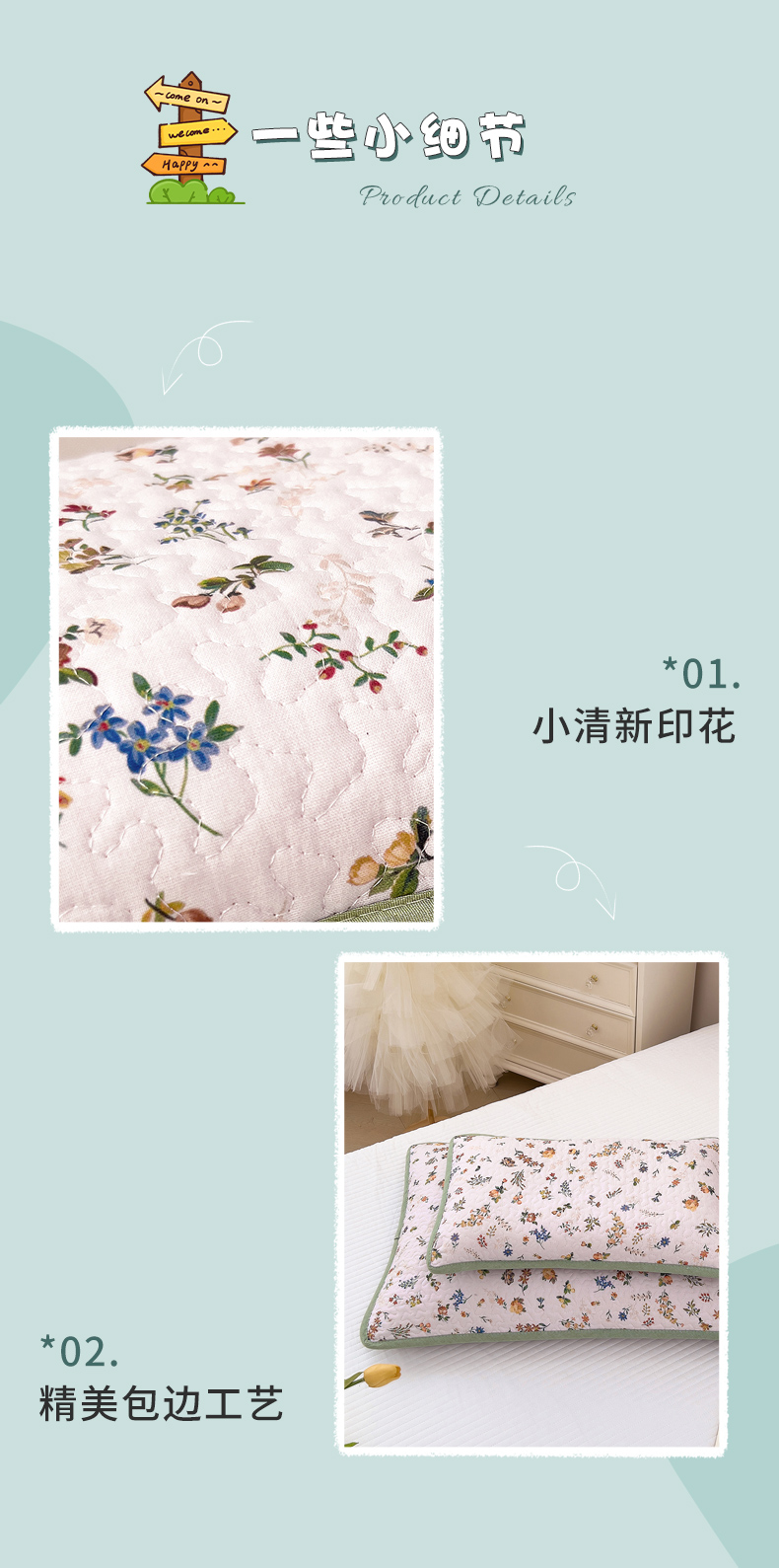 • 91家纺网 家纺一手货源 找家纺 (总)拾小柒 2026年新款全棉双层纱床盖花边法式中古奶油风防滑床盖三件套,豆豆好朋友,咕噜派米,鲤安,萌趣森林粉,萌趣森林蓝