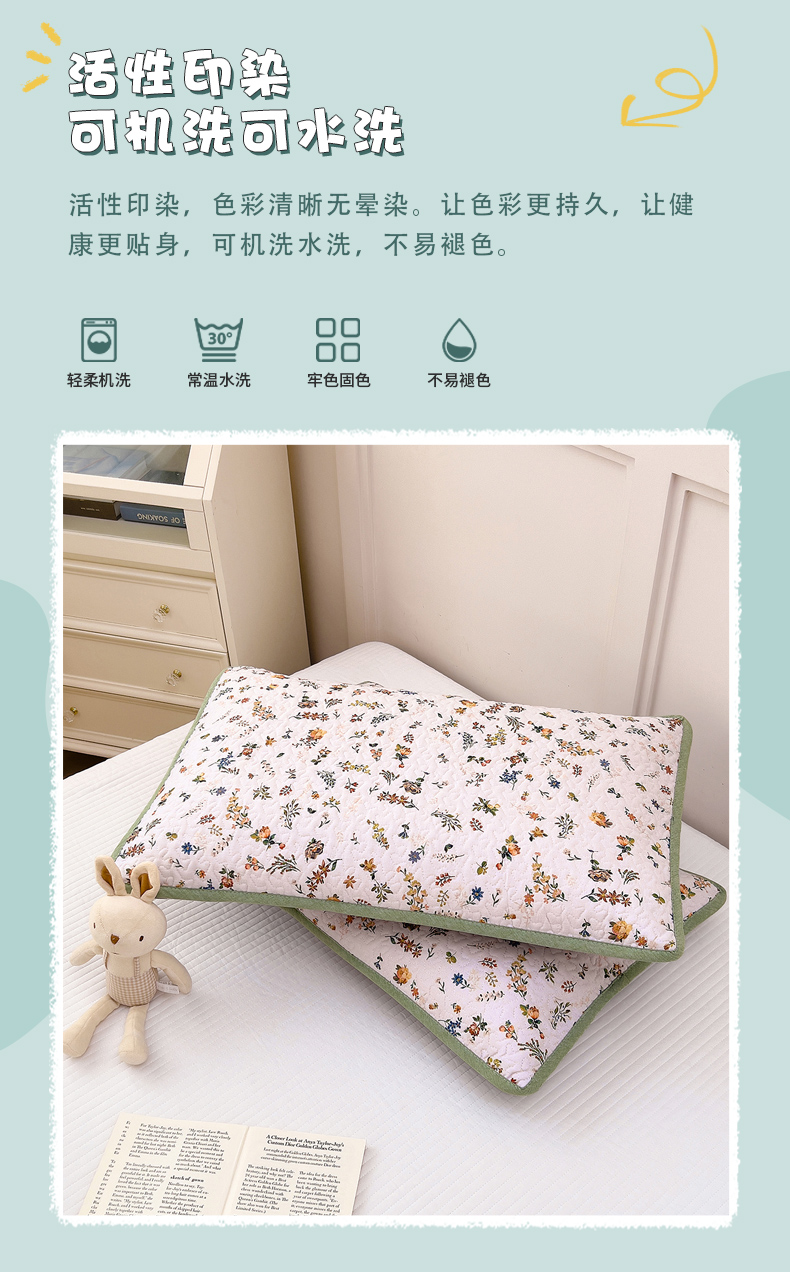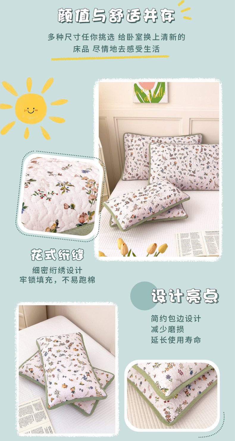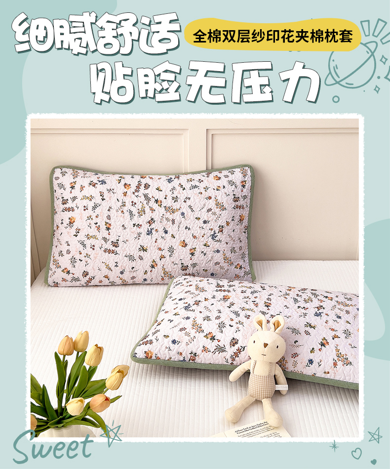 • 91家纺网 家纺一手货源 找家纺 拾小柒 2025年新款全棉双层纱枕套夹棉隔脏污防口水头油枕头套 春色满园