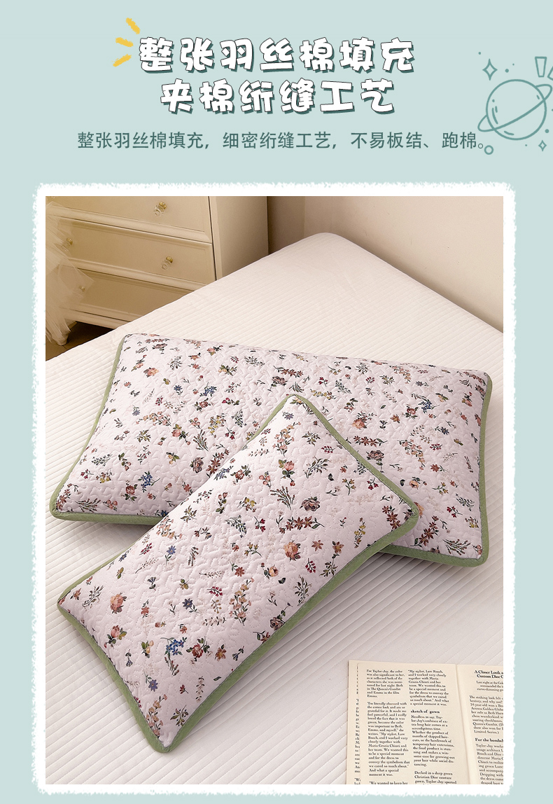 当前位置: 91家纺网 > 商品网购 > 床上用品 > 枕套 > 拾小柒 2025年新款全棉双层纱枕套夹棉隔脏污防口水头油枕头套 春色满园