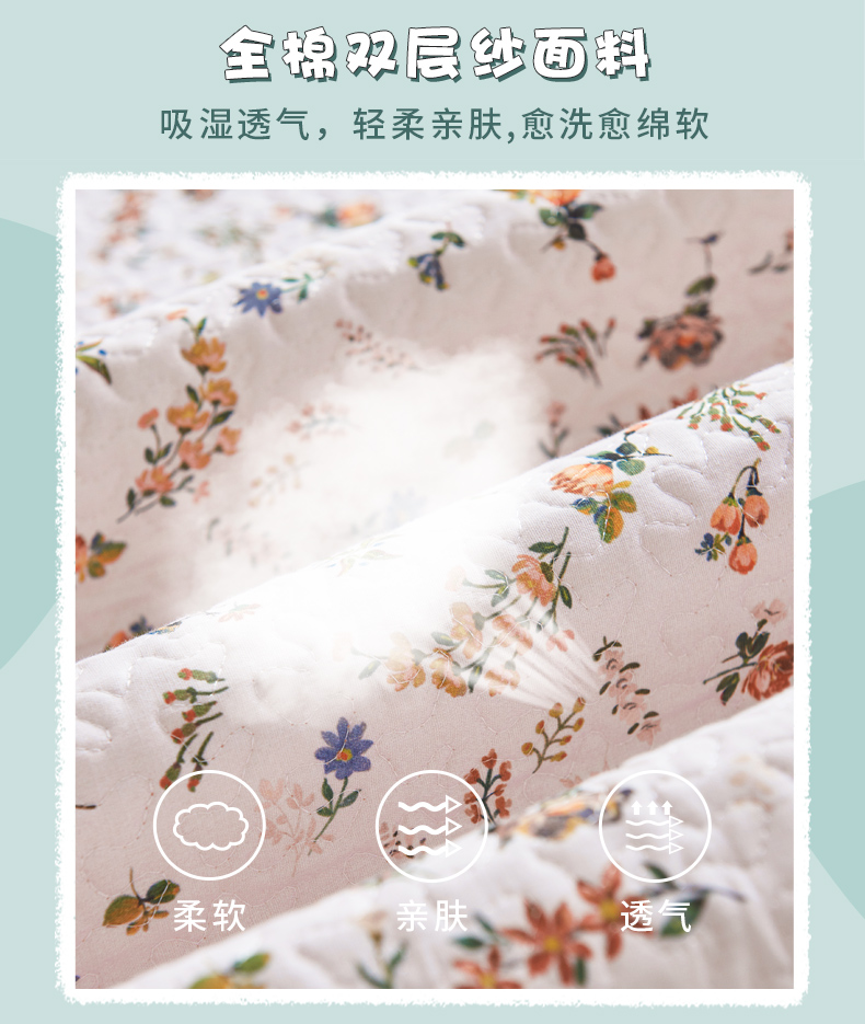 (总)拾小柒 2026年新款全棉双层纱床护垫纯棉防滑床盖床褥子软床垫,豆豆好朋友,咕噜派米,鲤安,萌趣森林粉,萌趣森林蓝